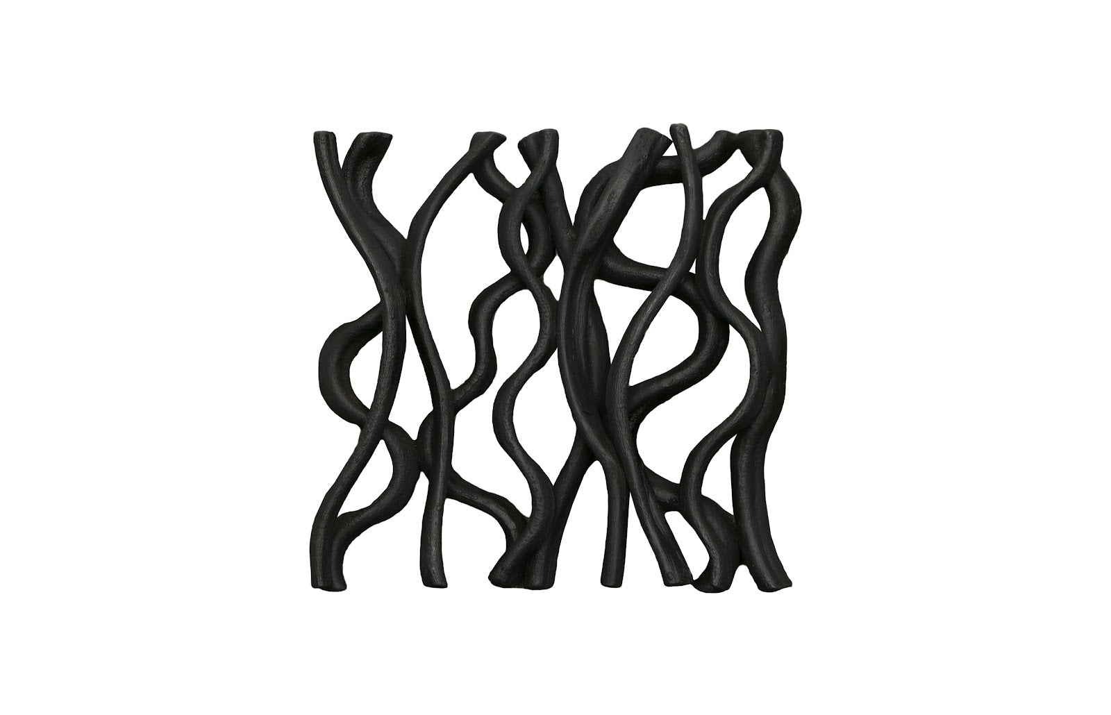 Vine, bark and branch – what used to be considered unusable parts of a tree are now used to create this lovely Vine Wall Tile. Phillips Collection actively collaborates with Thailand to source Green wood and use renewable resources. Made from vines that have been individually dried in a kiln and arranged by hand and finished in black, the result is a collection of exquisitely unique pieces that excel in bringing the beauty of Nature into the household.