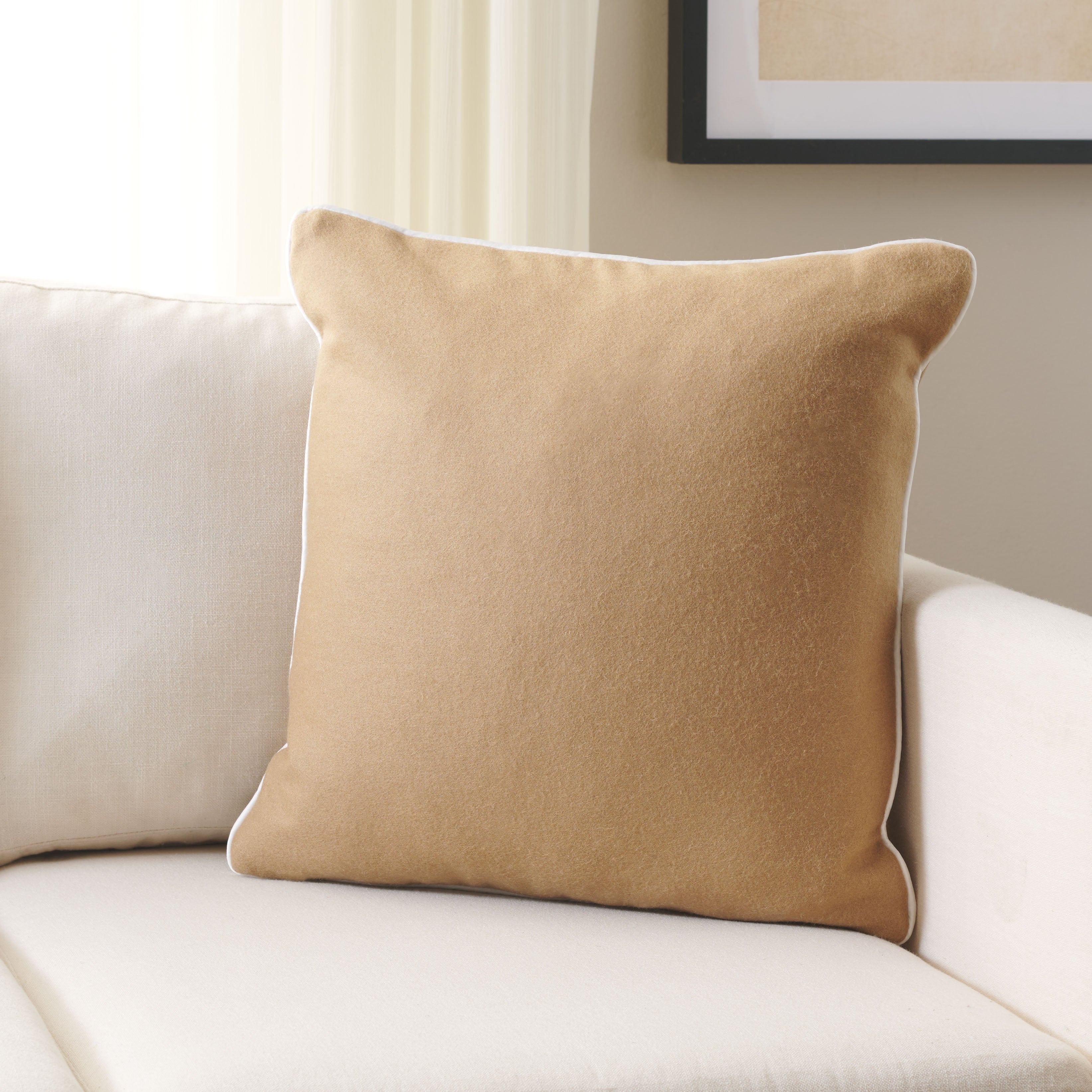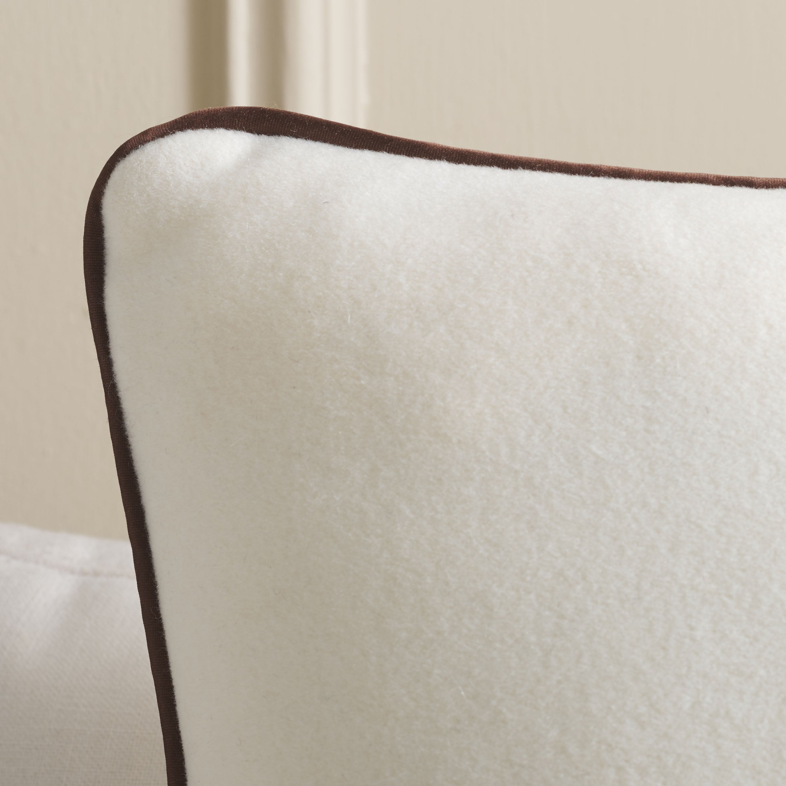 Introducing the Alaia pillow, a delightful addition to any room that desires a touch of comfort coupled with sophisticated style. This square cushion comes in a soothing ivory hue edged with an elegant brown piping, providing a tasteful contrast that accentuates its shape and adds a dash of elegance to its overall look. Whether it's gracing your sofa, accenting your favorite chair, or adding an extra layer of coziness to your bed, this woolen wonder is a versatile choice for any decorating scenario.