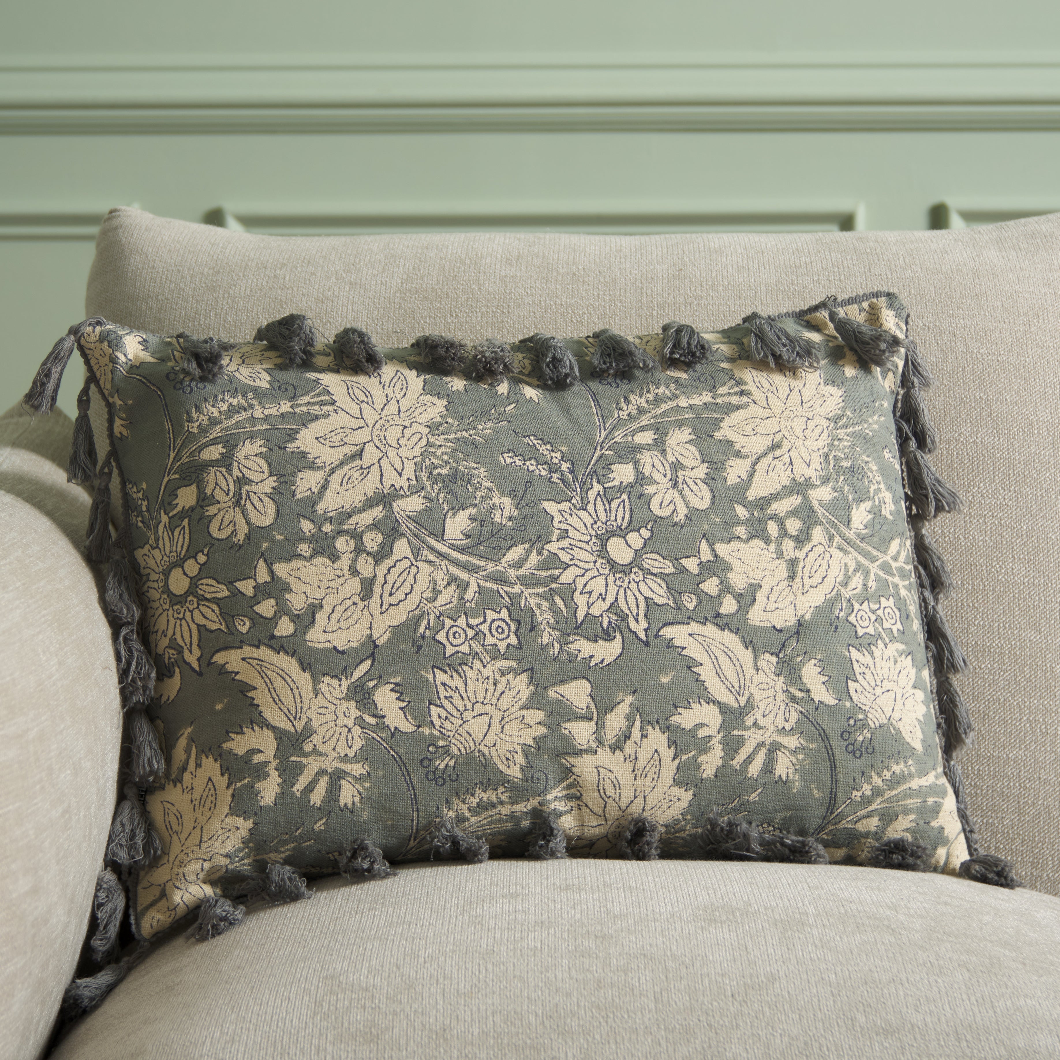 Transform your space with the Azzura Lumbar Pillow in a calming blue grey hue. Designed for both style and comfort, this pillow features a cotton front with a durable cotton and polyester back, filled with soft polyfill to provide support. The seamless blend of materials ensures that it is both comfortable and an elegant addition to any room. Perfect for your sofa or bed, the Azzura Lumbar Pillow enhances your decor with its sophisticated design.