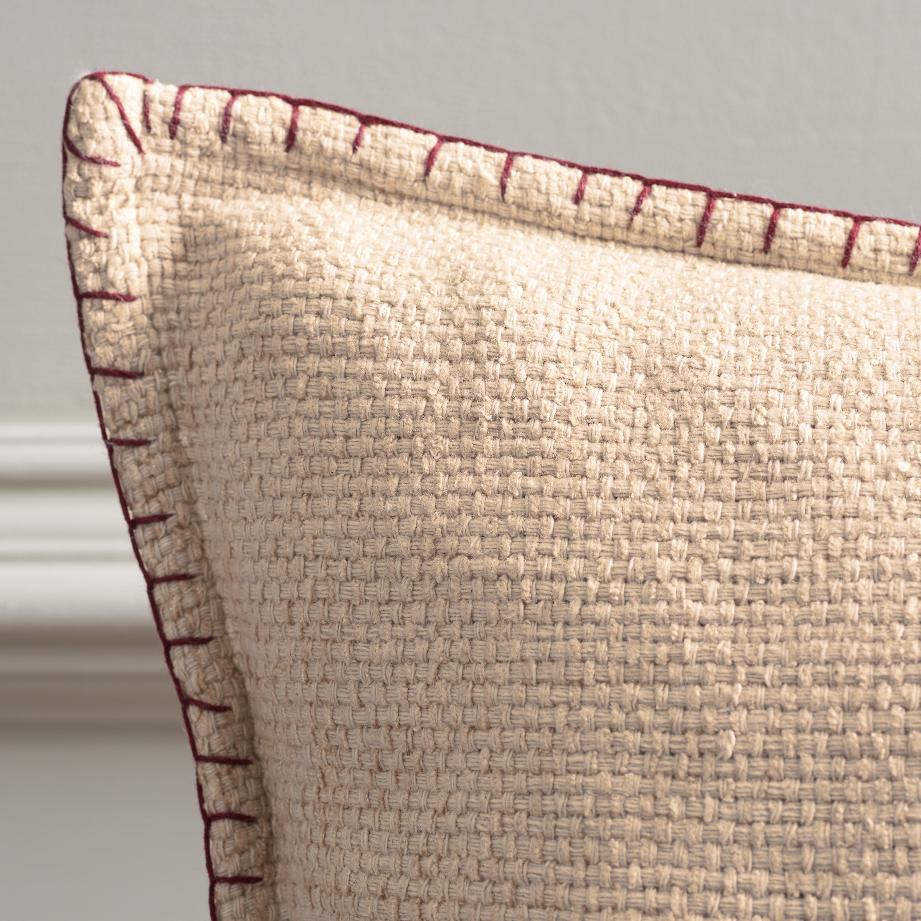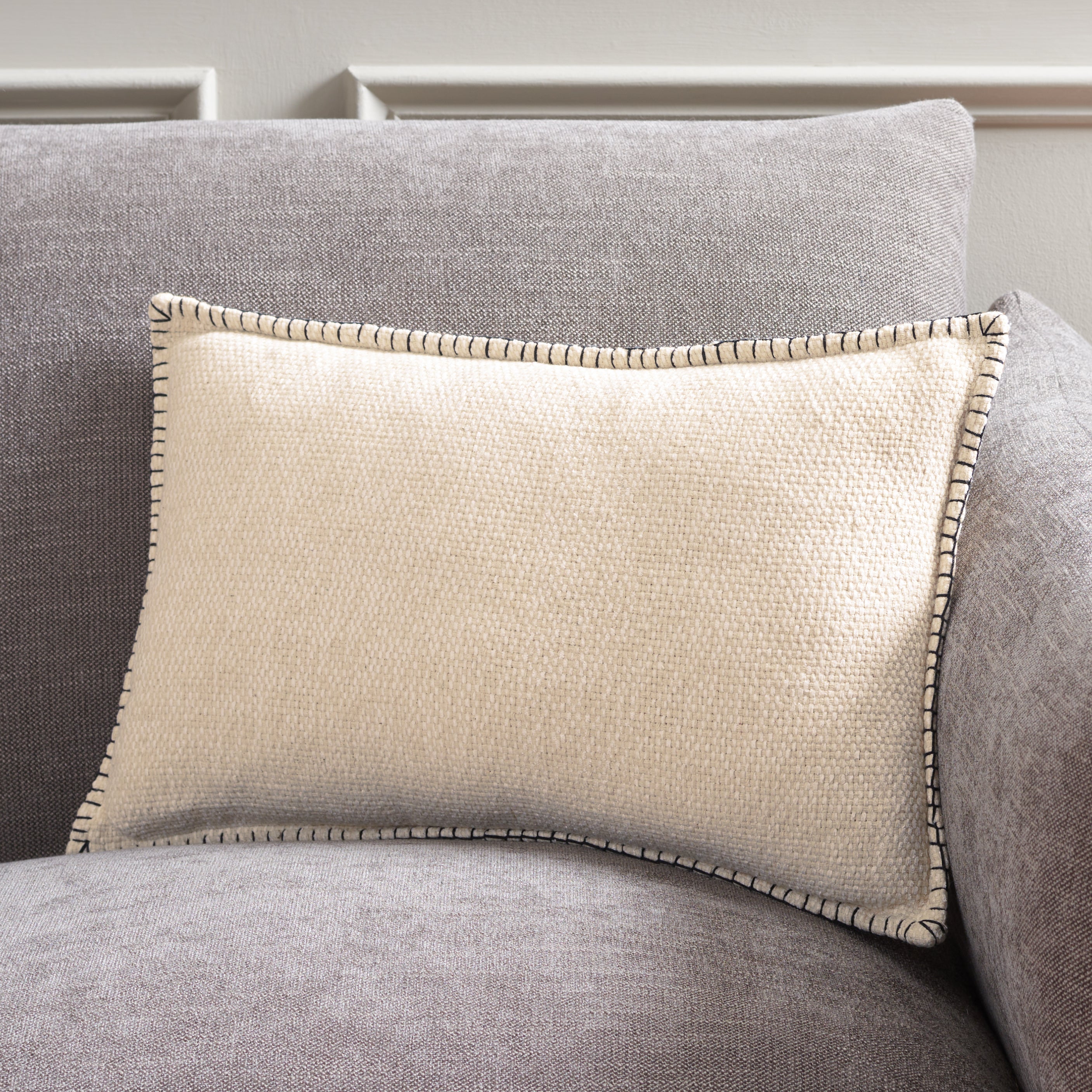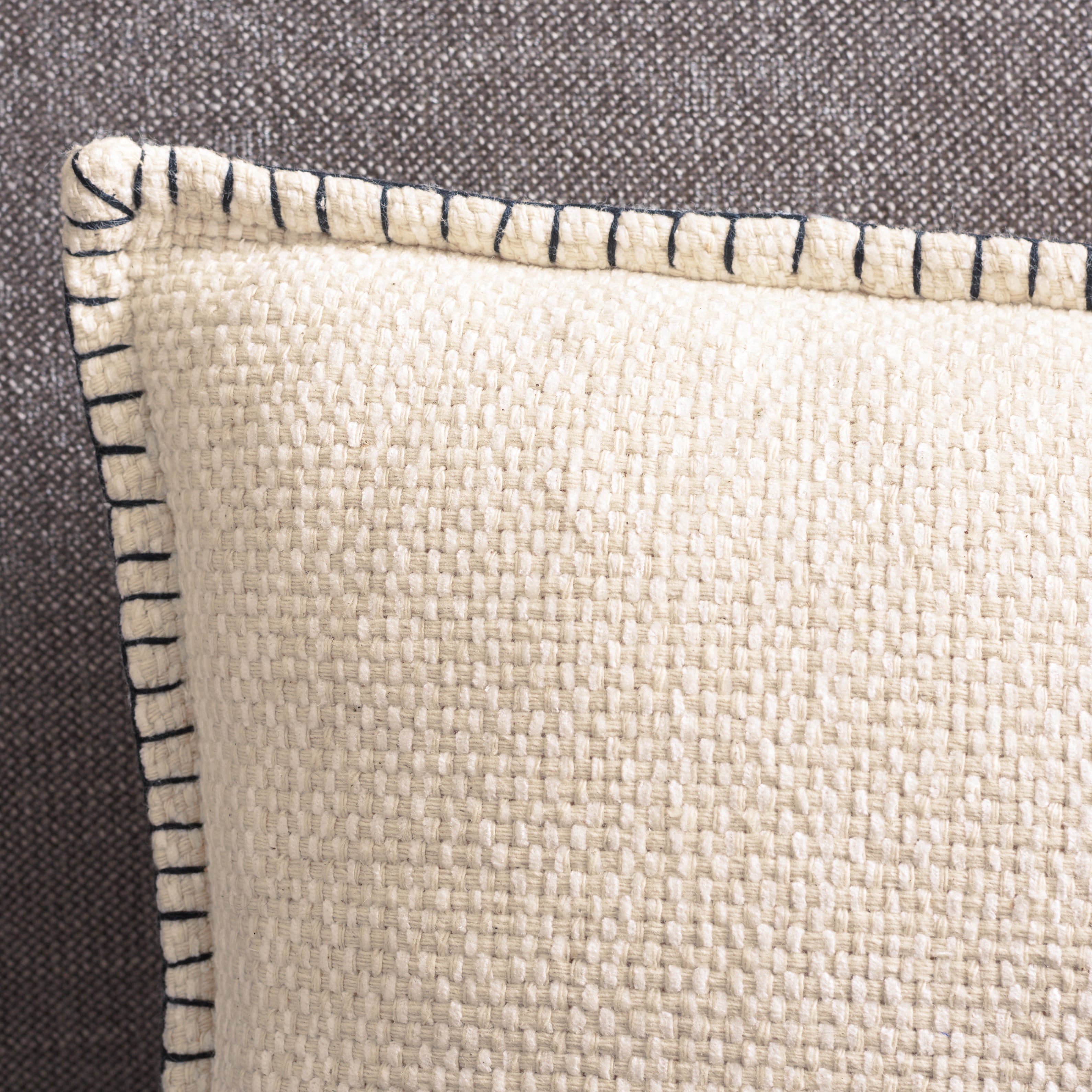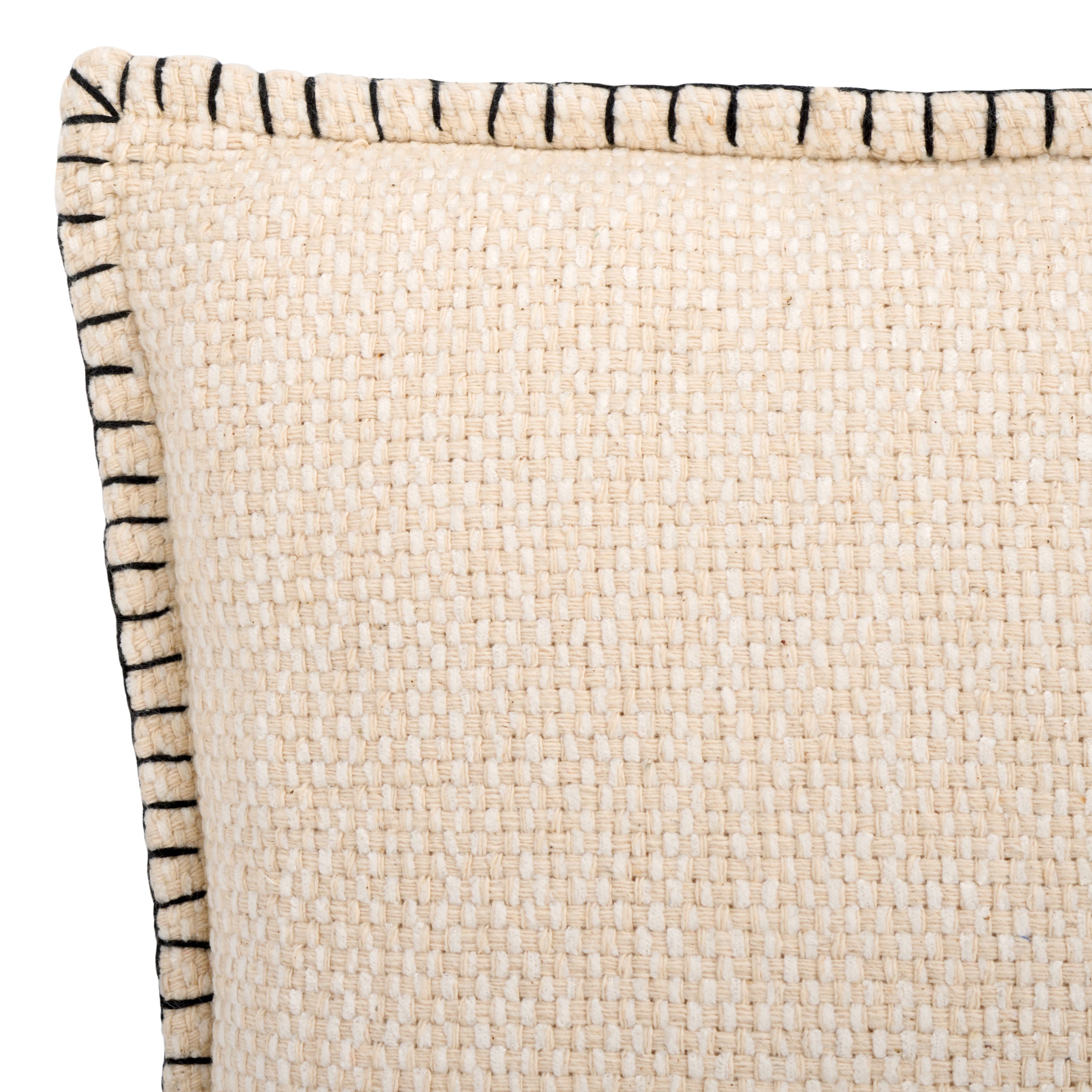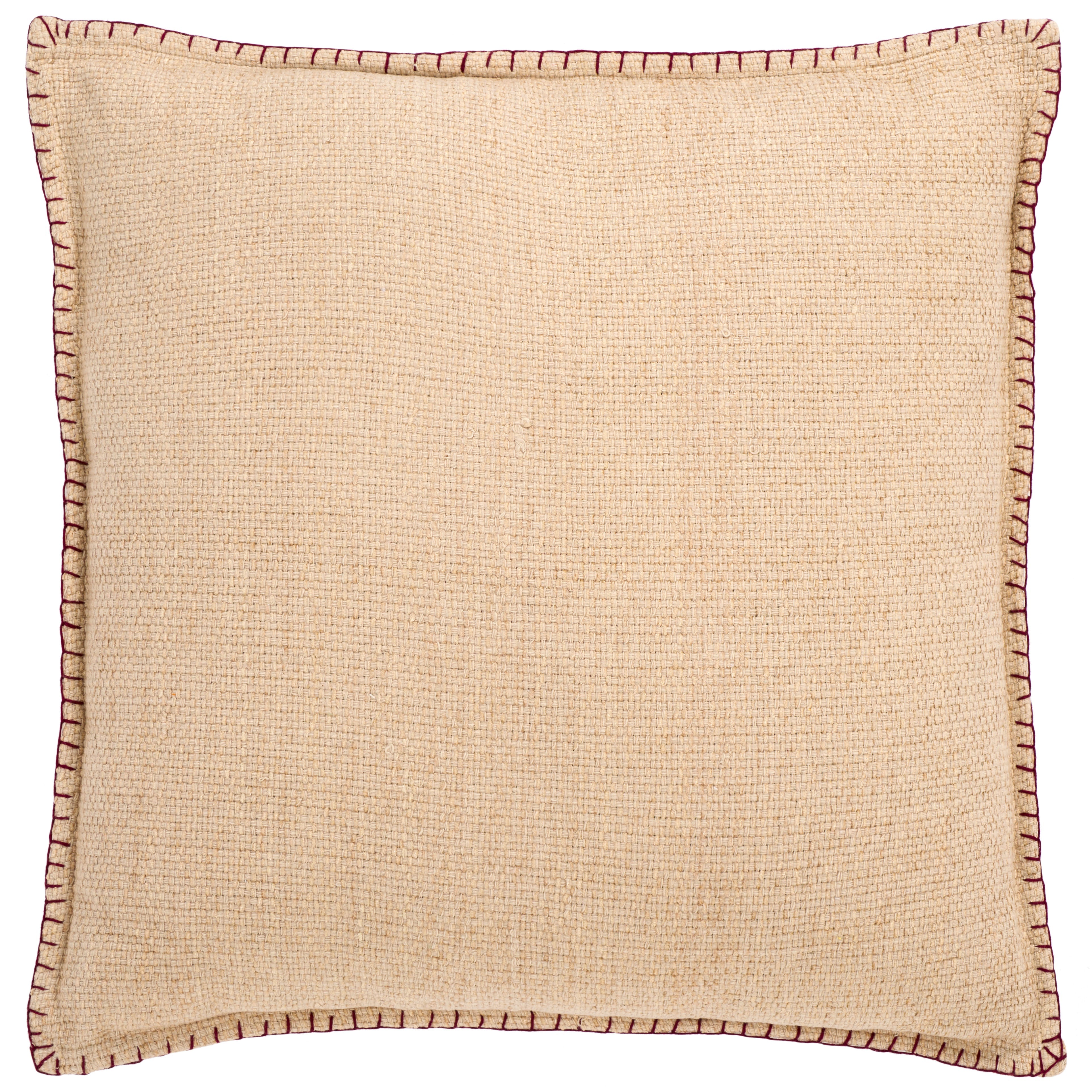 Introducing the Rhea Pillow in an appealing natural hue with brown accents. This pillow will seamlessly blend with a variety of decor styles, bringing a touch of understated elegance to your living space. Its whipstitch detailing along the edges offers a handcrafted look, adding an artisanal charm to the overall aesthetic. Whether you're updating your room or looking for a thoughtful gift, the Rhea pillow is a versatile choice that is sure to delight.