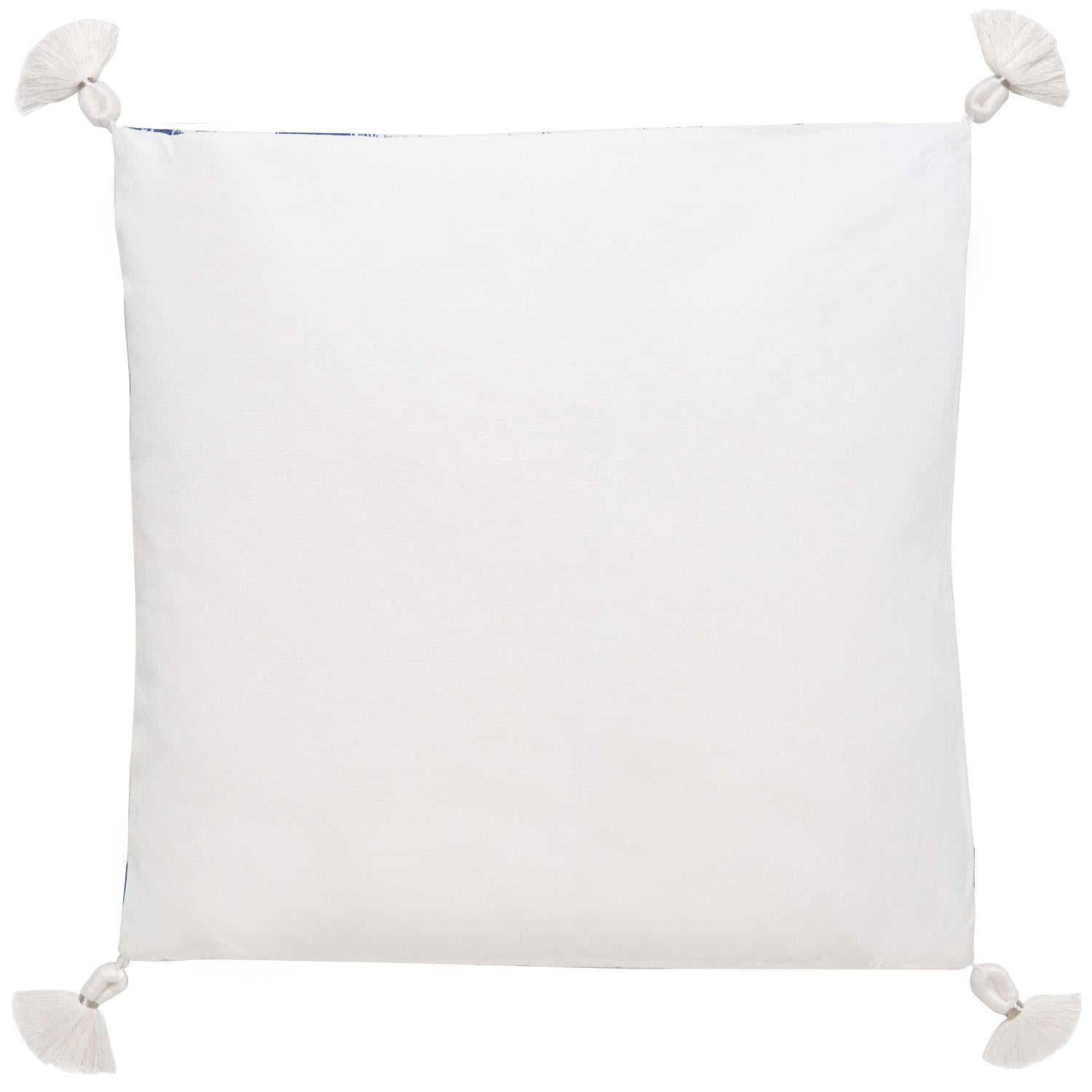 Bring boho-chic style to the porch or patio with this Jaquet Outdoor Pillow. Featuring an exotic Ikat-inspired print in navy and white, Jaquet is finished with playful tassels for an additional touch of whimsy.