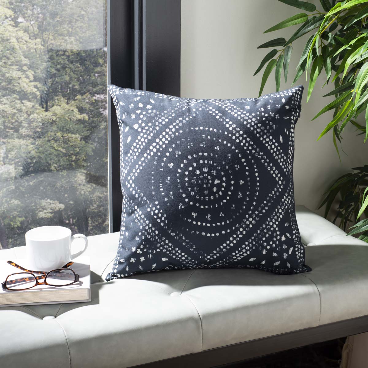 Dramatic and mysterious, this stylish Safavieh Mallory Pillow adds depth and dimension to any sofa, chair or loveseat. Designed with a spectacular deep blue background, it boasts the perfect hue to showcase the power and movement of its intricate white contemporary geometric pattern. It?? the superstar accessory in any bedroom or living room.