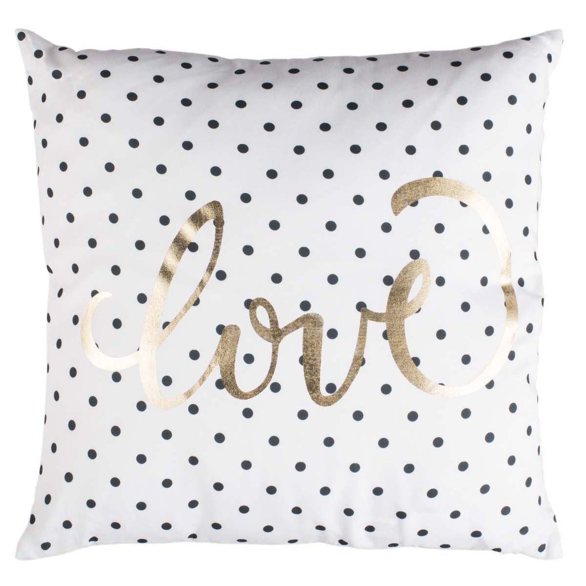 Glimmering gold script within a polka dot background lends subtle elegance to the playful style of the Spotted Love Pillow. A perfect accent accessory for a teen girl bedroom or any contemporary casual decor, the Spotted Love Pillow imparts decorative dimension on any solid colored room furnishings. Made with a hidden zipper on the back cover for easy access care and cleaning.