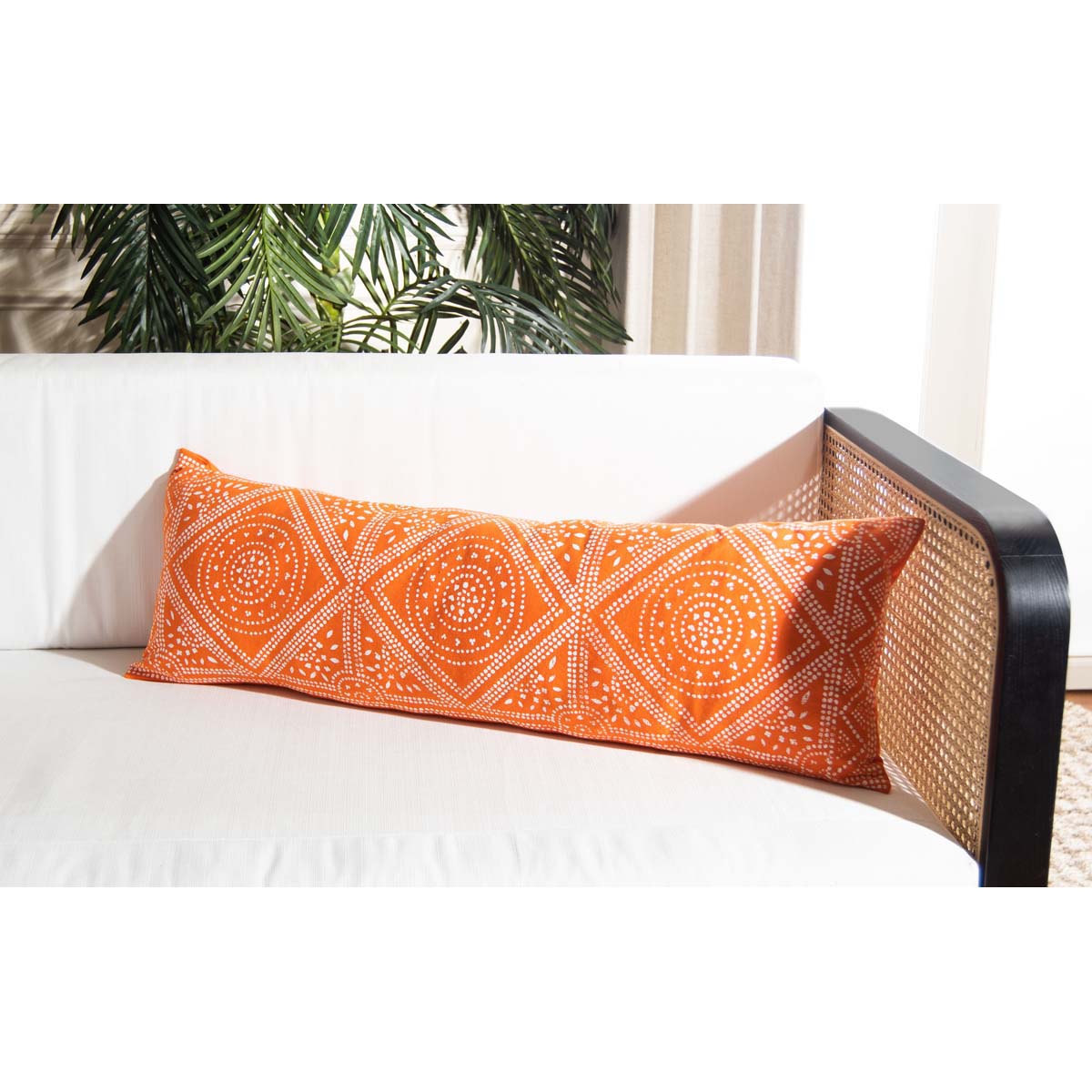 Pointillism has never looked as fresh and new as it does in this boho chic Valenti Pillow. Beautifully detailed with mandalas, diamonds, and flowing chevrons, Valenti?? sunrise orange cotton highlights the artistry of its white dotted design, remaining soft and colorful for years to come.