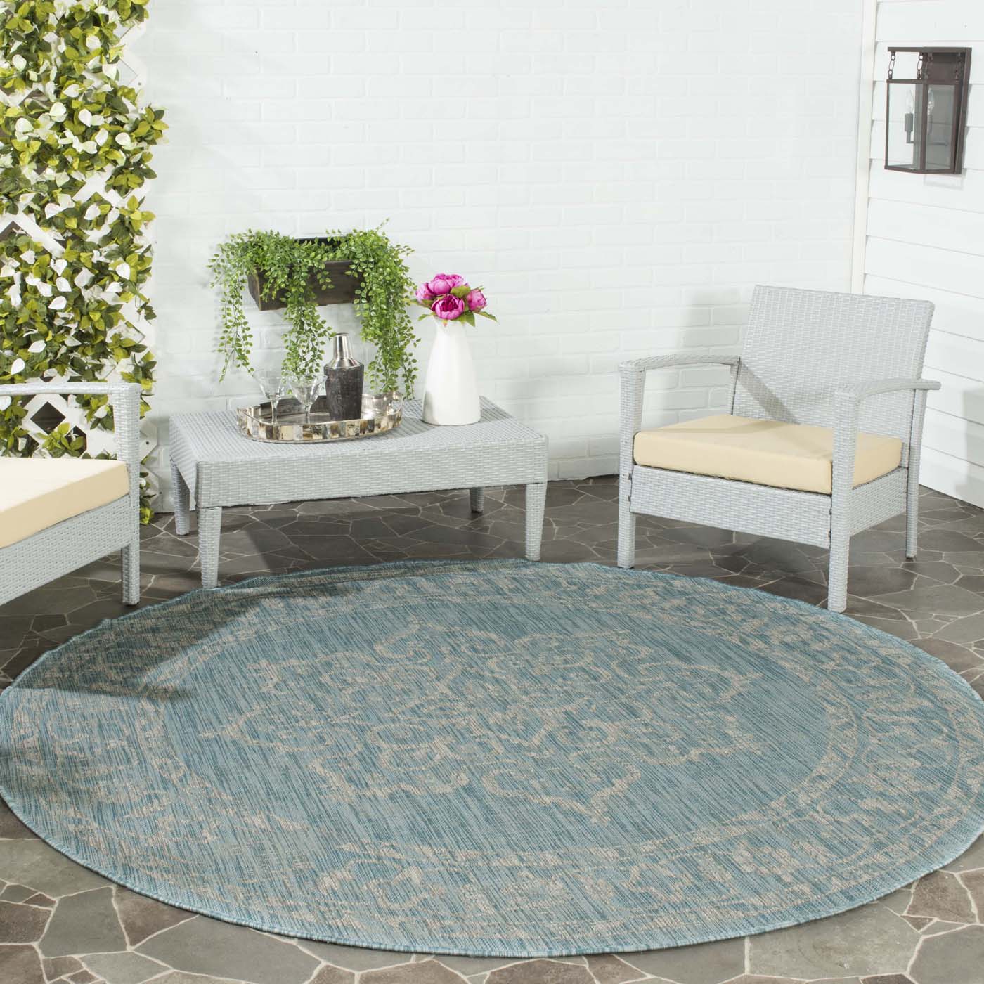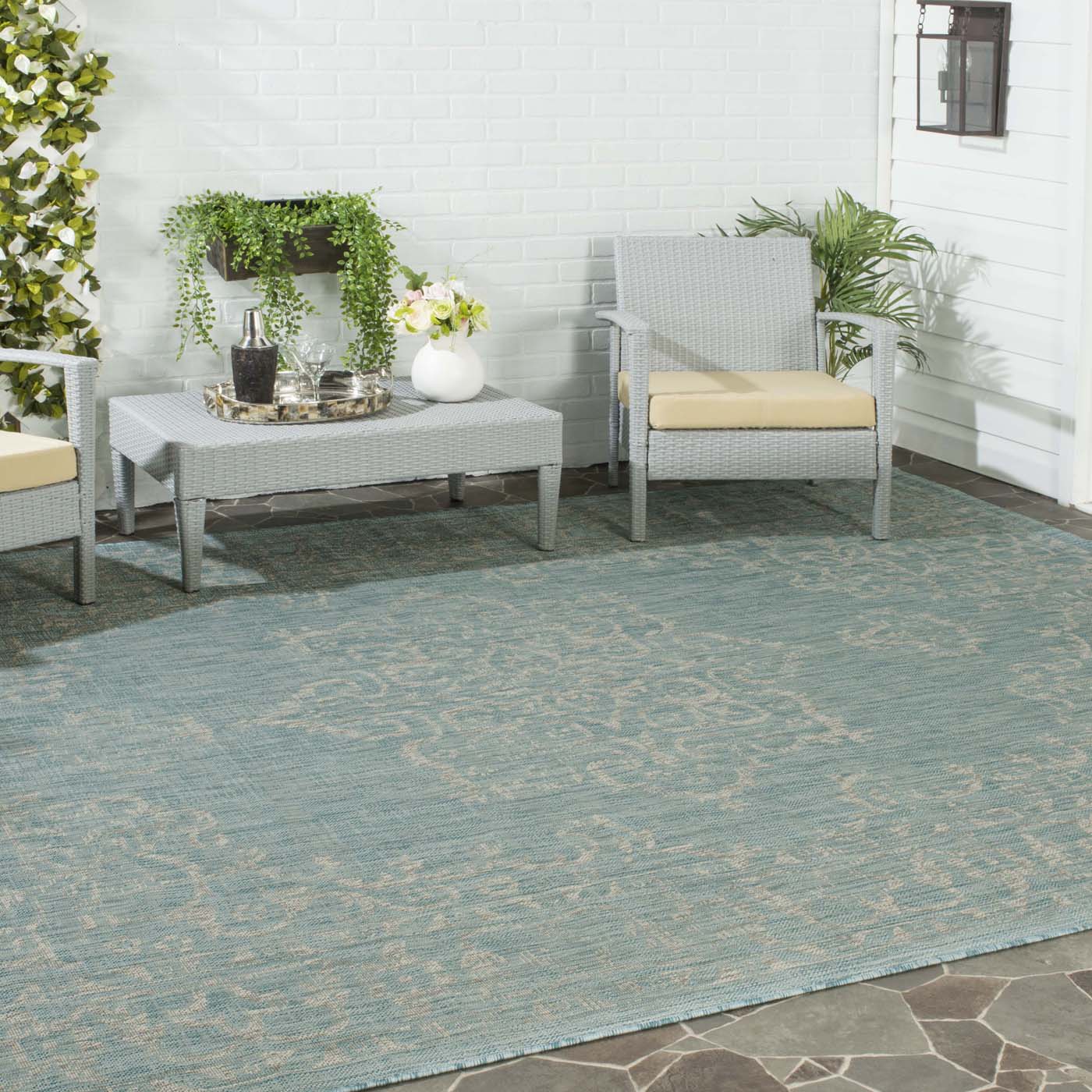 Safavieh Courtyard Rug Collection: CY8481-37121 - Aqua / Grey