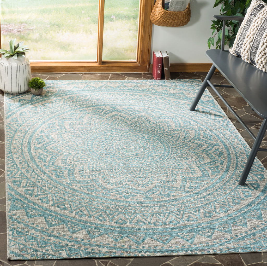 Safavieh Courtyard Rug Collection CY8734-37112 - Light Grey / Aqua