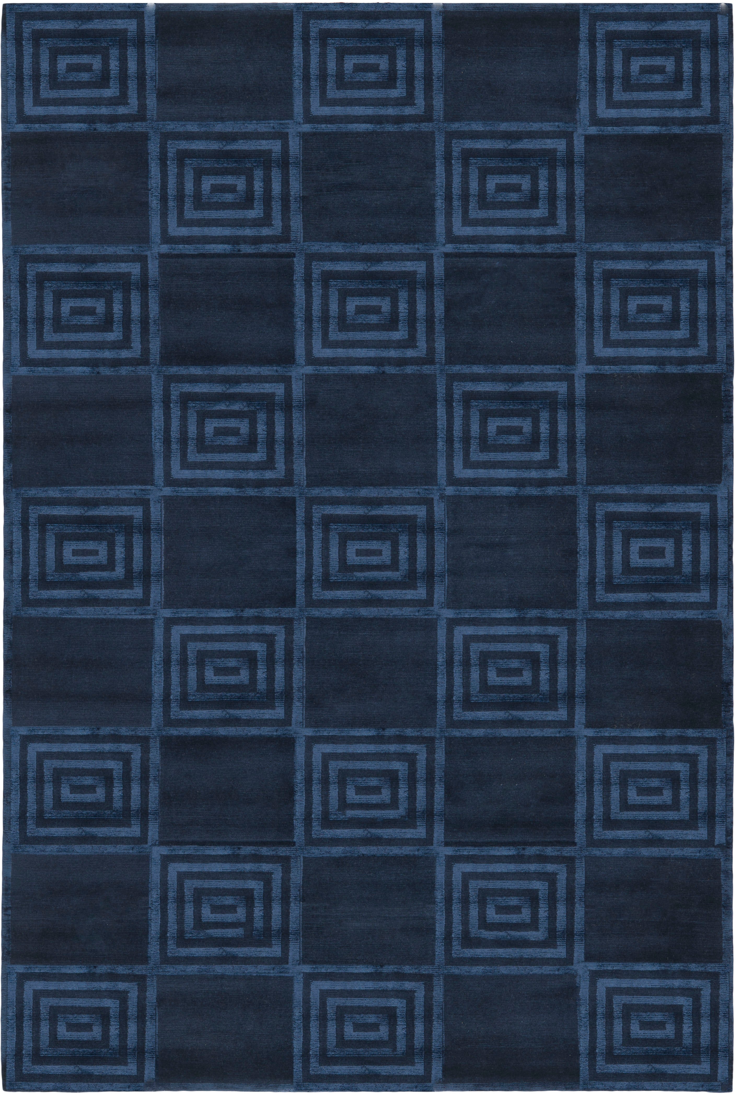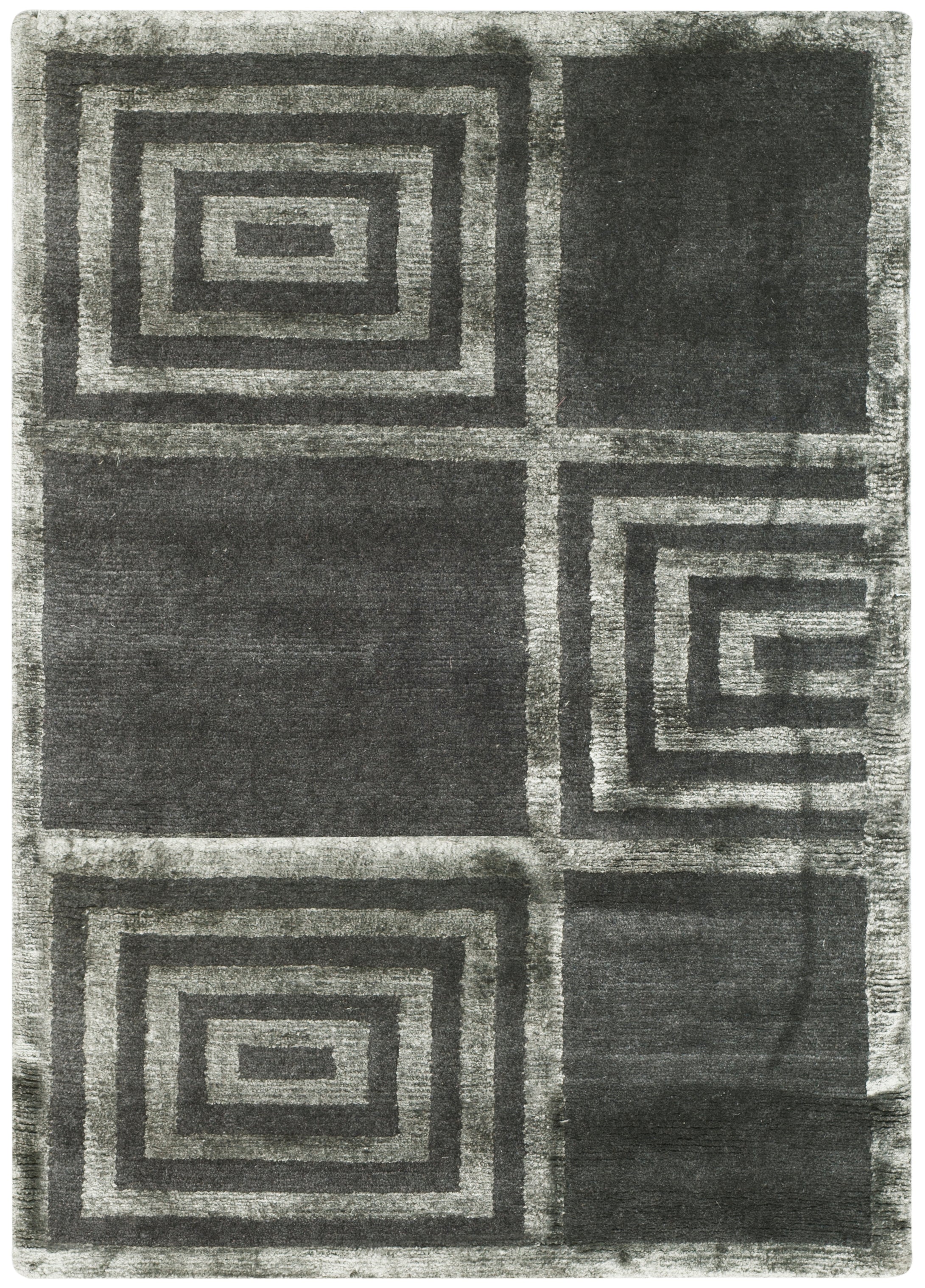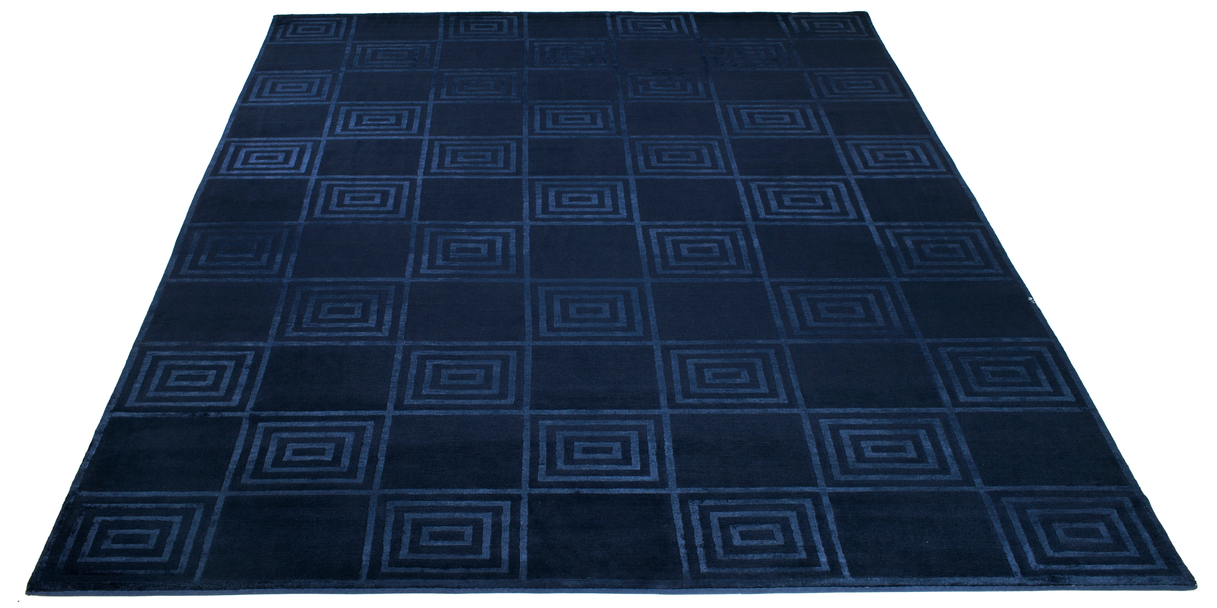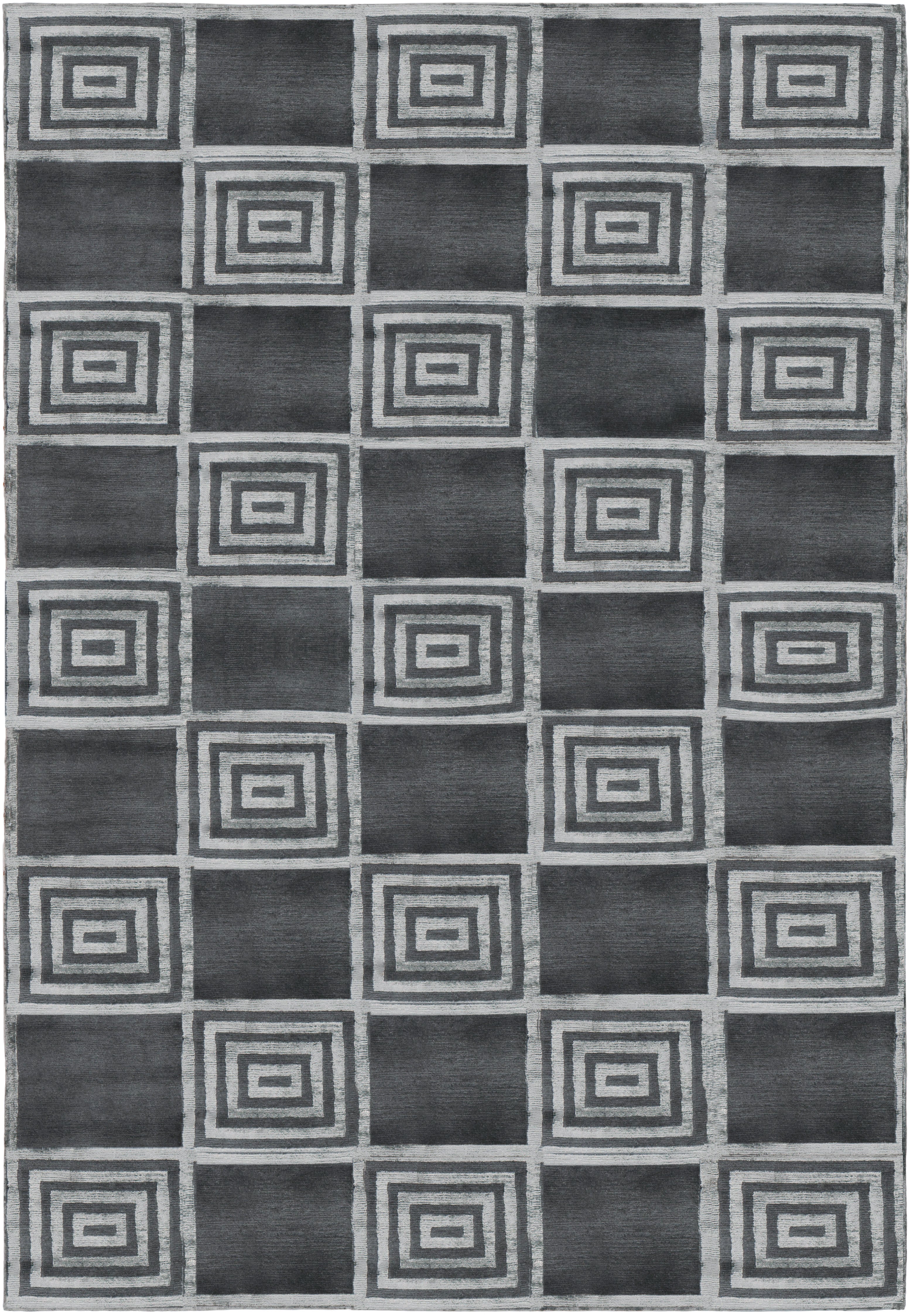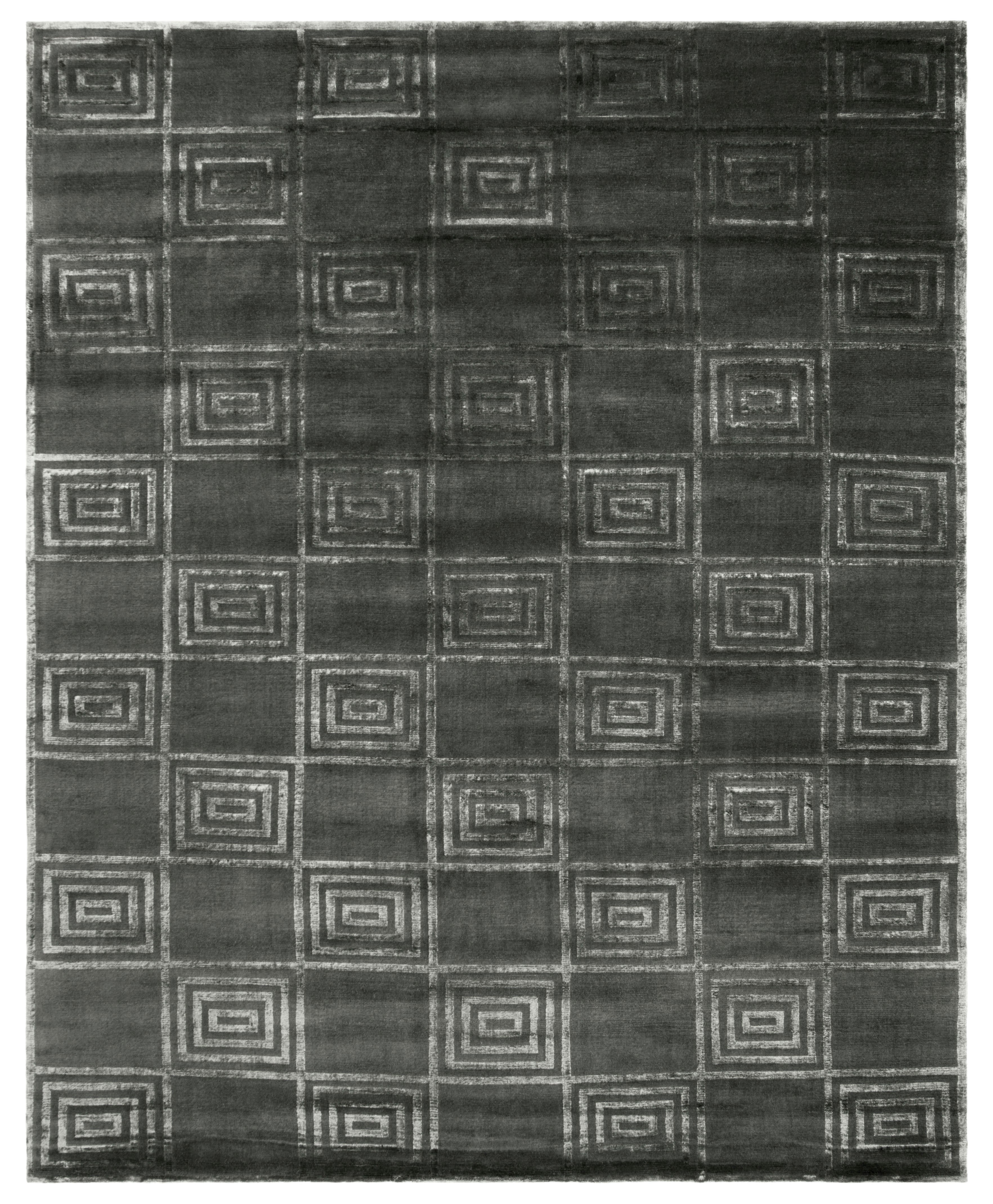 Introducing our exquisite hand-knotted area rug, a luxurious addition to any interior space. This rug features a timeless geometric pattern with intricate spirals and classic square motifs that exude elegance and sophistication. Crafted in the serene shades, this rug invites a sense of calm and luxury into your home.