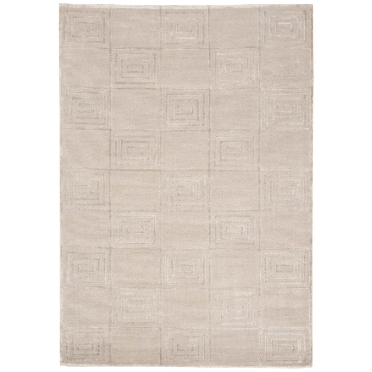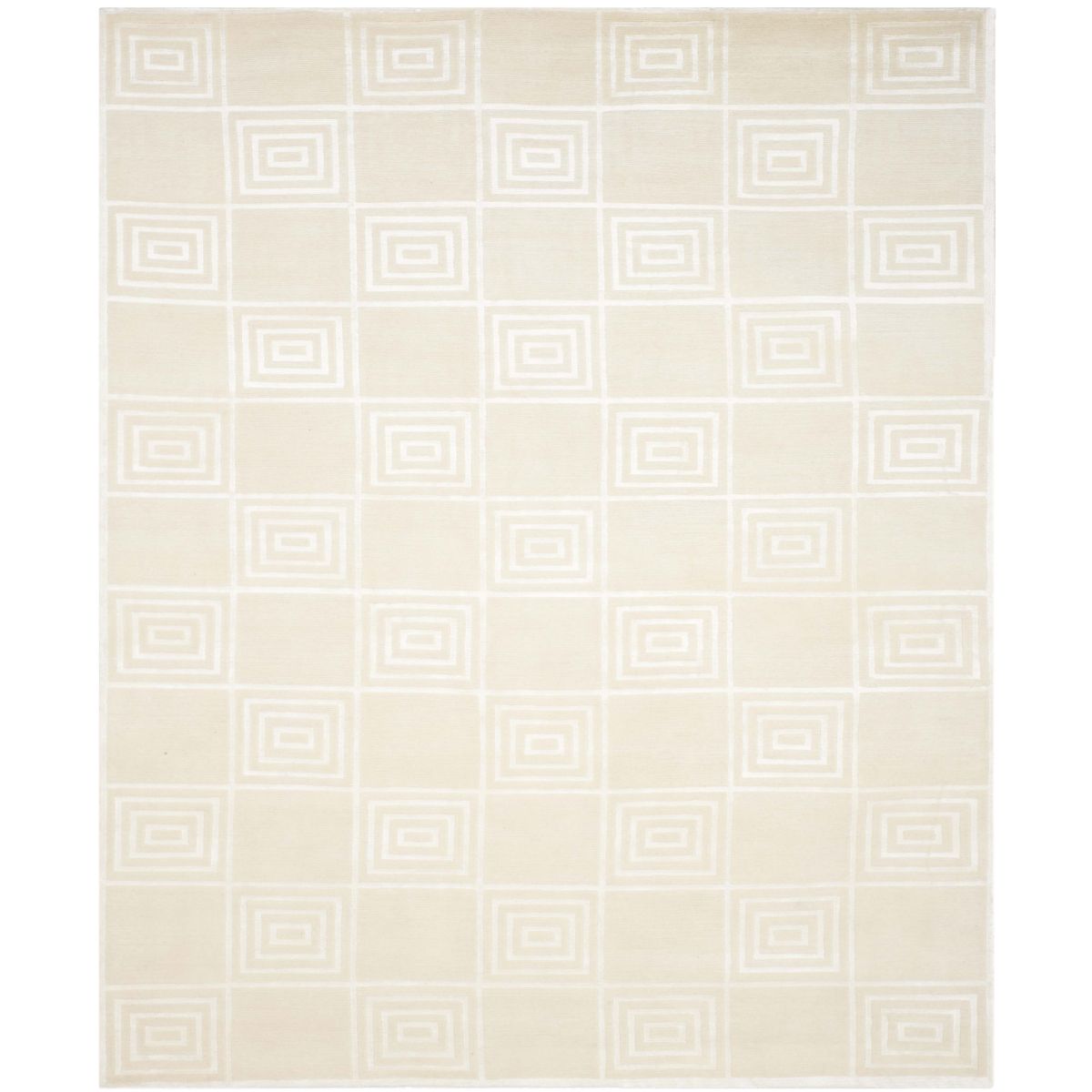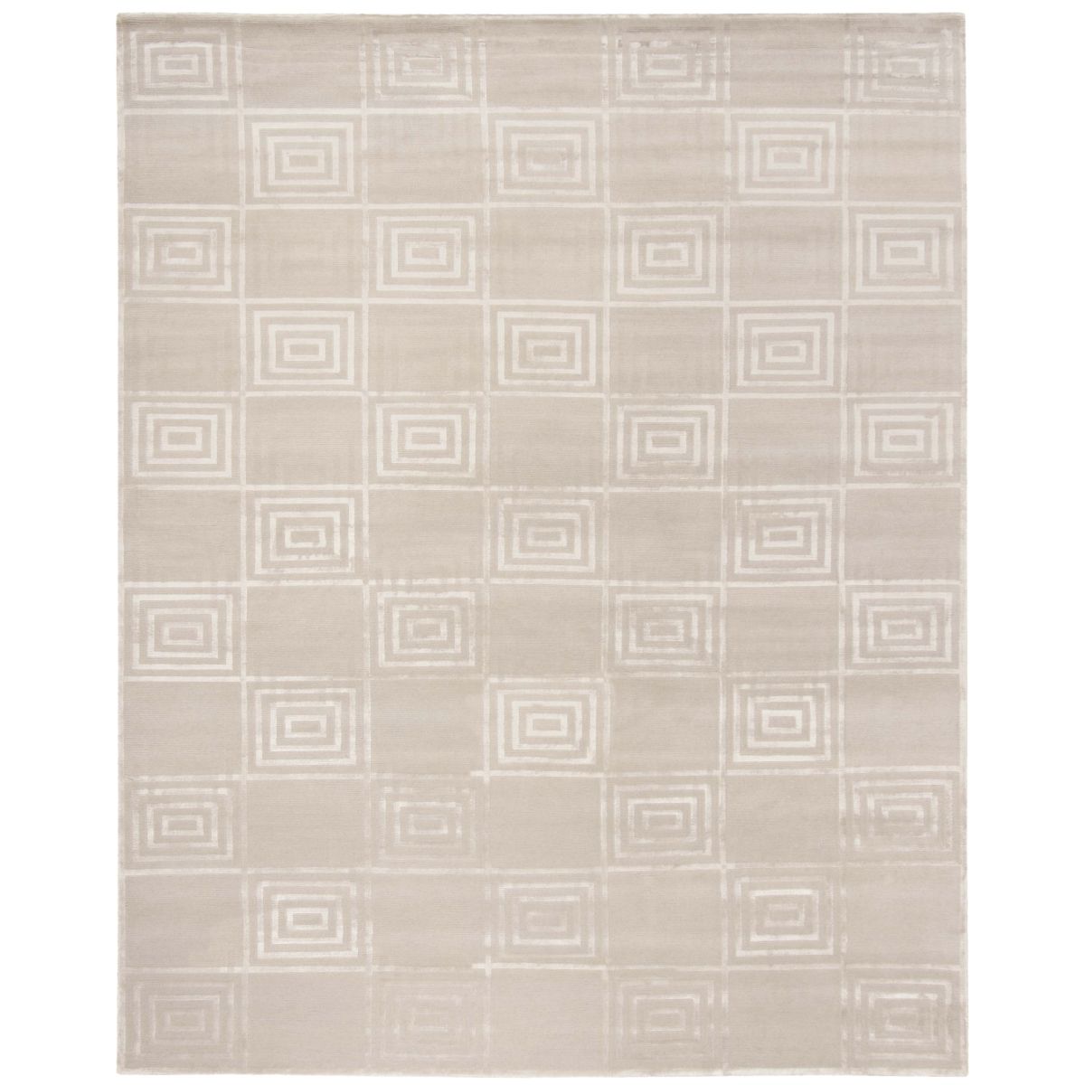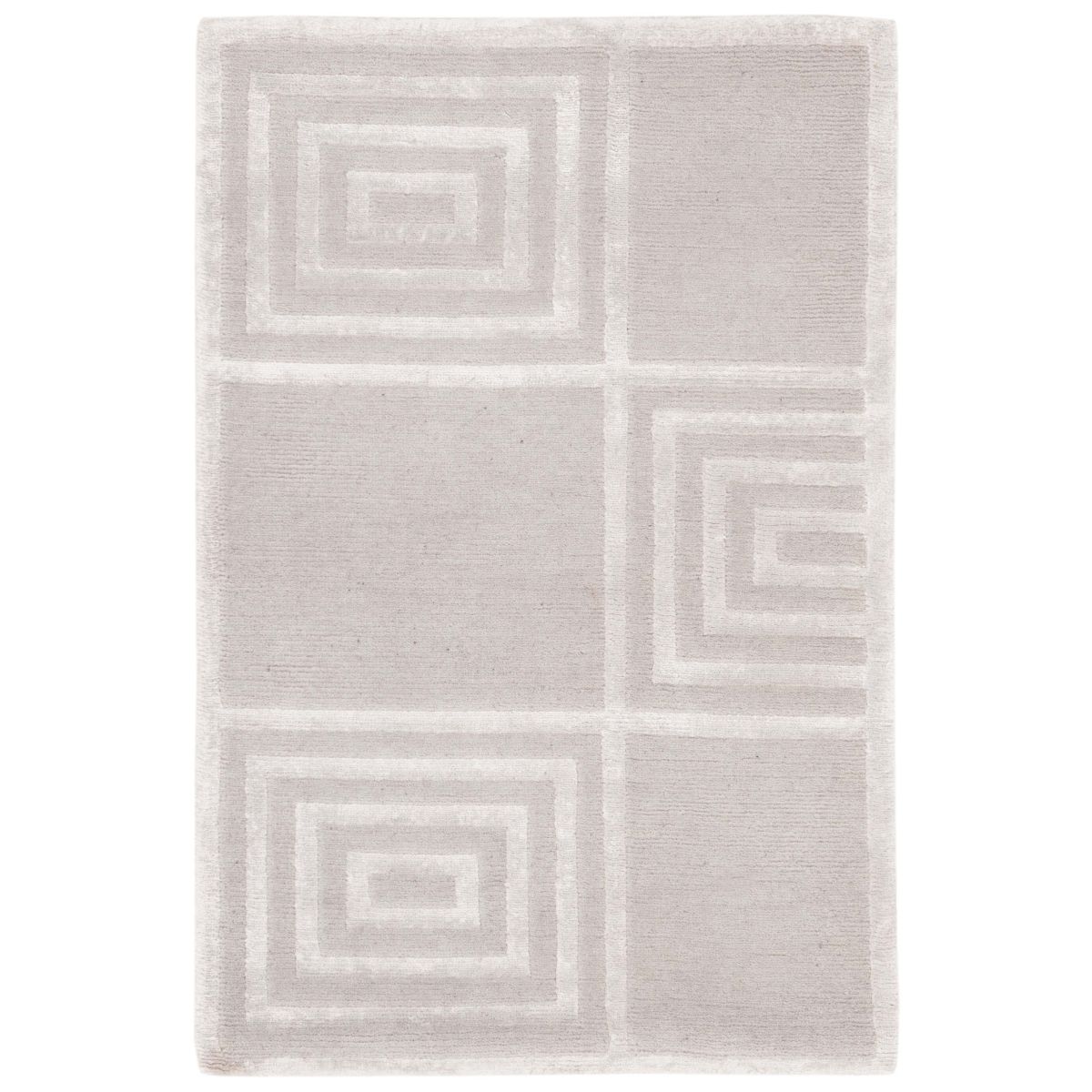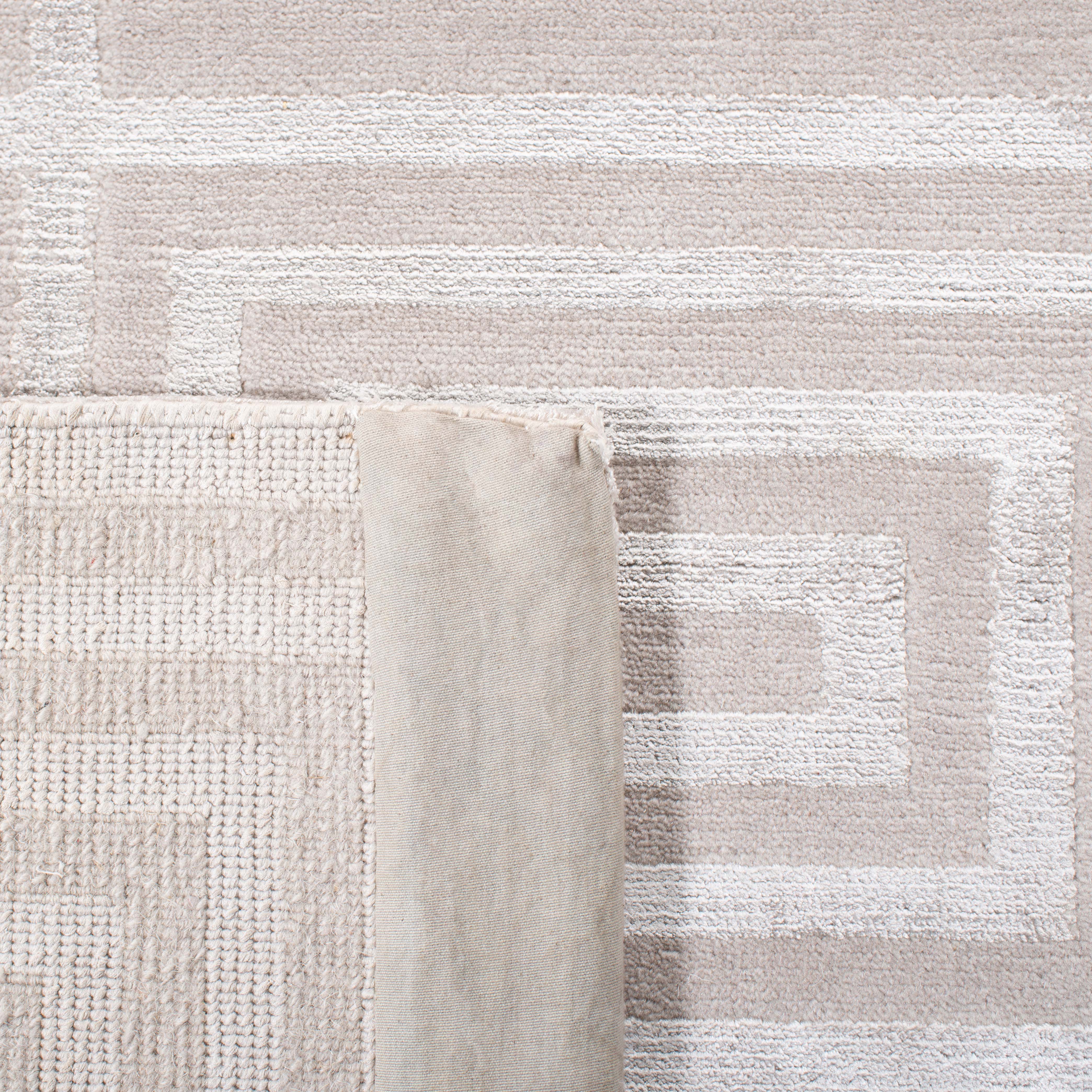 Introducing our exquisite hand-knotted area rug, a luxurious addition to any interior space. This rug features a timeless geometric pattern with intricate spirals and classic square motifs that exude elegance and sophistication. Crafted in the serene shades, this rug invites a sense of calm and luxury into your home.