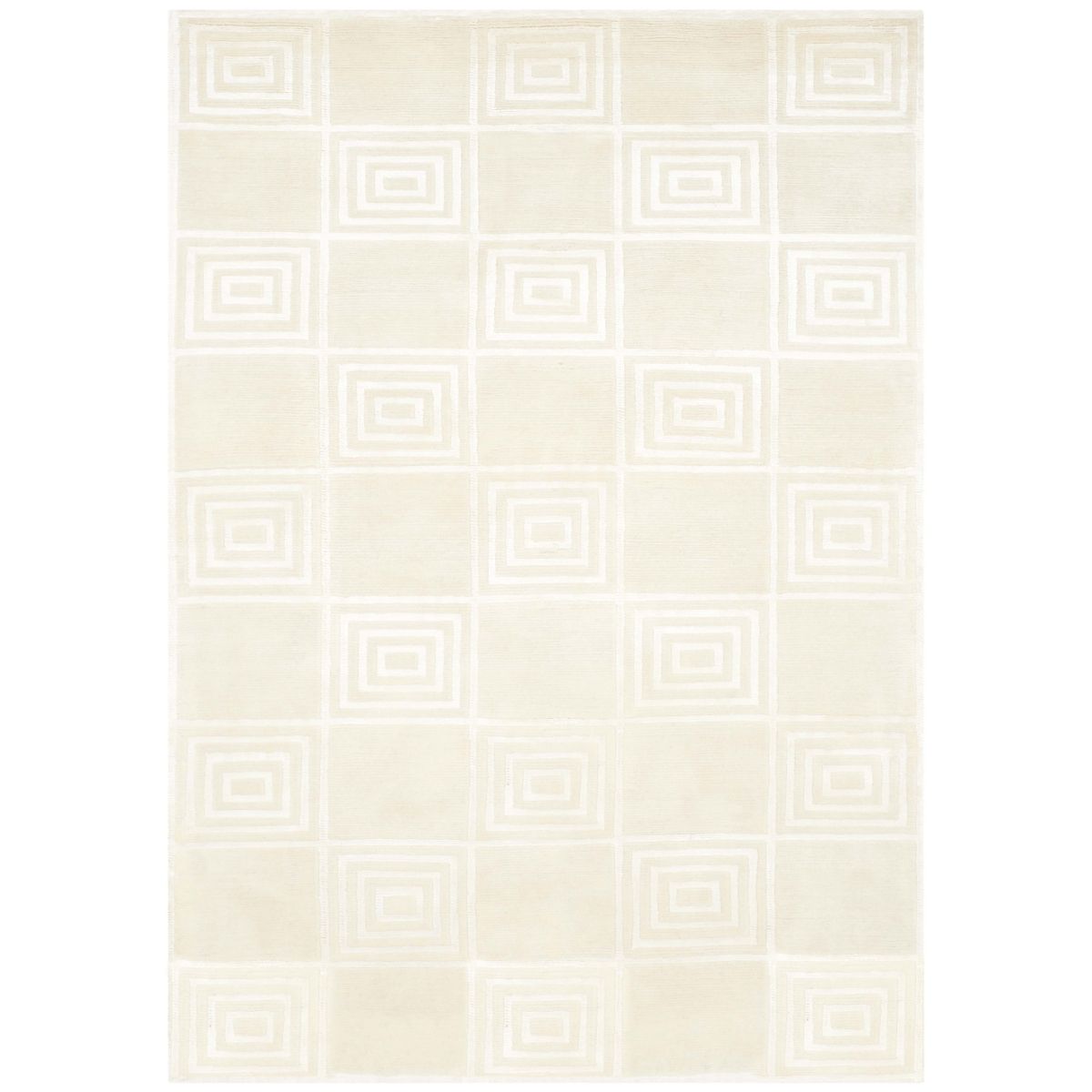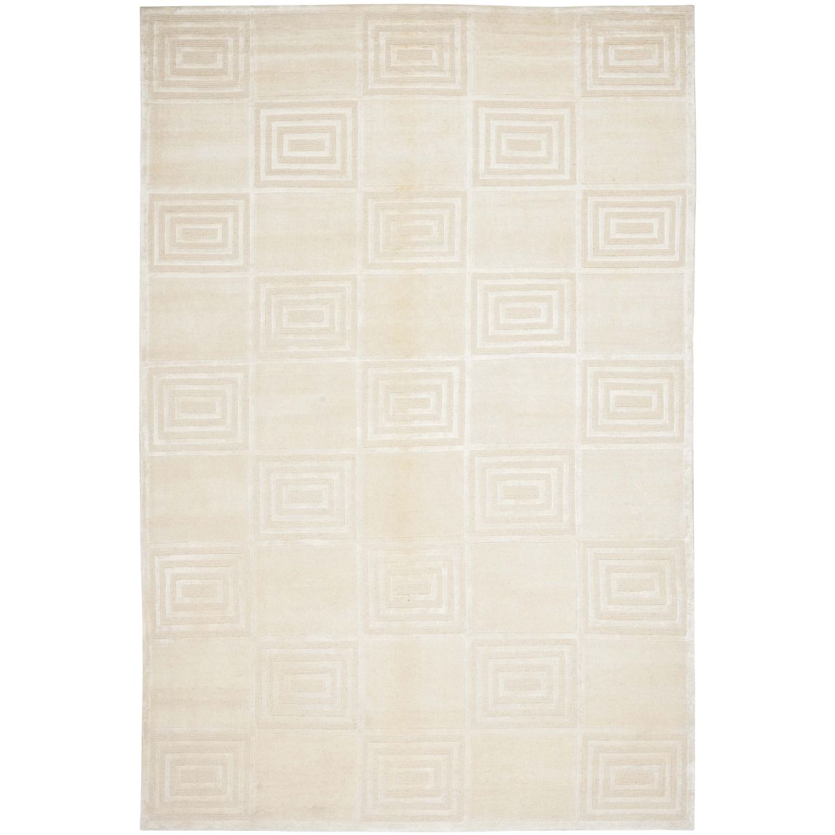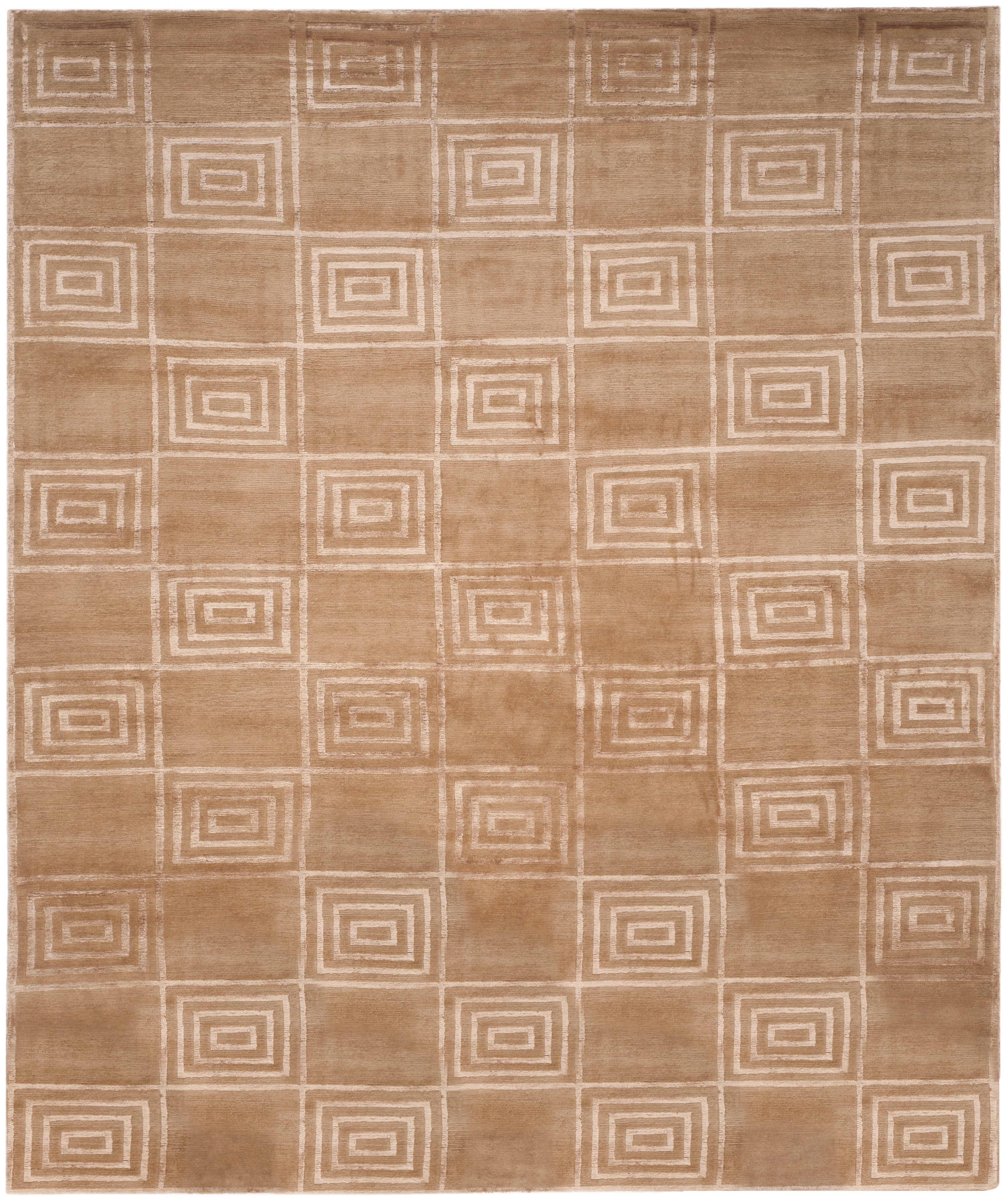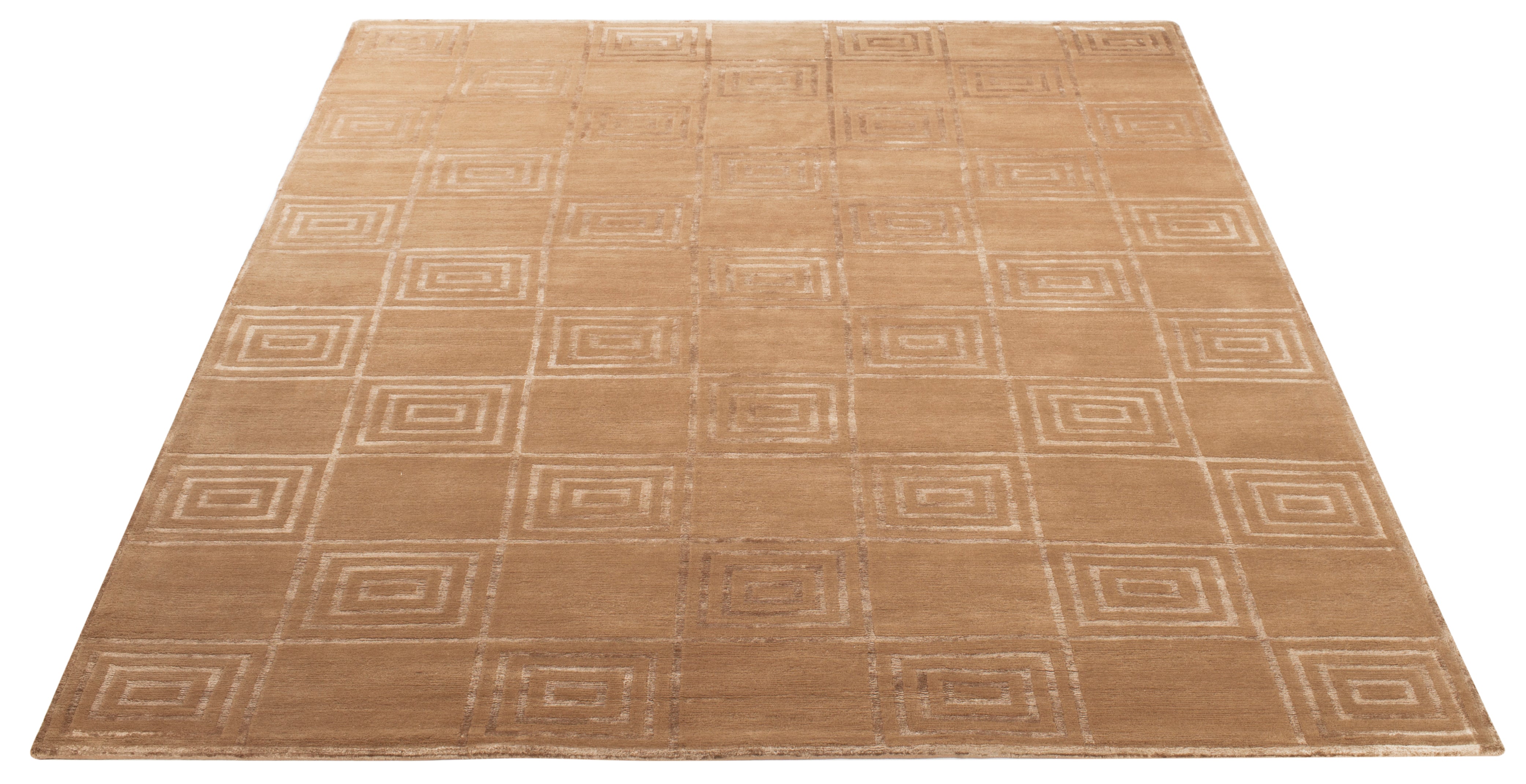 Introducing our exquisite hand-knotted area rug, a luxurious addition to any interior space. This rug features a timeless geometric pattern with intricate spirals and classic square motifs that exude elegance and sophistication. Crafted in the serene shades, this rug invites a sense of calm and luxury into your home.