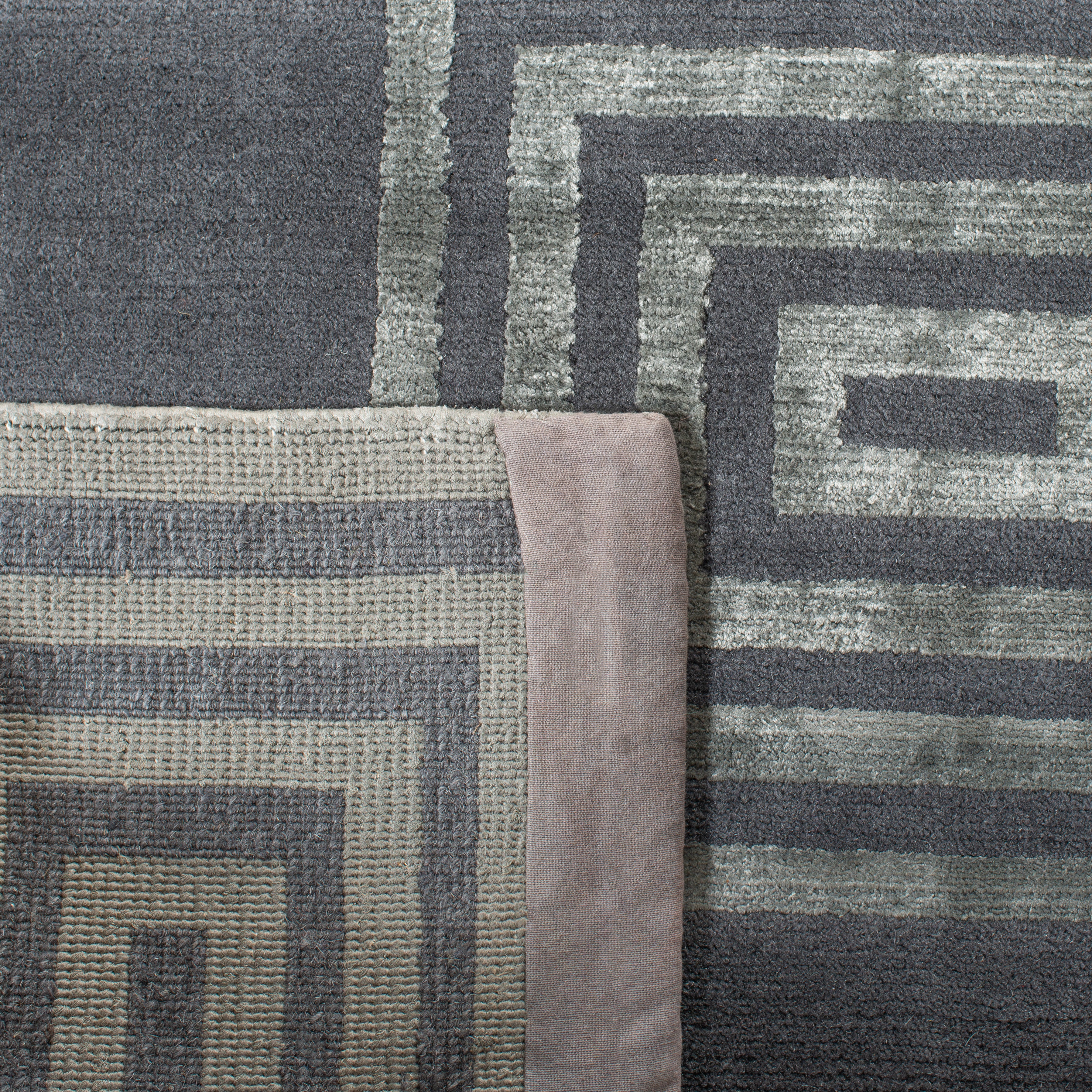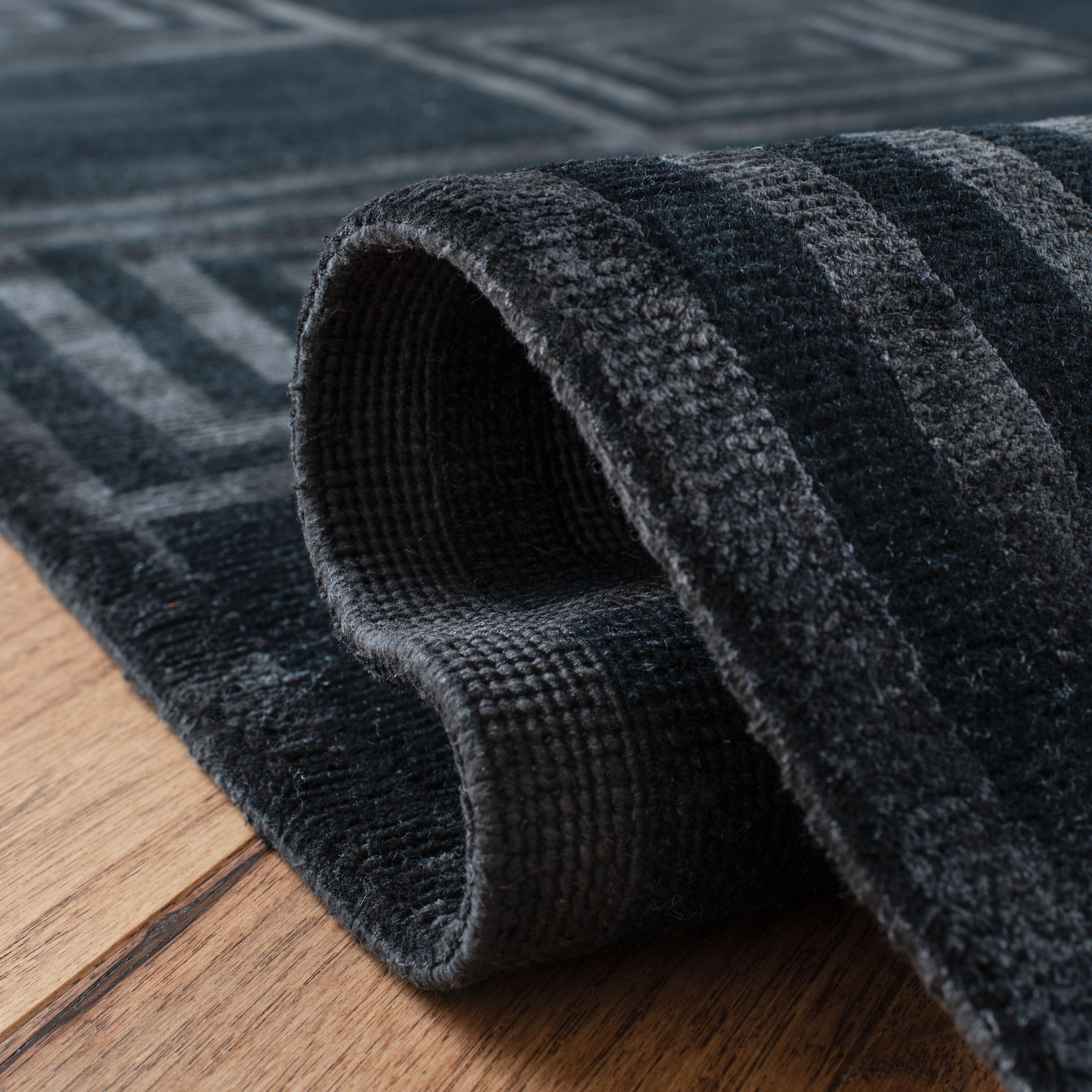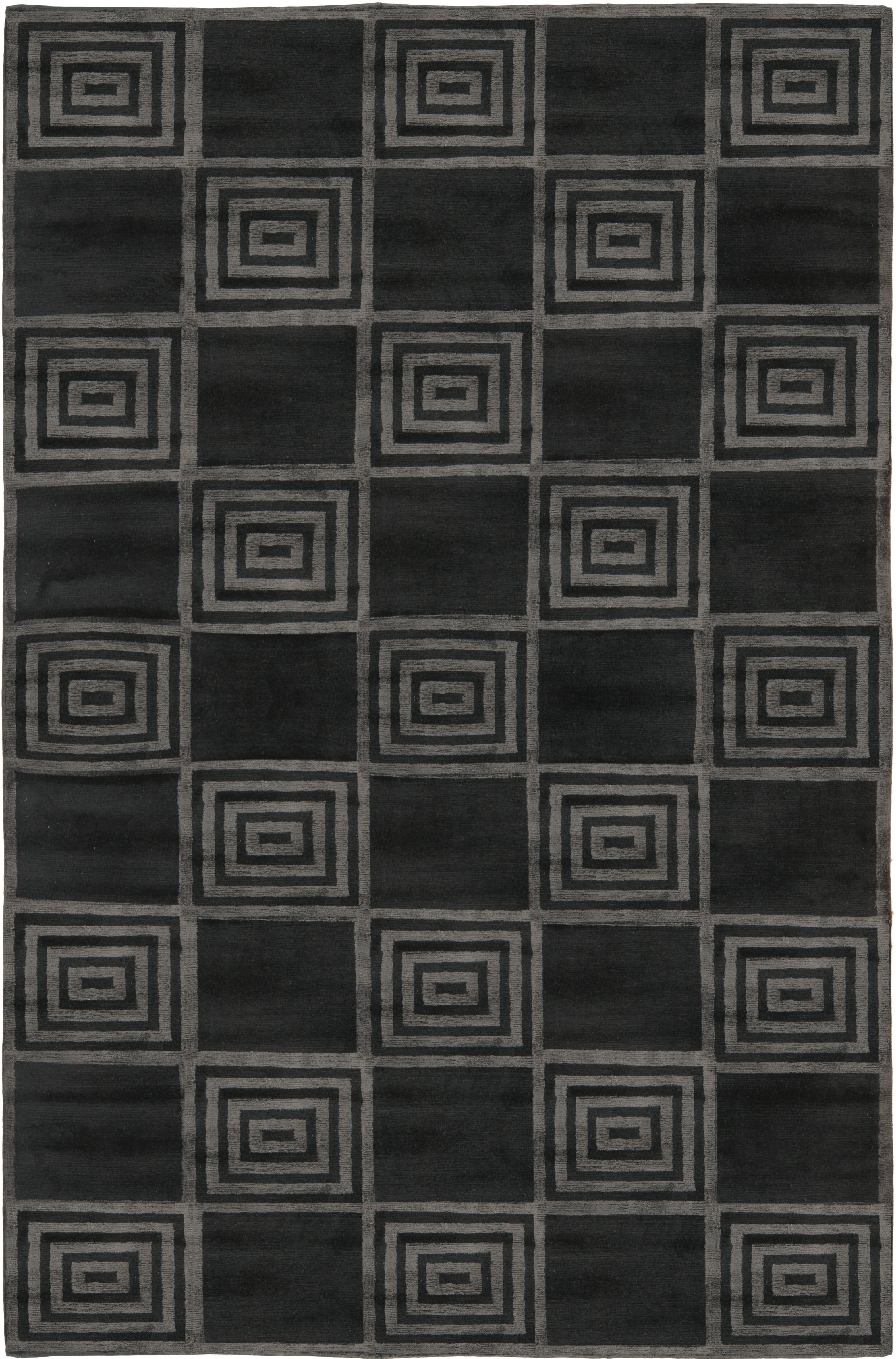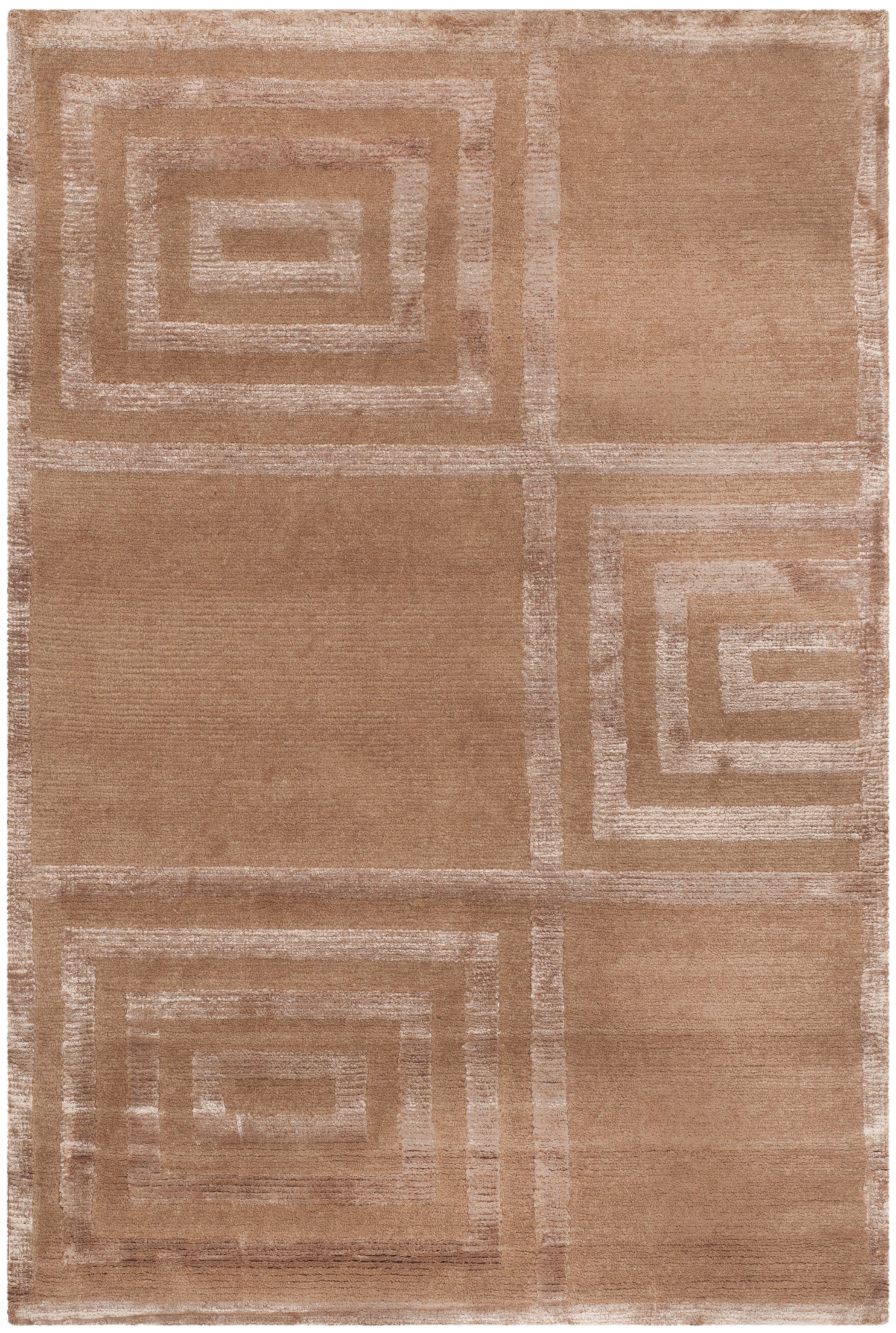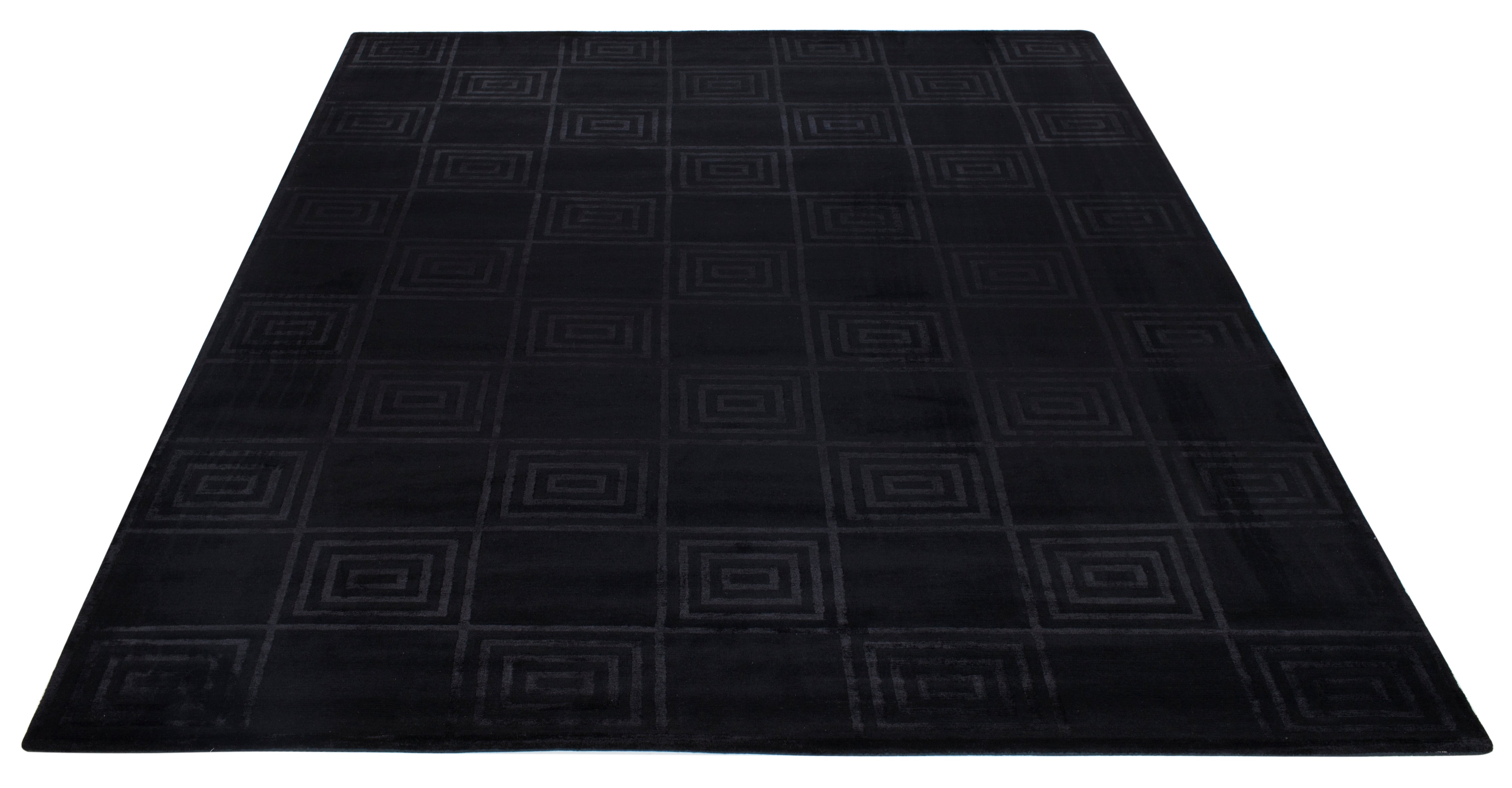Introducing our exquisite hand-knotted area rug, a luxurious addition to any interior space. This rug features a timeless geometric pattern with intricate spirals and classic square motifs that exude elegance and sophistication. Crafted in the serene shades, this rug invites a sense of calm and luxury into your home.