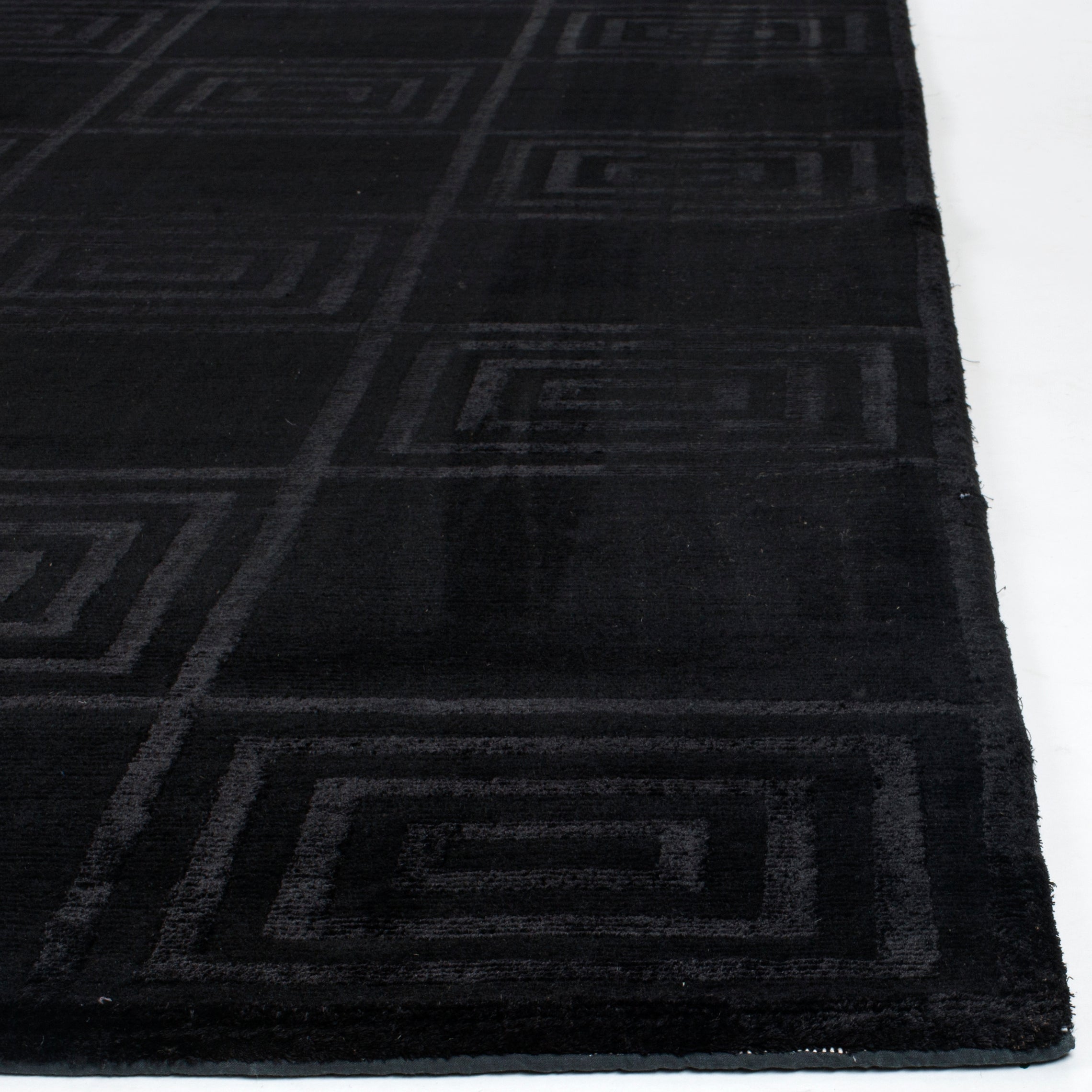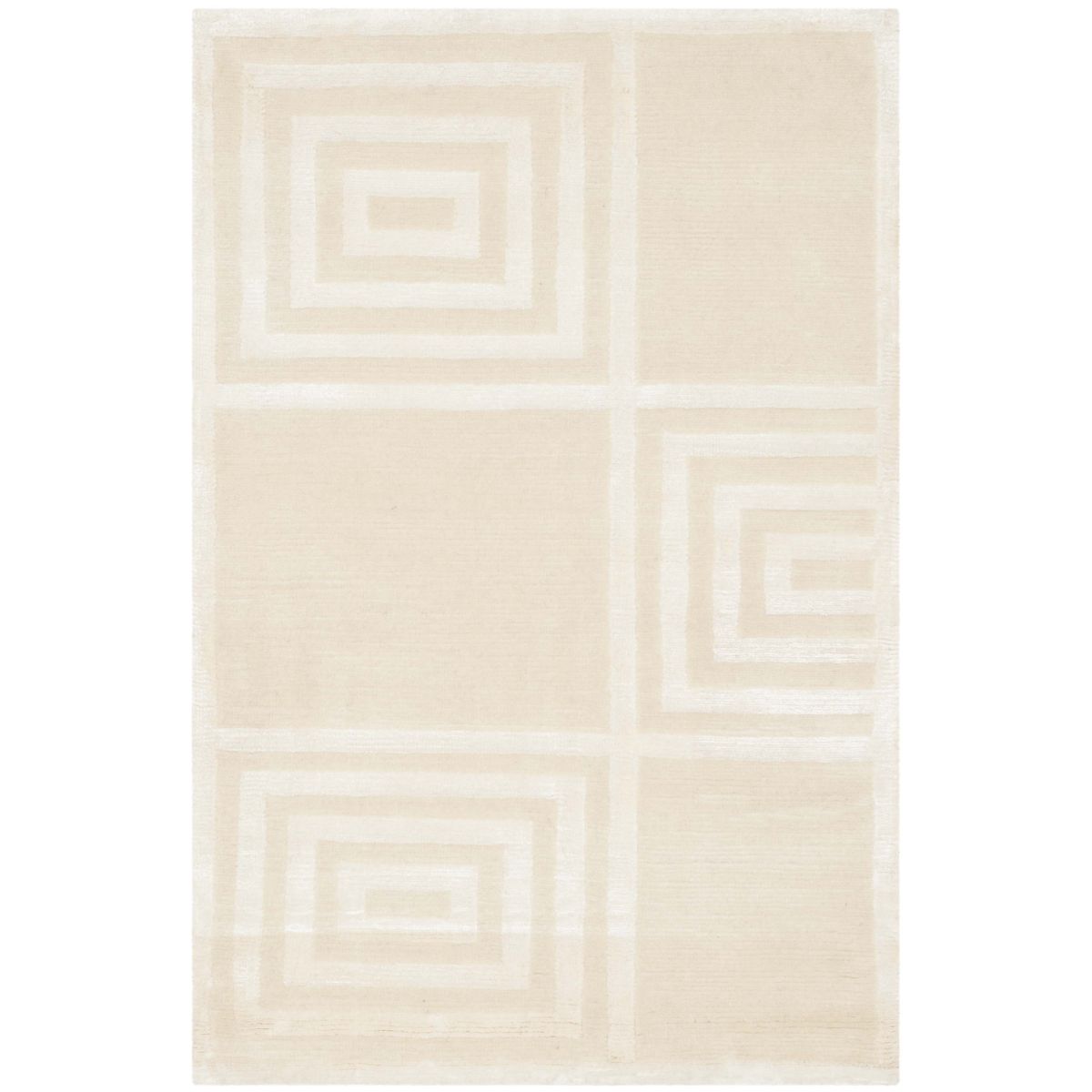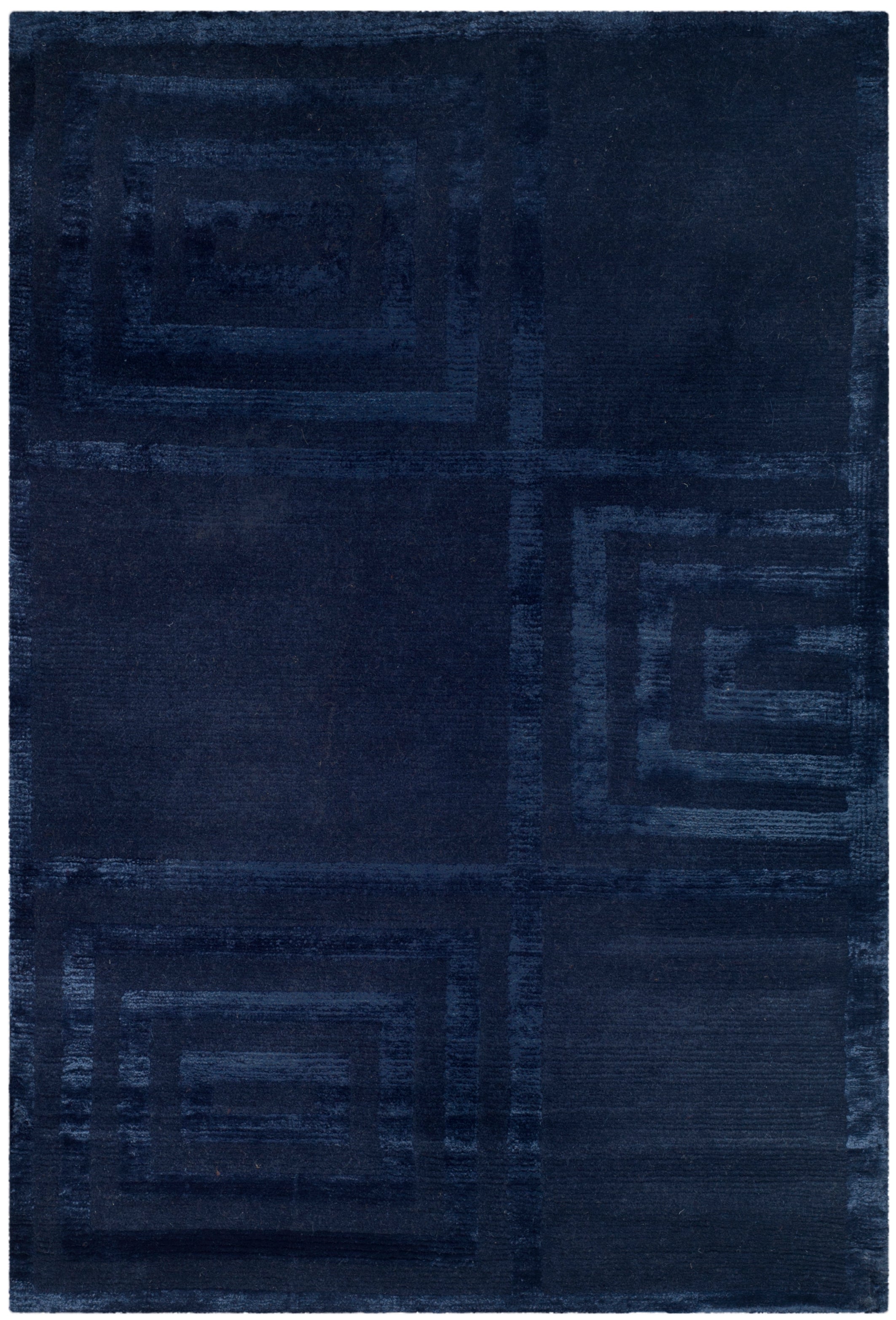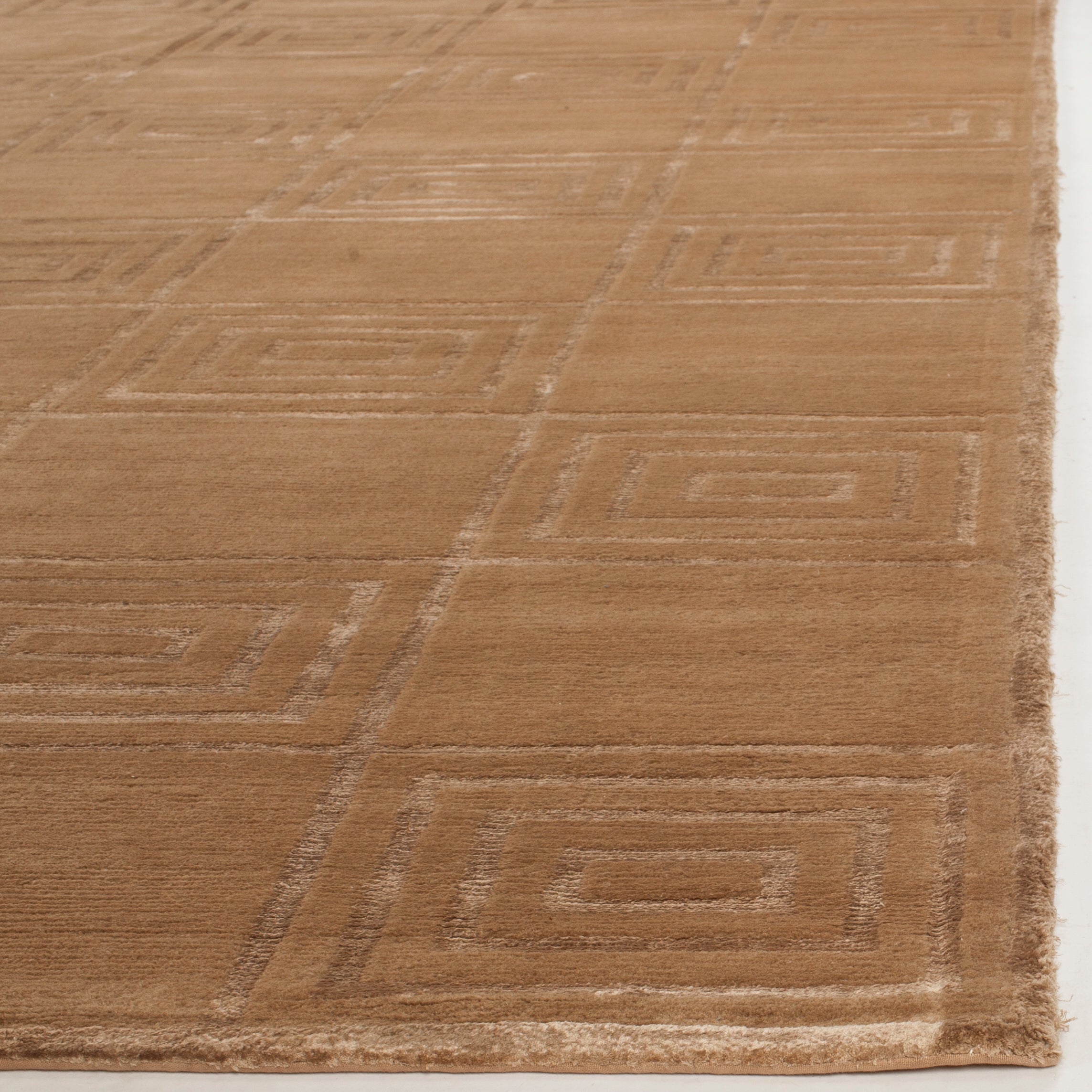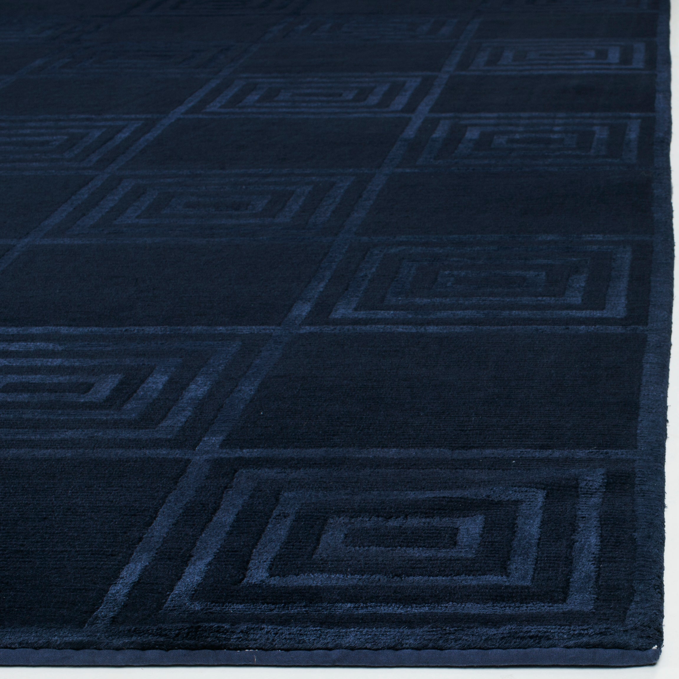 Introducing our exquisite hand-knotted area rug, a luxurious addition to any interior space. This rug features a timeless geometric pattern with intricate spirals and classic square motifs that exude elegance and sophistication. Crafted in the serene shades, this rug invites a sense of calm and luxury into your home.