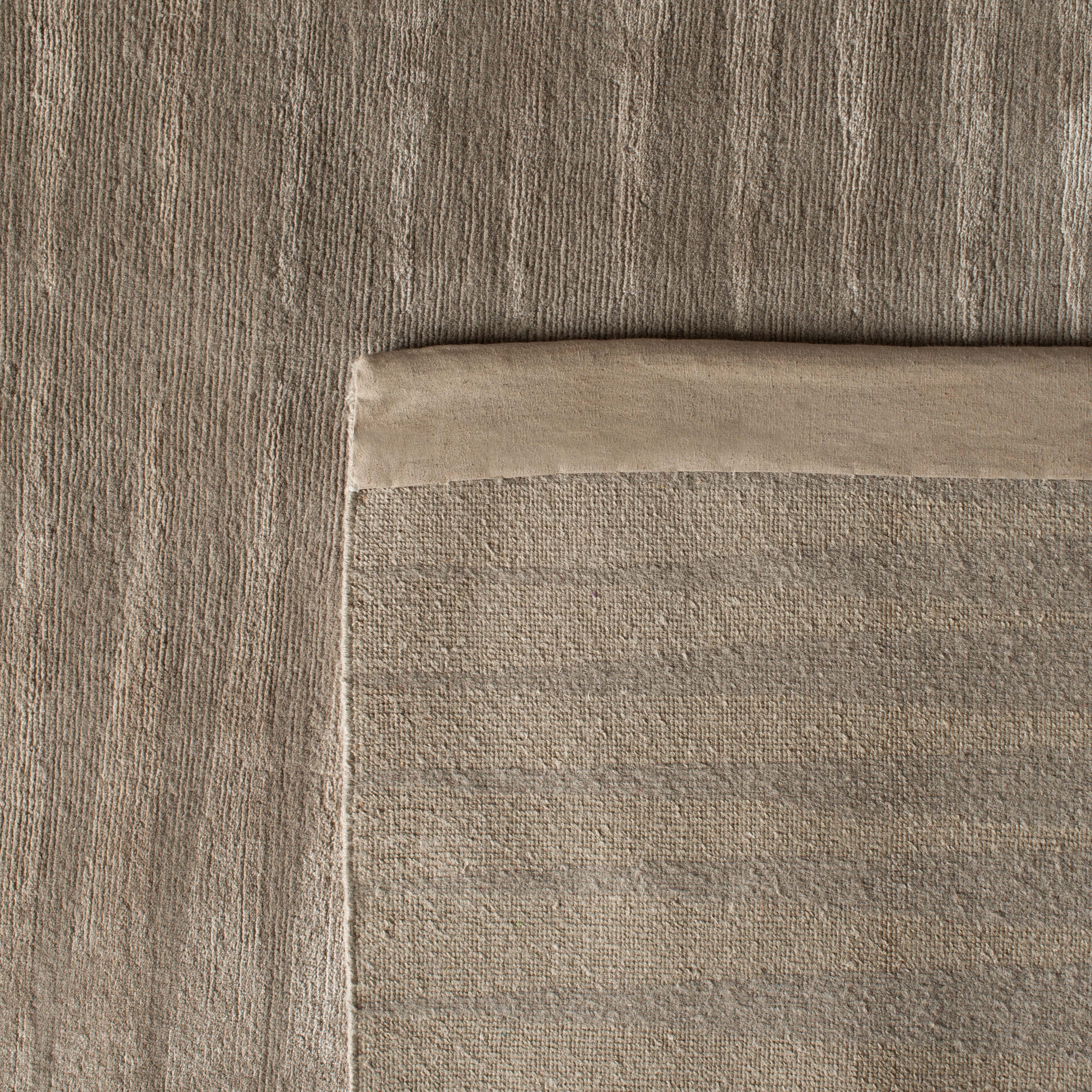 Originating from the skilled artisans of Nepal, the rug boasts a subtle, sophisticated pattern that promises to enhance the decor of any room. With a pile height of 1/4", it offers a sleek profile that is both practical and stylish.