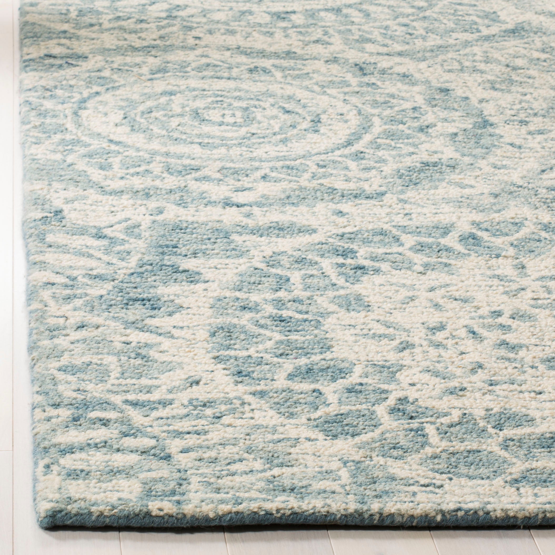 Elevate your space with the timeless elegance of our 10' X 14' large rectangle area rug. Hand-tufted in India with meticulous care, this luxurious wool rug promises both comfort and durability. The 1/2" height provides a plush underfoot experience, while the ivory and blue color palette imbues a sense of calm and sophistication into any room.