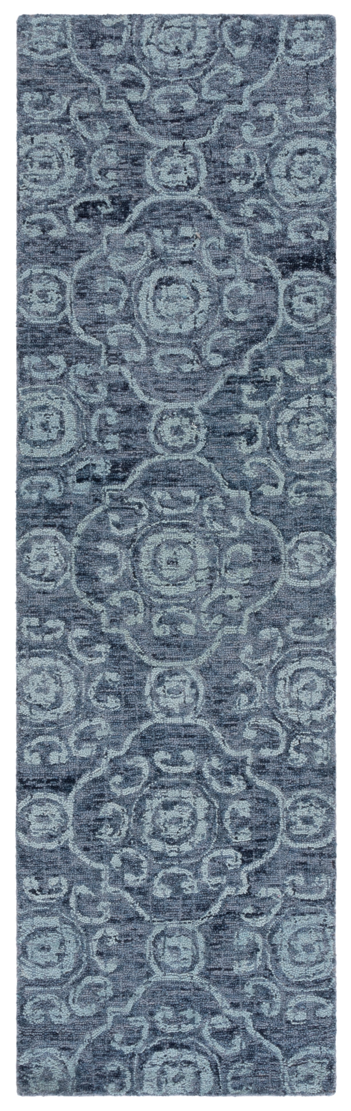 Enhance your space with the elegance and grace of our hand-tufted wool runner rug. Crafted in India, this sophisticated piece measures 2' 3" X 8' and boasts a pile height of 3/8". It showcases an intricate pattern in serene shades of blue, adding a touch of tranquility to your hallway or living area. The wool construction ensures a luxuriously soft feel underfoot, while the runner's shape is ideally suited for long, narrow spaces. This rug merges traditional style with the quality craftsmanship of hand-tufted techniques, presenting a timeless appeal. Please note that this piece is not washable and lacks slip resistance, requiring a rug pad for secure placement. Add this enduring piece to your collection for a touch of artistry and sophistication.