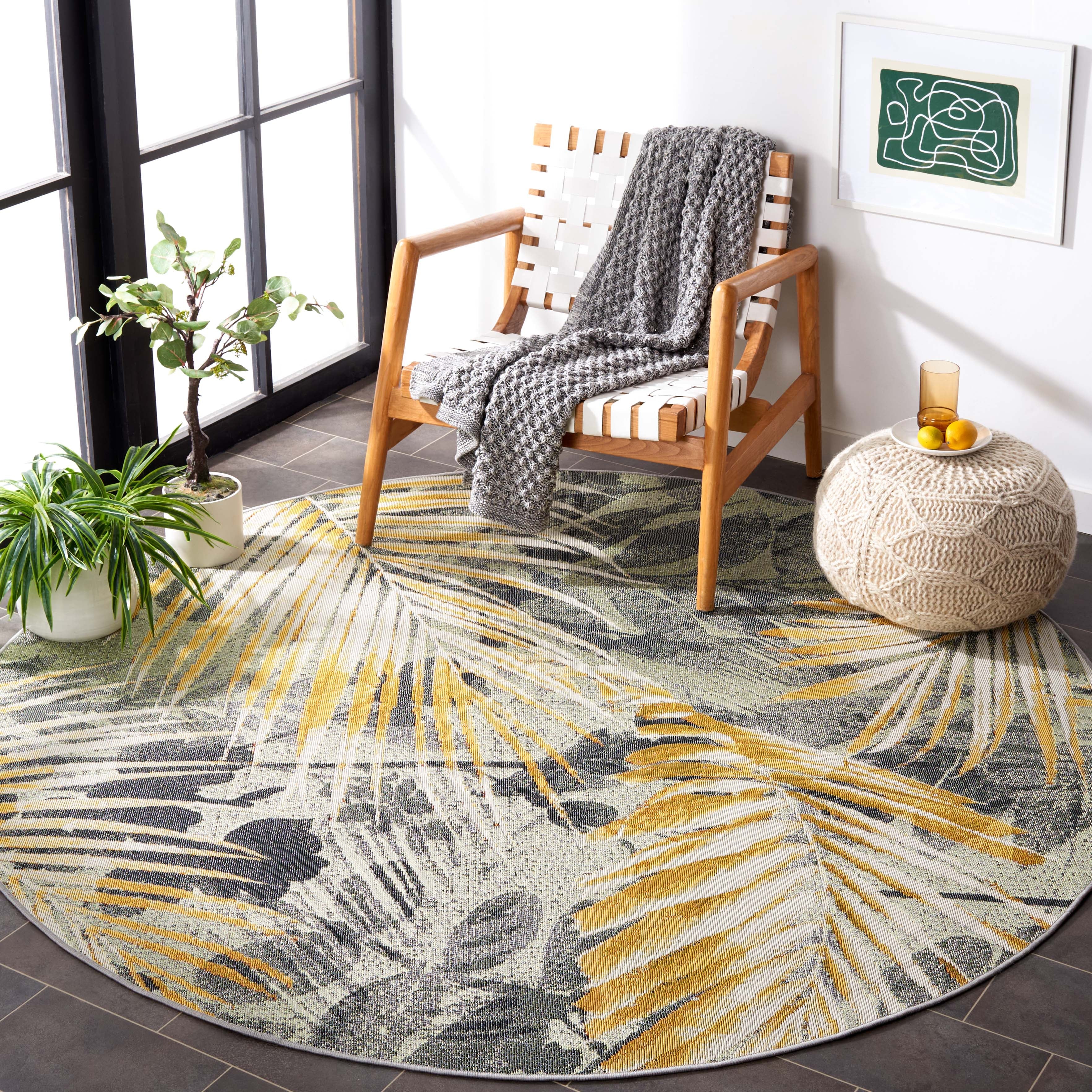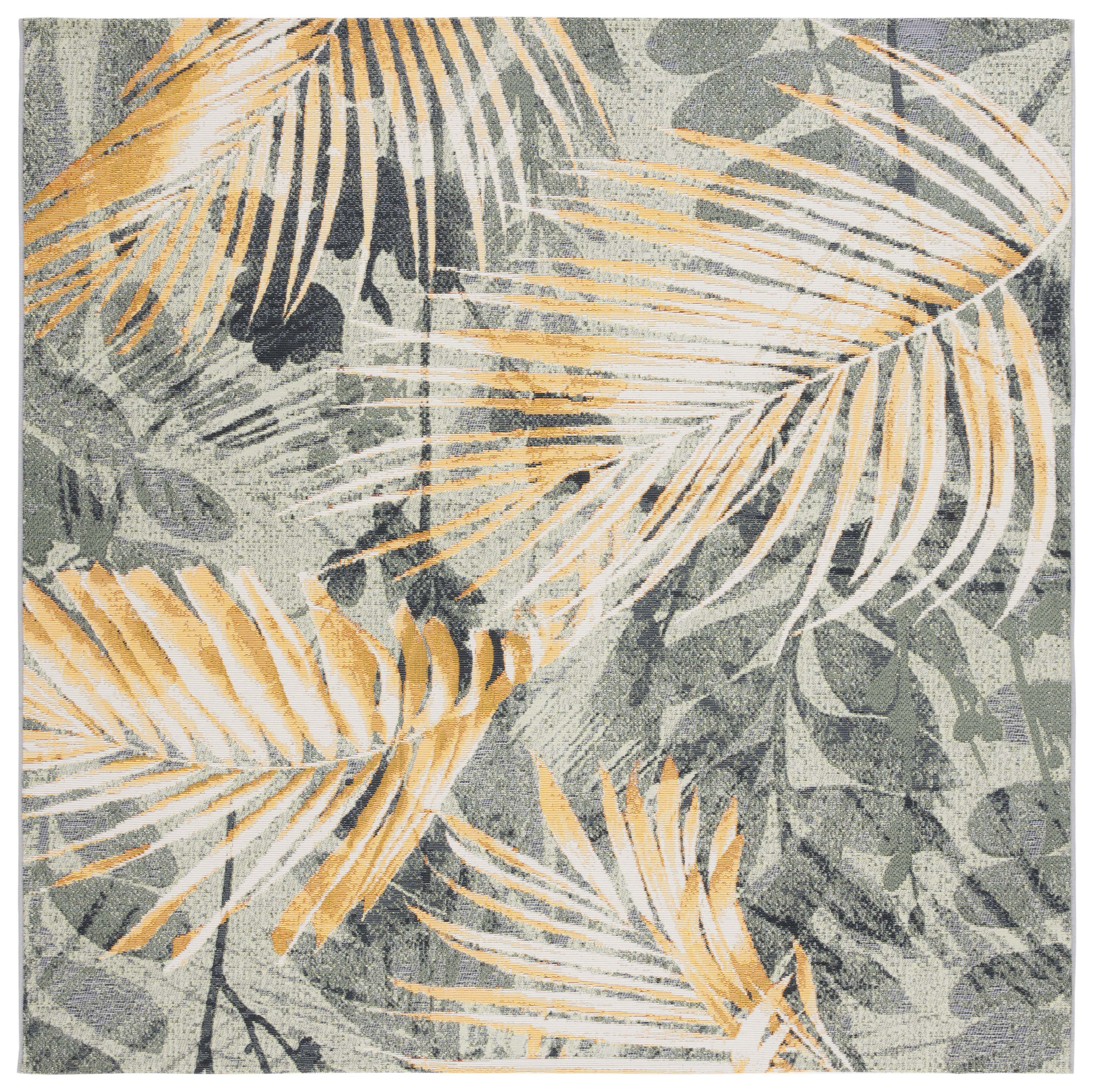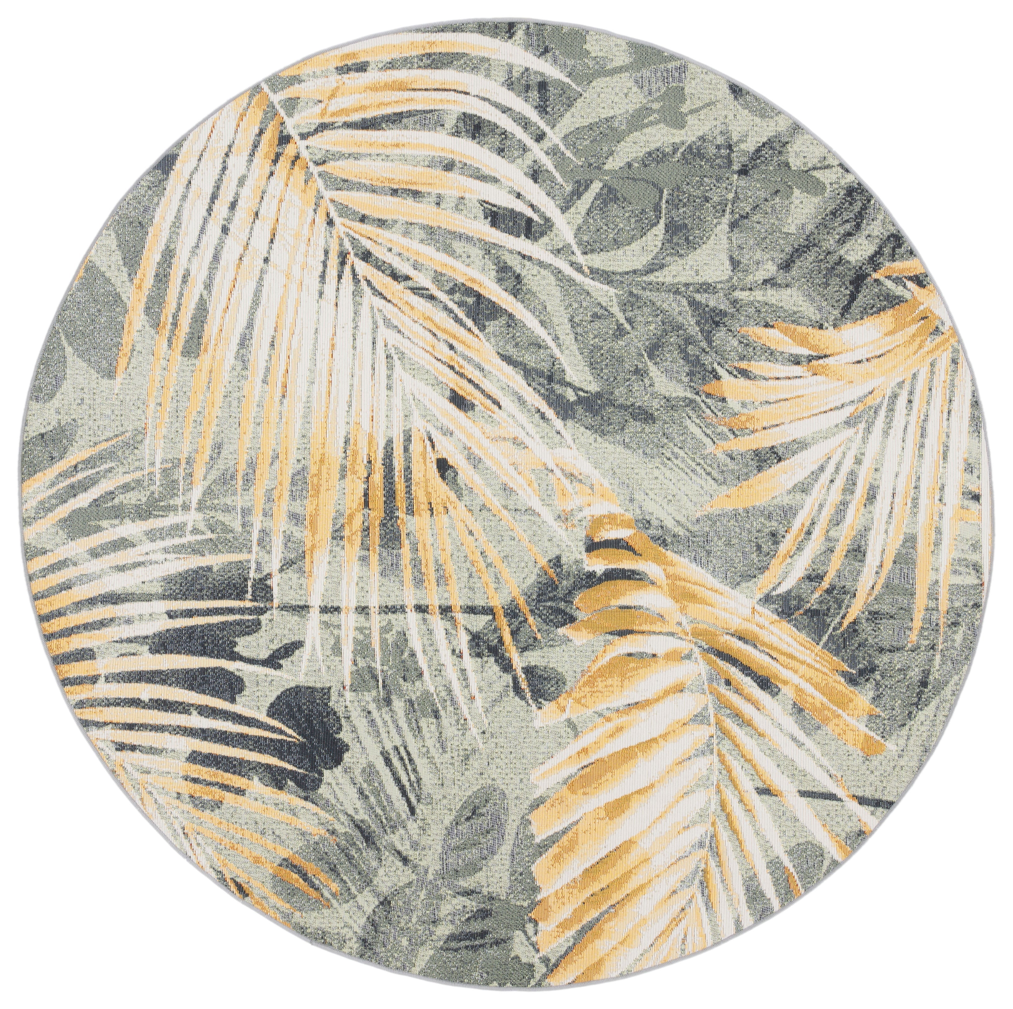 The alluring pattern of the rug features an elegant display of tropical leaves that paints a lush oasis in shades of green, highlighted with bold accents of black and radiant touches of gold. These colors come together to create a vivid yet sophisticated palette that can enhance a variety of decor styles.