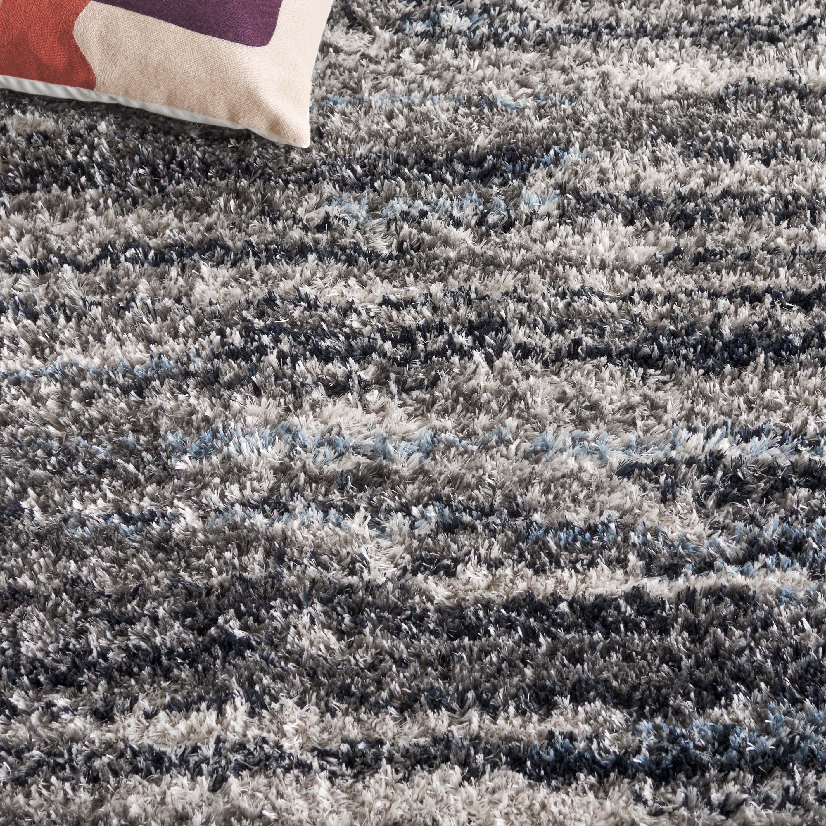 Step into the plush comfort and modern style of our Grey/Blue Area Rug, a delightful addition to any hallway or narrow space within your home. With a luxurious pile height of 2 inches, this rug is a true definition of comfort underfoot. The color palette is a sophisticated blend of greys and blues, crafted in a harmonious striped pattern that can effortlessly complement both contemporary and classic interiors.