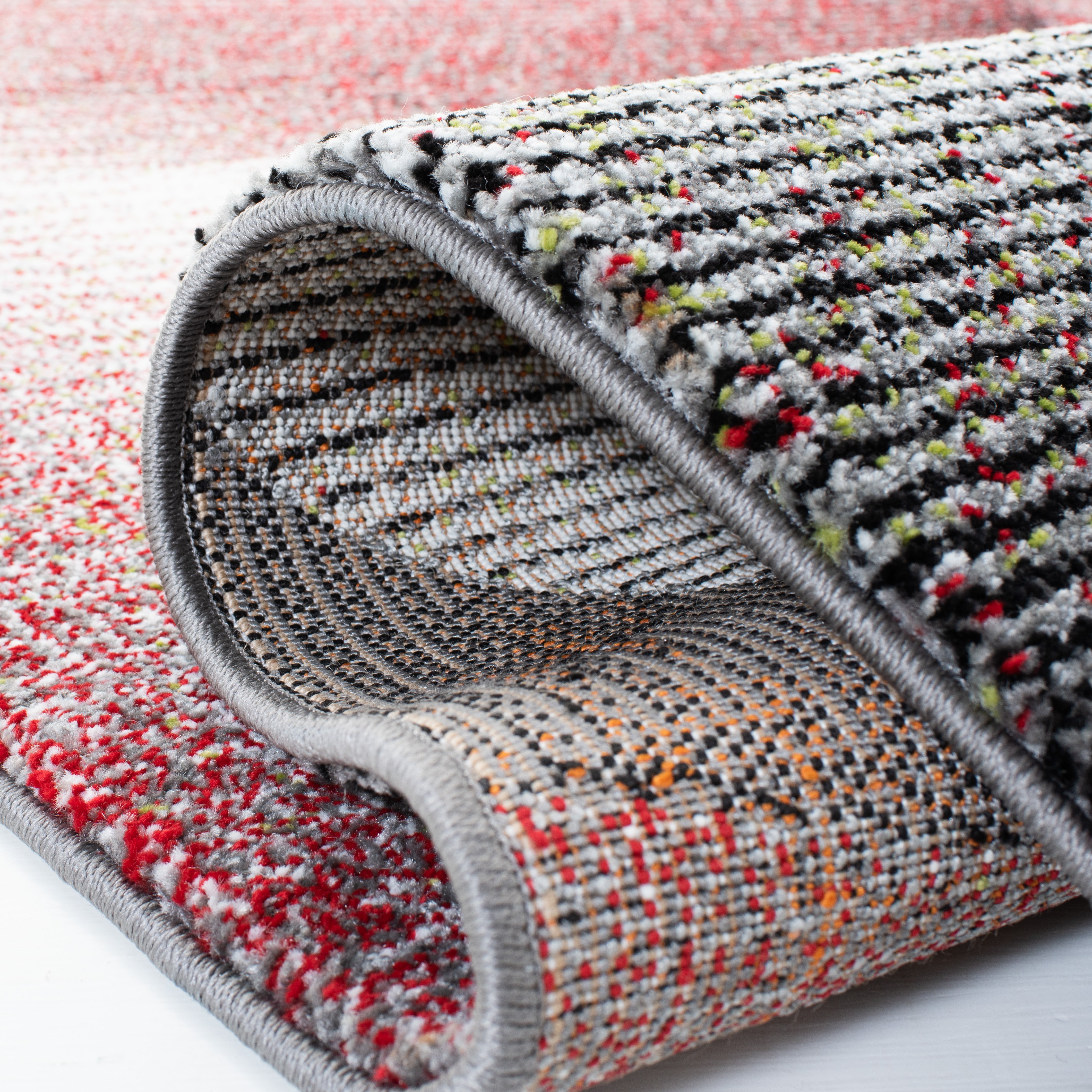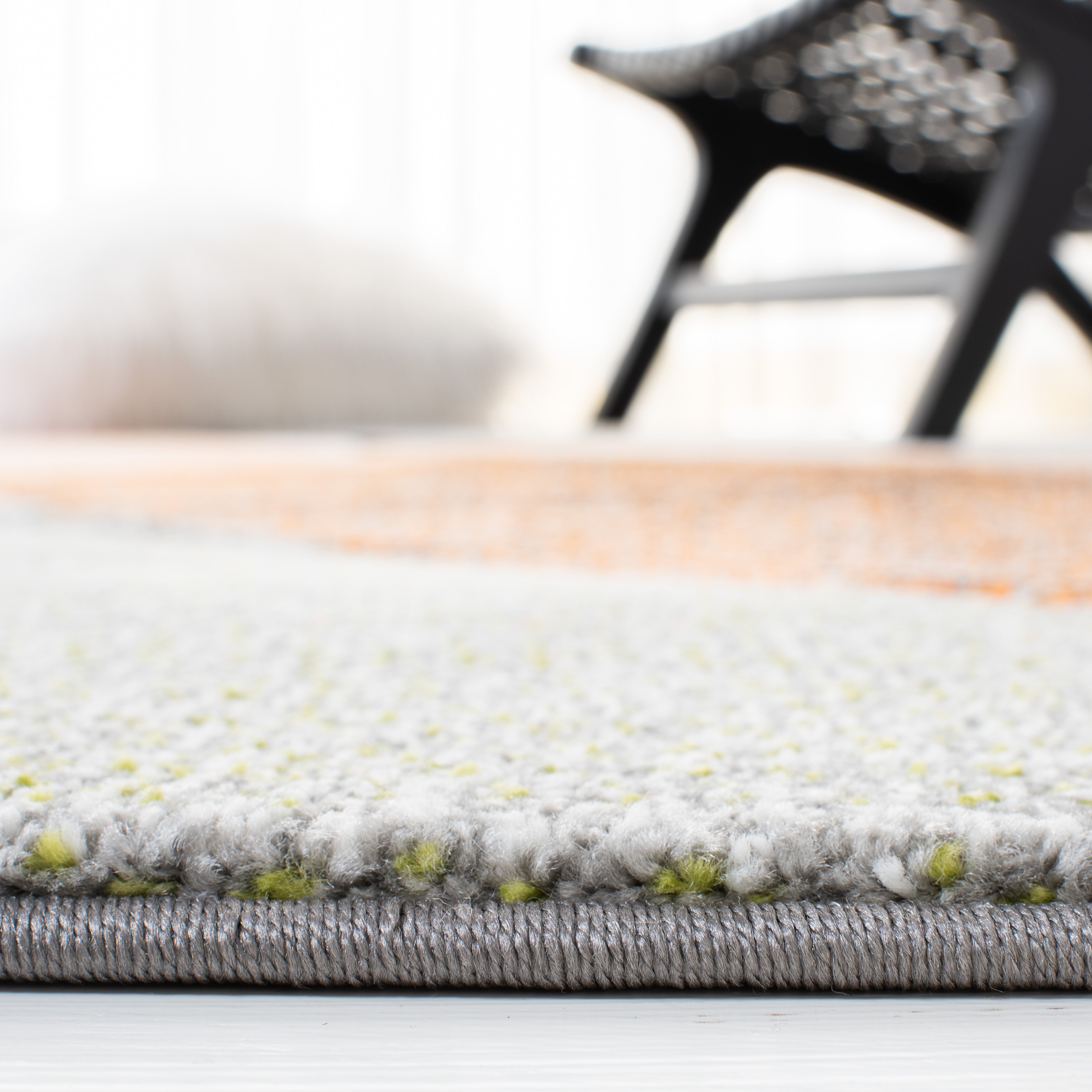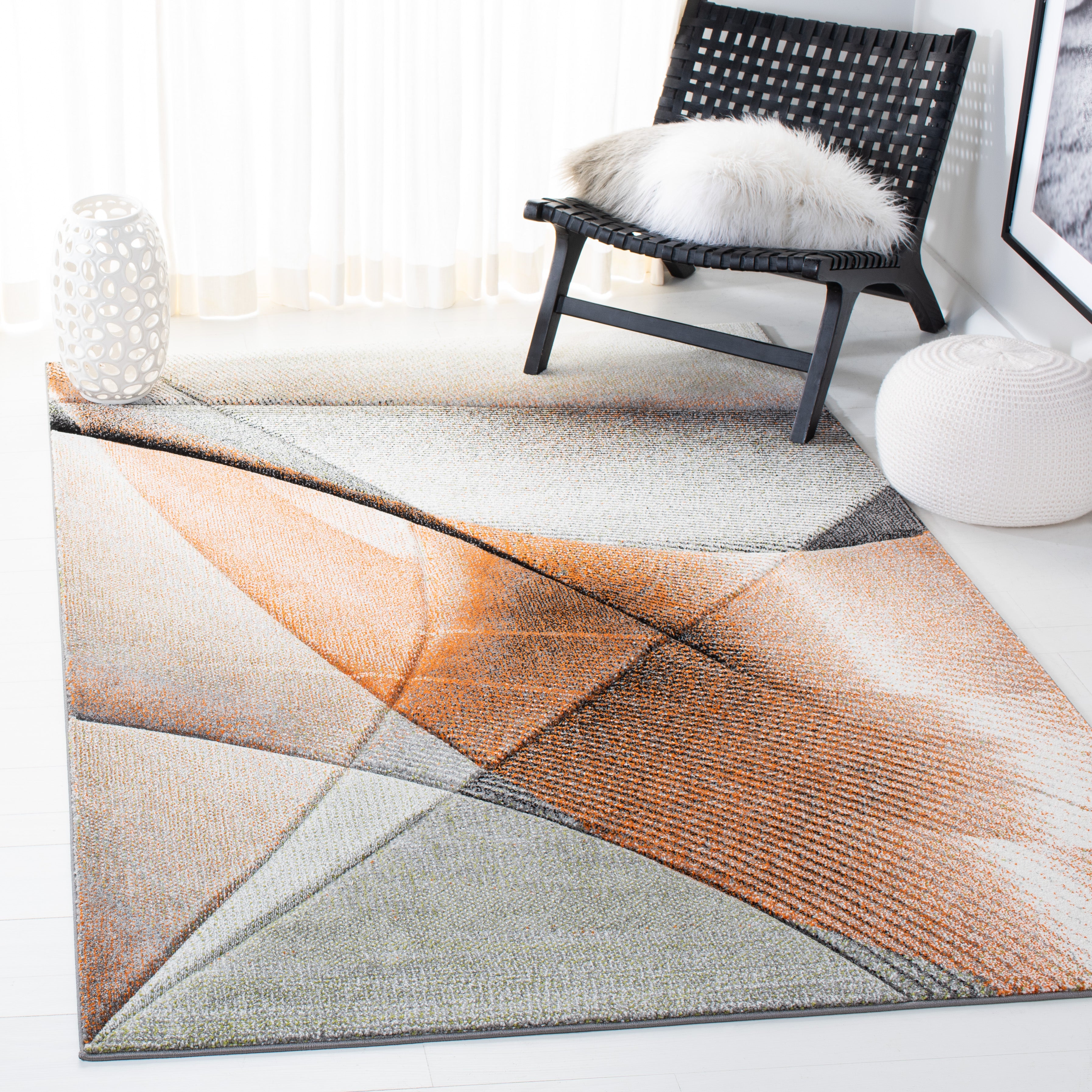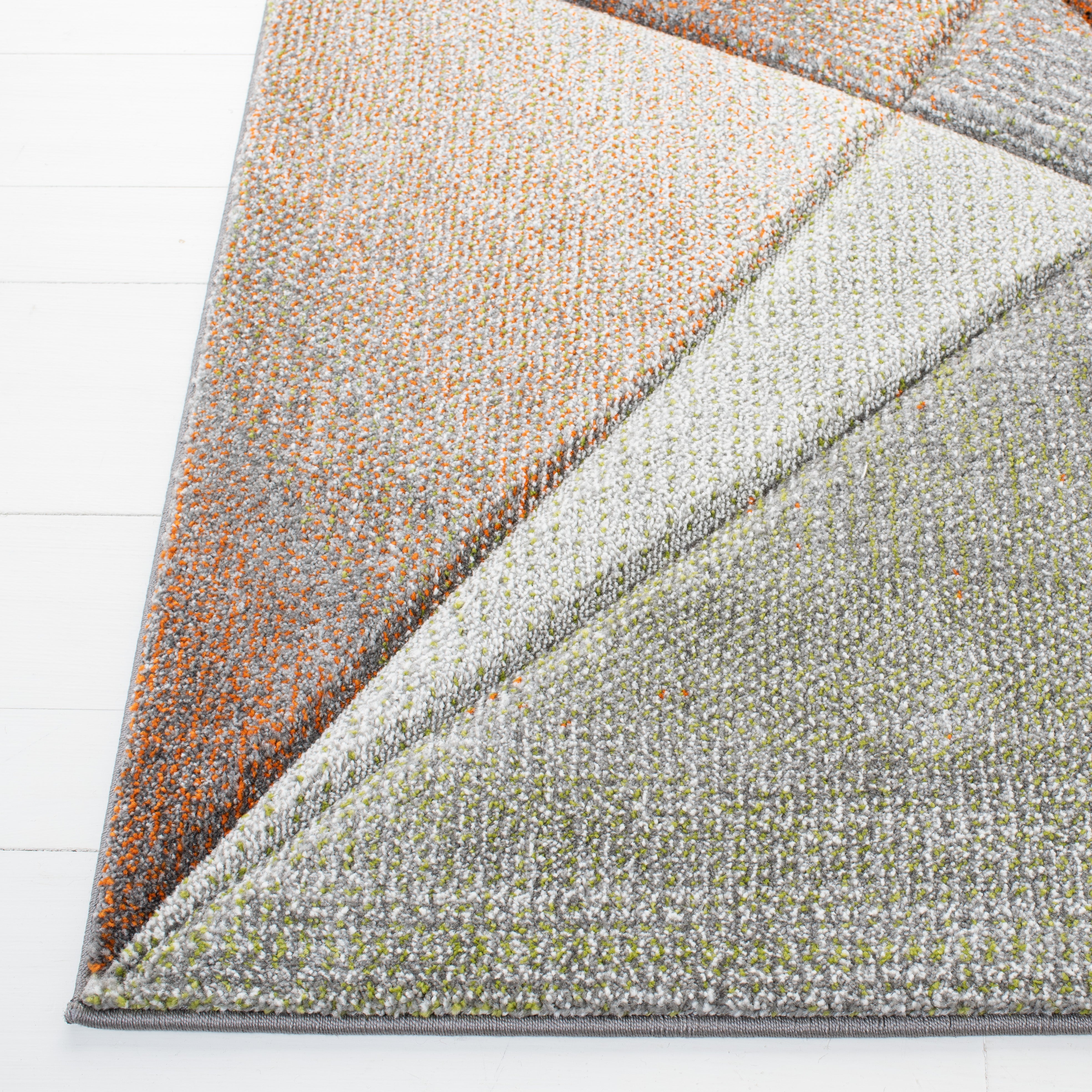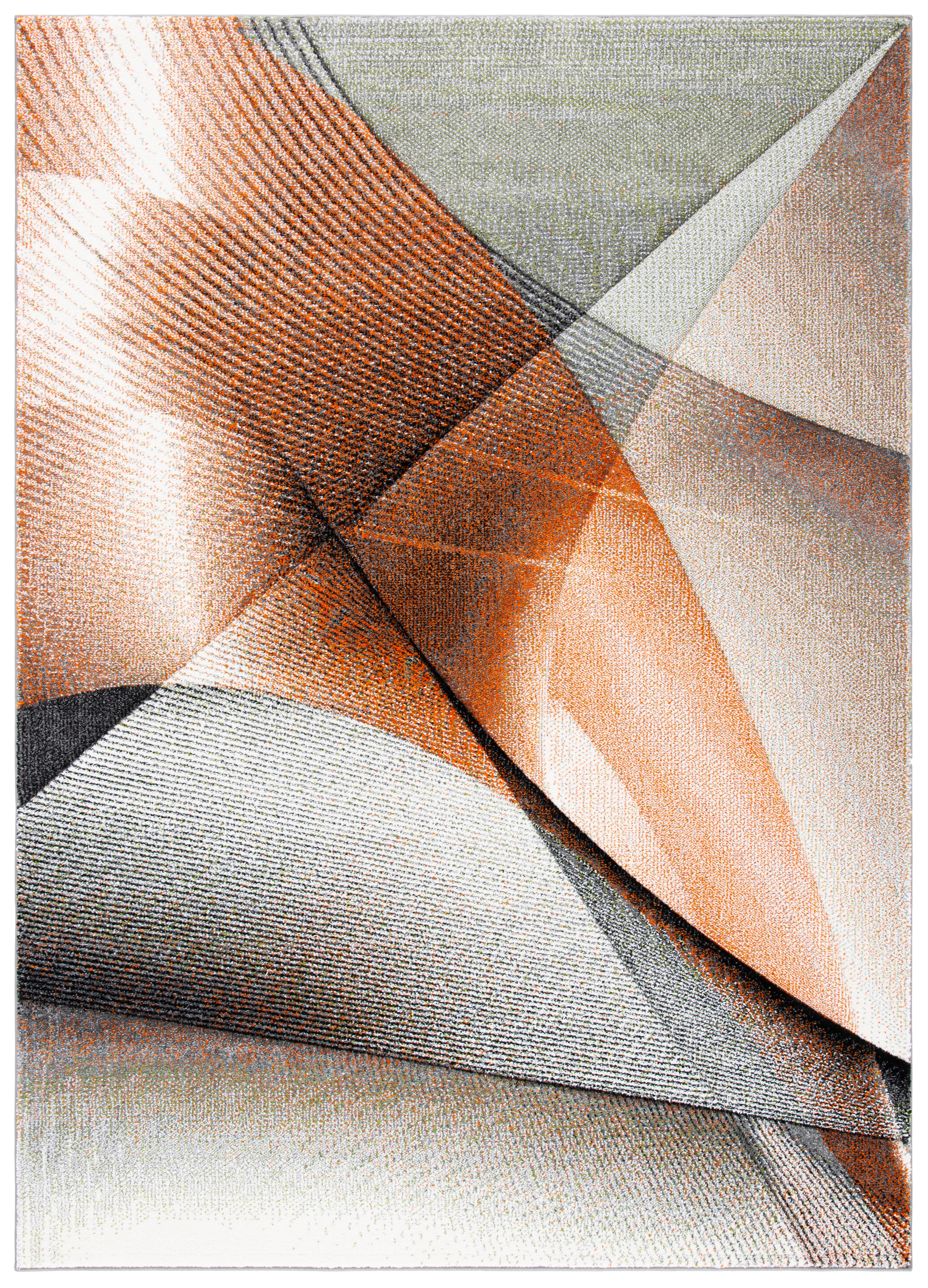 Elevate your living space with the dynamic artistry of our contemporary area rug, exquisitely crafted in the vibrant hues of grey and orange. Measuring a grand 10'-6" X 14', this large rectangle rug is an ideal anchor for any expansive room, offering both luxury and style. With a plush height of 5/8", it provides a soft, inviting underfoot experience.