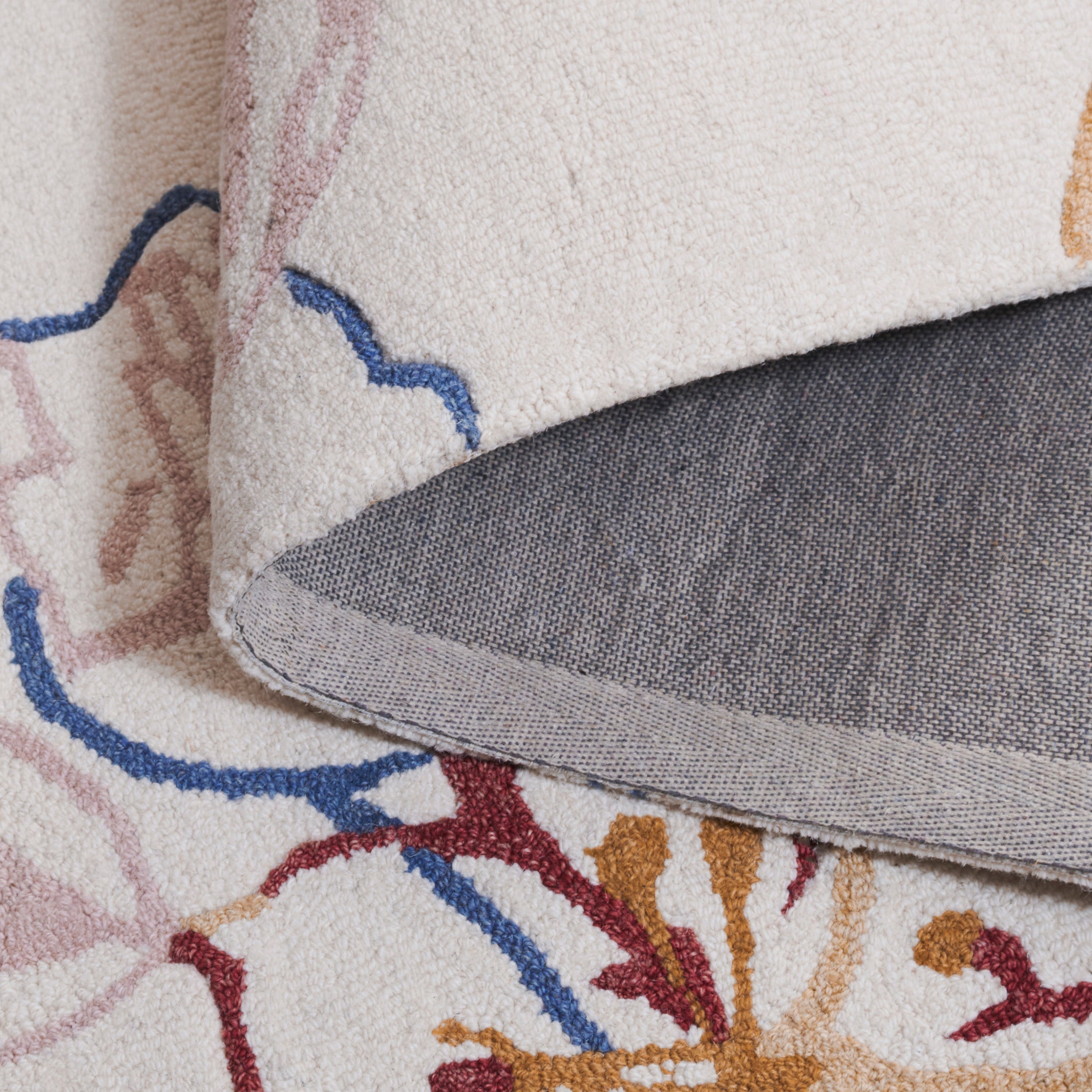 Introducing our magnificent area rug! This rug, woven in India, showcases a premium blend of high-quality materials - 80% wool and 20% cotton - ensuring a soft and comfortable feel underfoot. Created using a precise hand tufted technique, this rug exudes intricate craftsmanship and detail. A height of just 1/2'' makes it easy to accommodate in any room without creating a tripping hazard. Adorned with a floral pattern, this rug effortlessly infuses a touch of nature into your living space, pairing an elegant base with charming details. It is sure to breathe fresh life into your home decor.