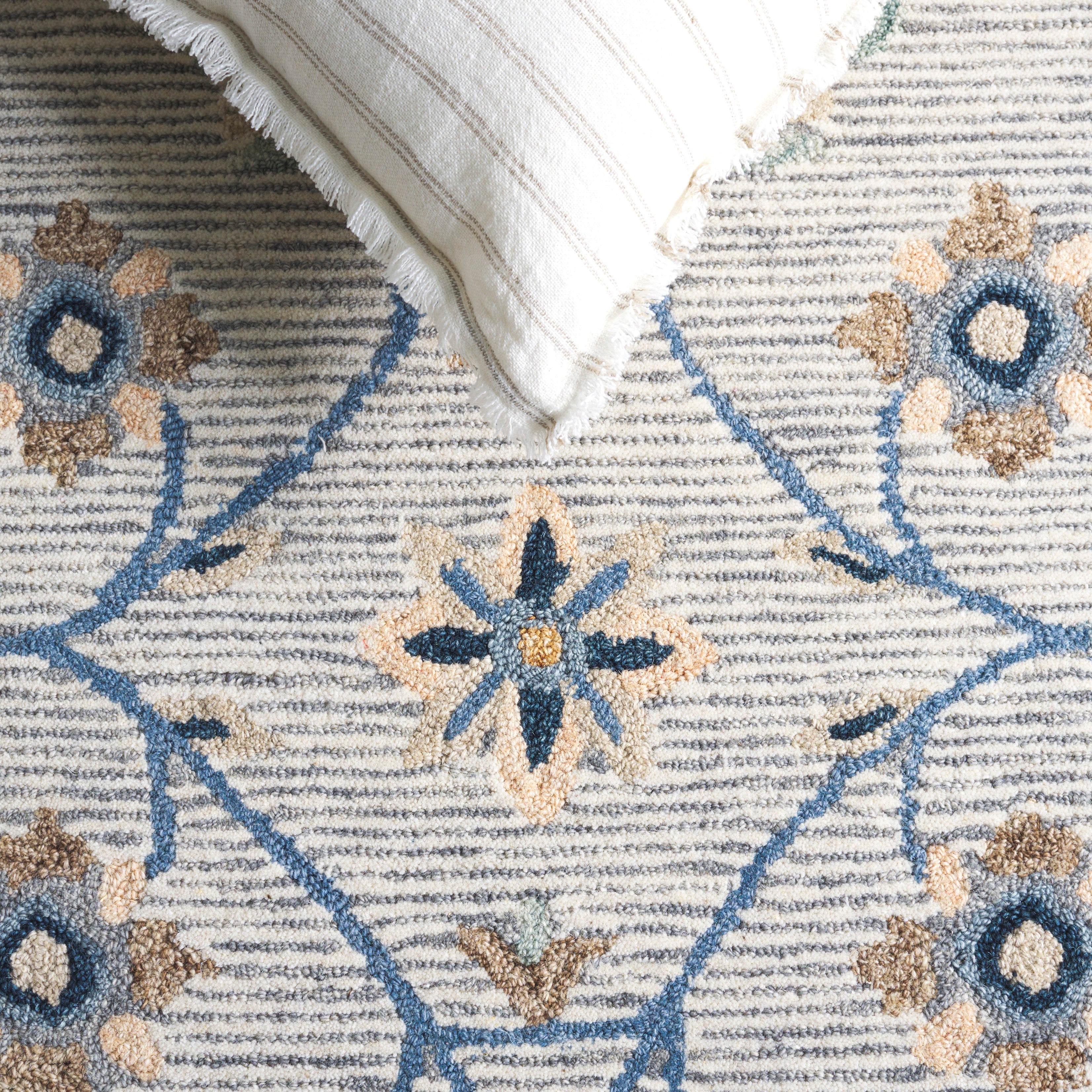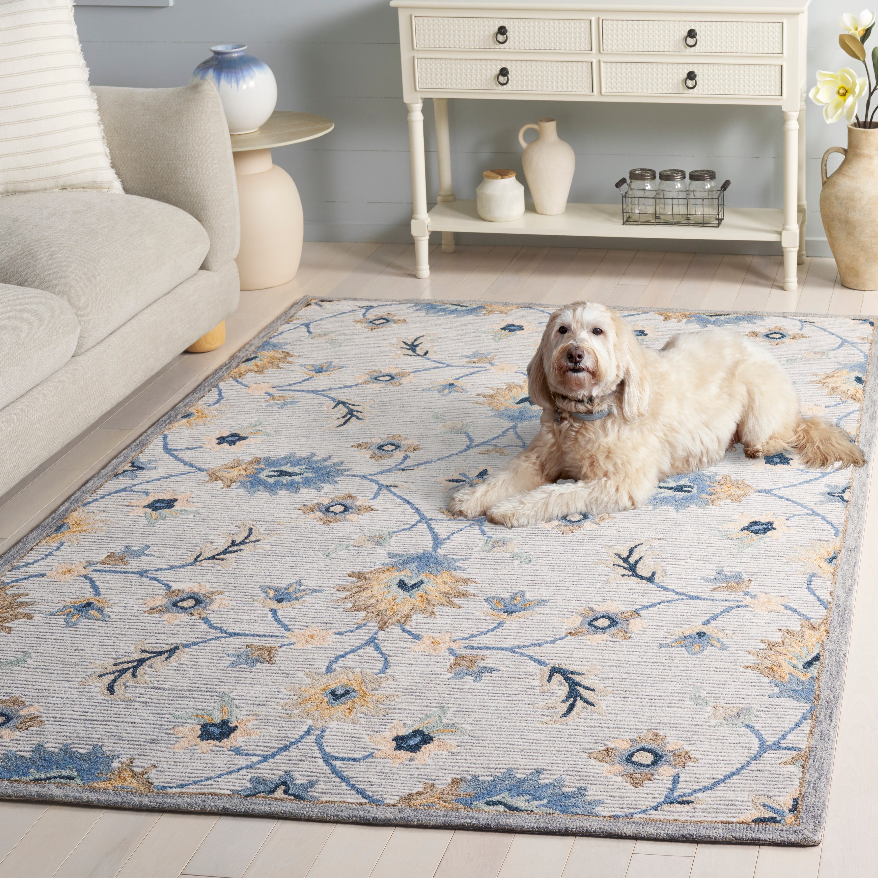 Transform your living space with a charming touch of elegance by introducing our area rug. In a soothing blend of Grey and Blue, this rug masterpiece features a delicate Floral style that effortlessly complements a variety of interiors. Hand Tufted with care in India, the rug combines 80 percent Wool with 20 percent Cotton, providing a soft yet durable foundation for any room.
