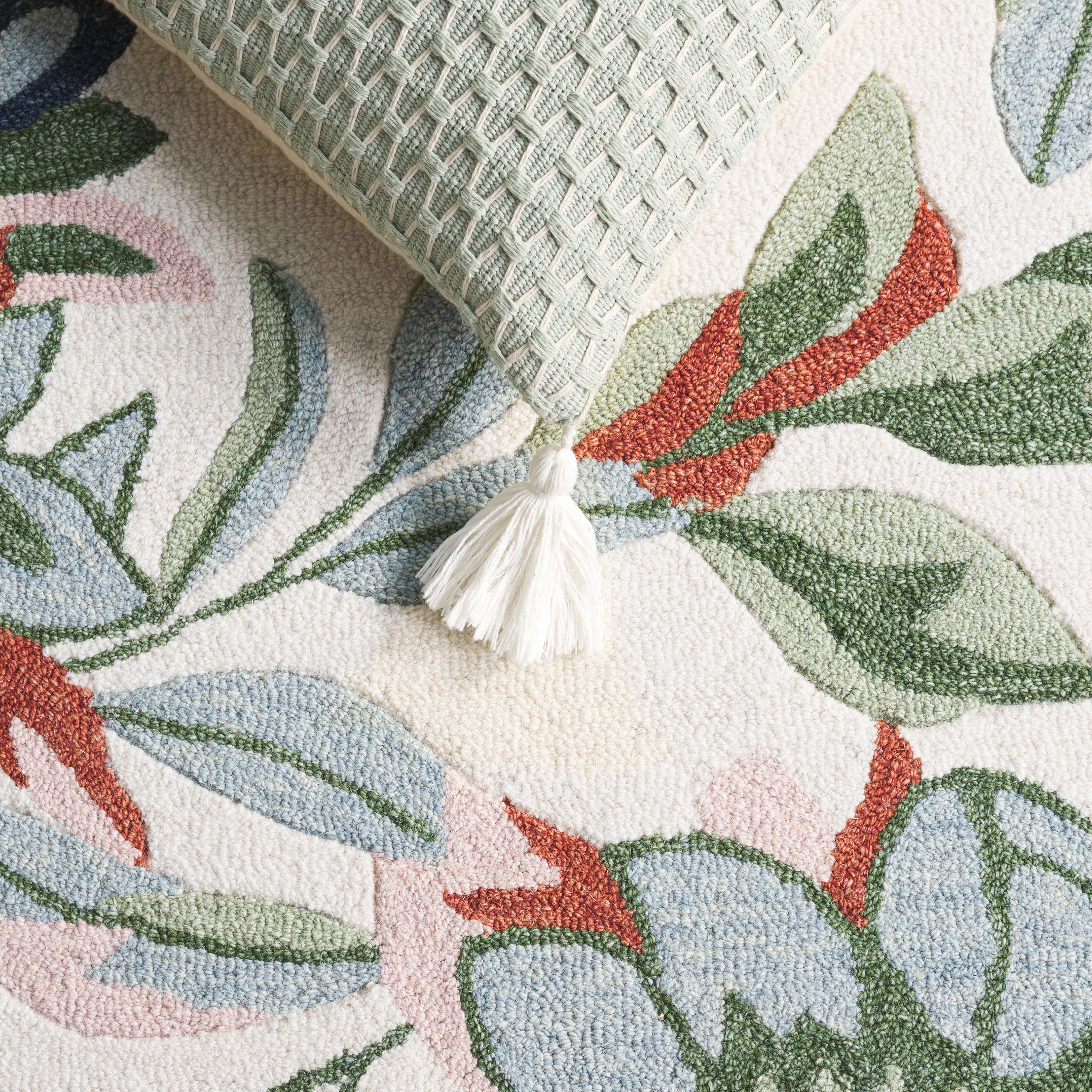 Transform your living space with our beautiful area rug. This rug features an elegant blend of Ivory and Blue hues, crafted to enhance any room with its charming presence. The hand-tufted weave captures the rich artistry of traditional craftsmanship, utilizing a blend of 80 percent Wool and 20 percent Cotton sourced from India.