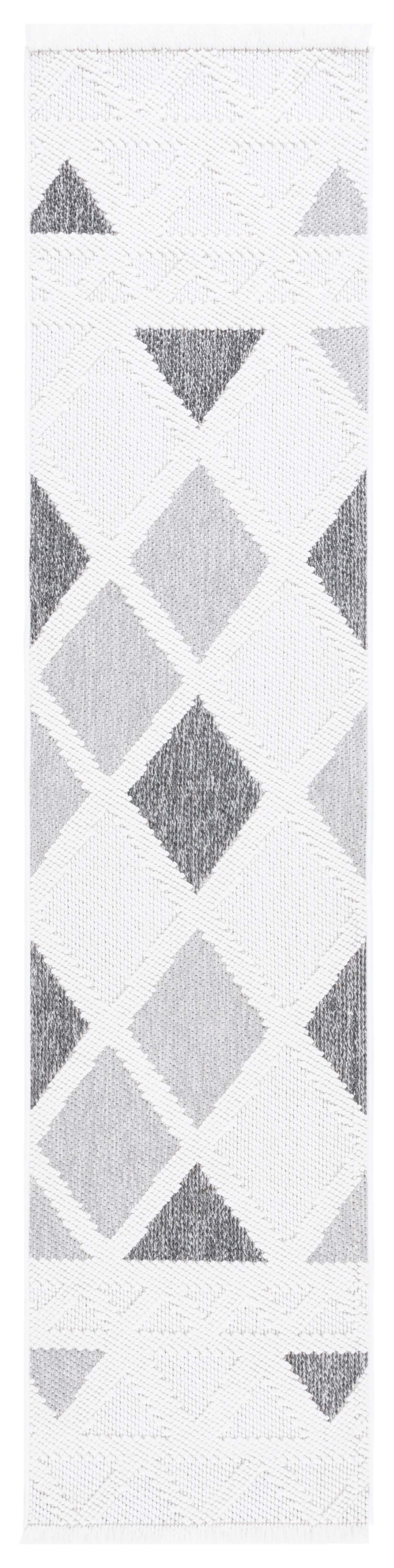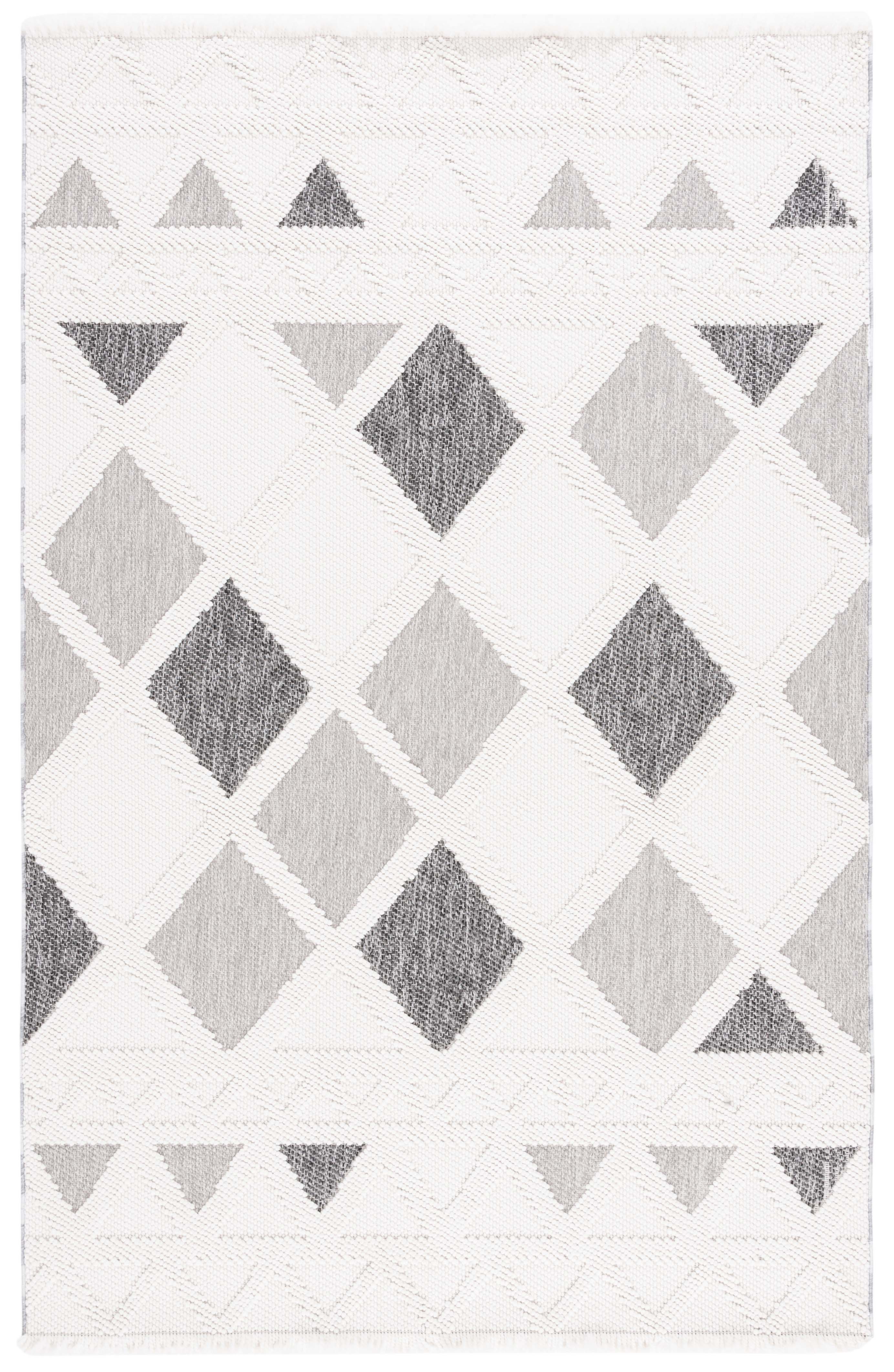 Featuring a dynamic geometric pattern, this piece presents an array of crisp ivory and deep grey hues arranged in a compelling design that draws the eye and anchors your room with its distinctive flair. The OEKO-TEX certification assures you that the rug is free from harmful substances, making it a safe choice for your home environment.