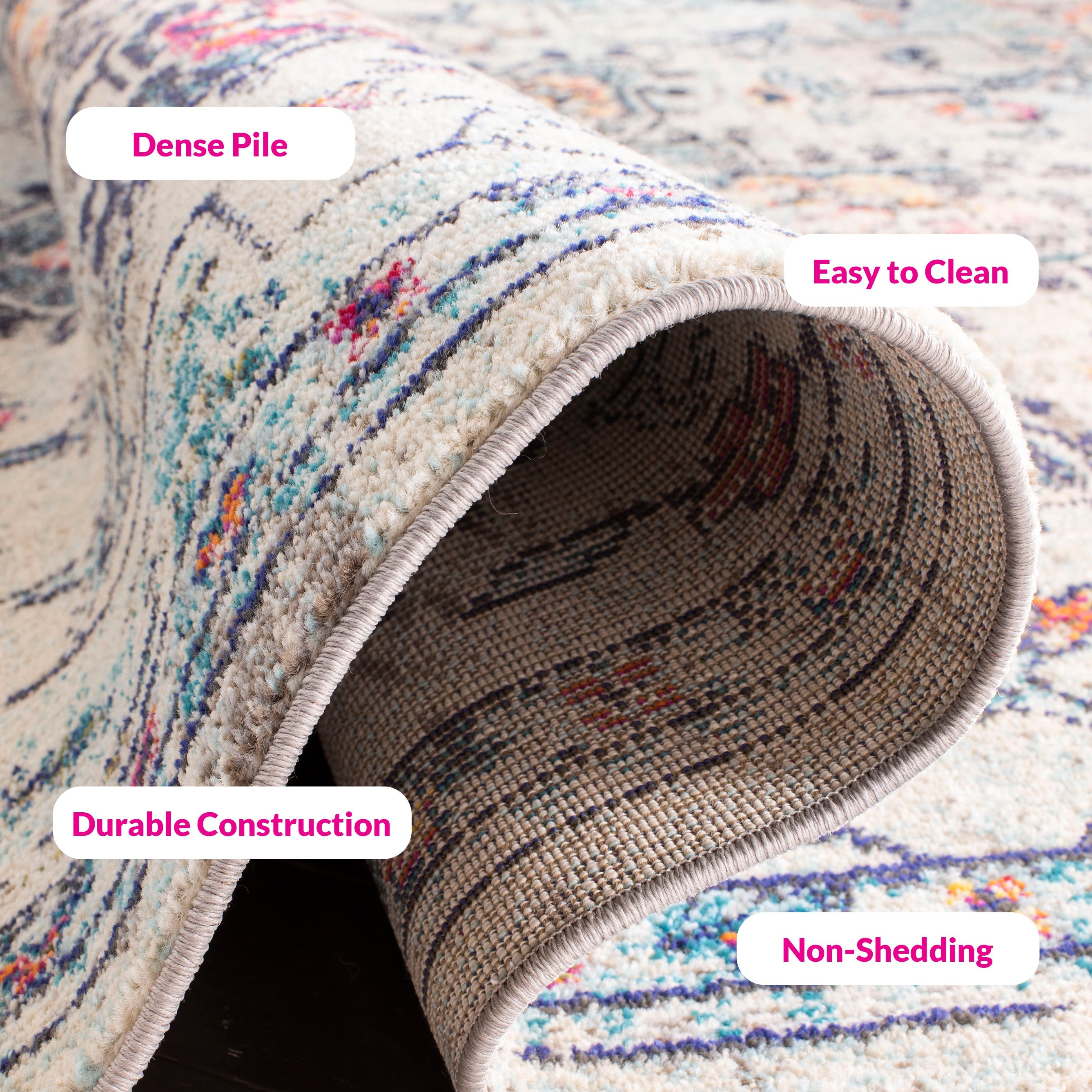 Featuring a composition of 57% Polypropylene, 30% Cotton, and 13% Polyester, this area rug is designed to withstand the hustle and bustle of everyday life while retaining its vivid hues and captivating pattern. The expert blend of materials not only offers a plush texture but also adds to the rug's long-lasting nature. Each fiber has been selected for its strength, softness, and ability to hold color, resulting in a product that's as durable as it is beautiful.
