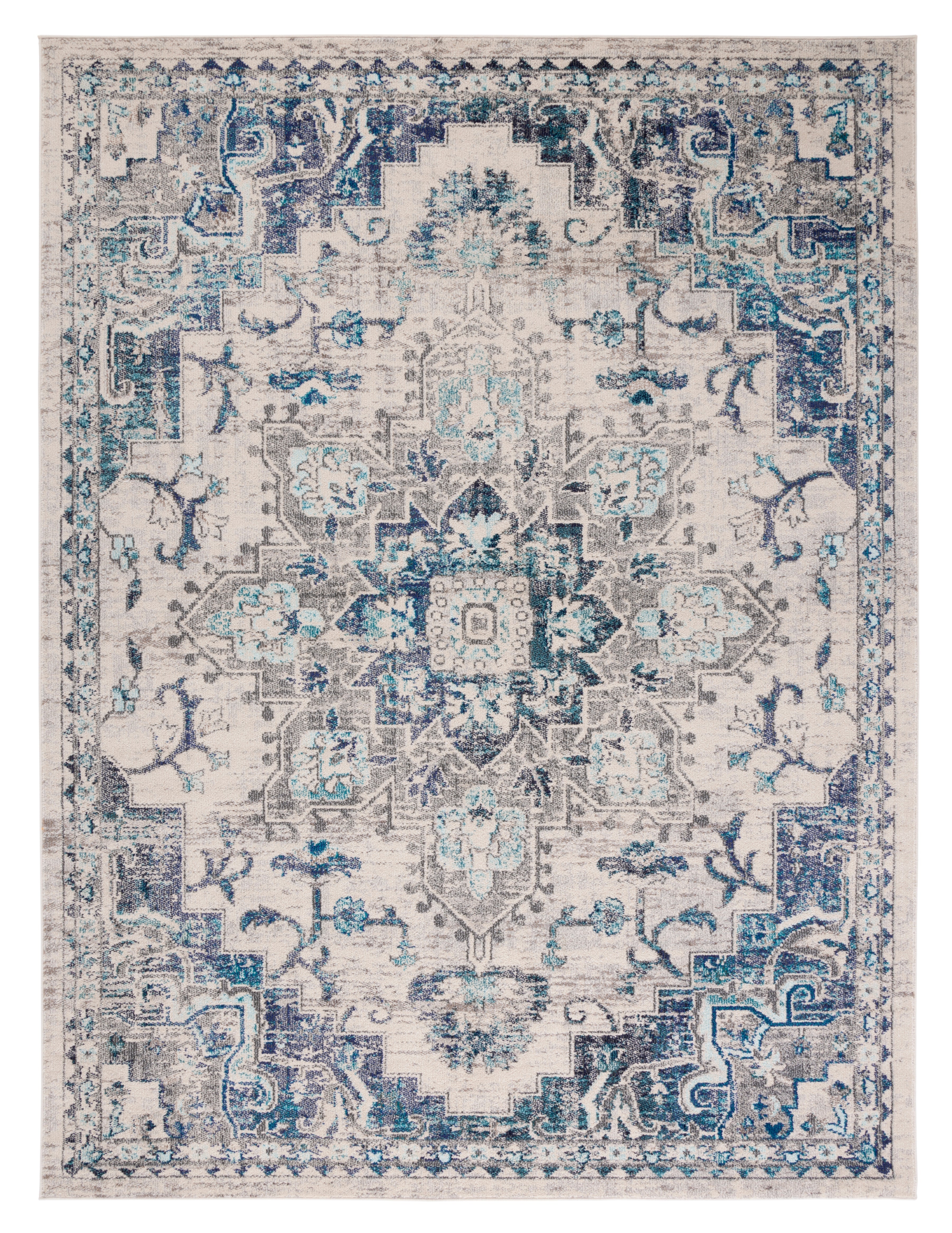 Transform your living space with a touch of exotic elegance using our captivating transitional-style area rug, now available in an expansive size. This masterpiece is meticulously crafted in Turkey, utilizing advanced power-loomed techniques that ensure exceptional durability and an intricate level of detail. The bold serene color palettes emerges beautifully from the rug's 3/8" pile height, creating a sumptuous underfoot feel that's both luxurious and slip-resistant.