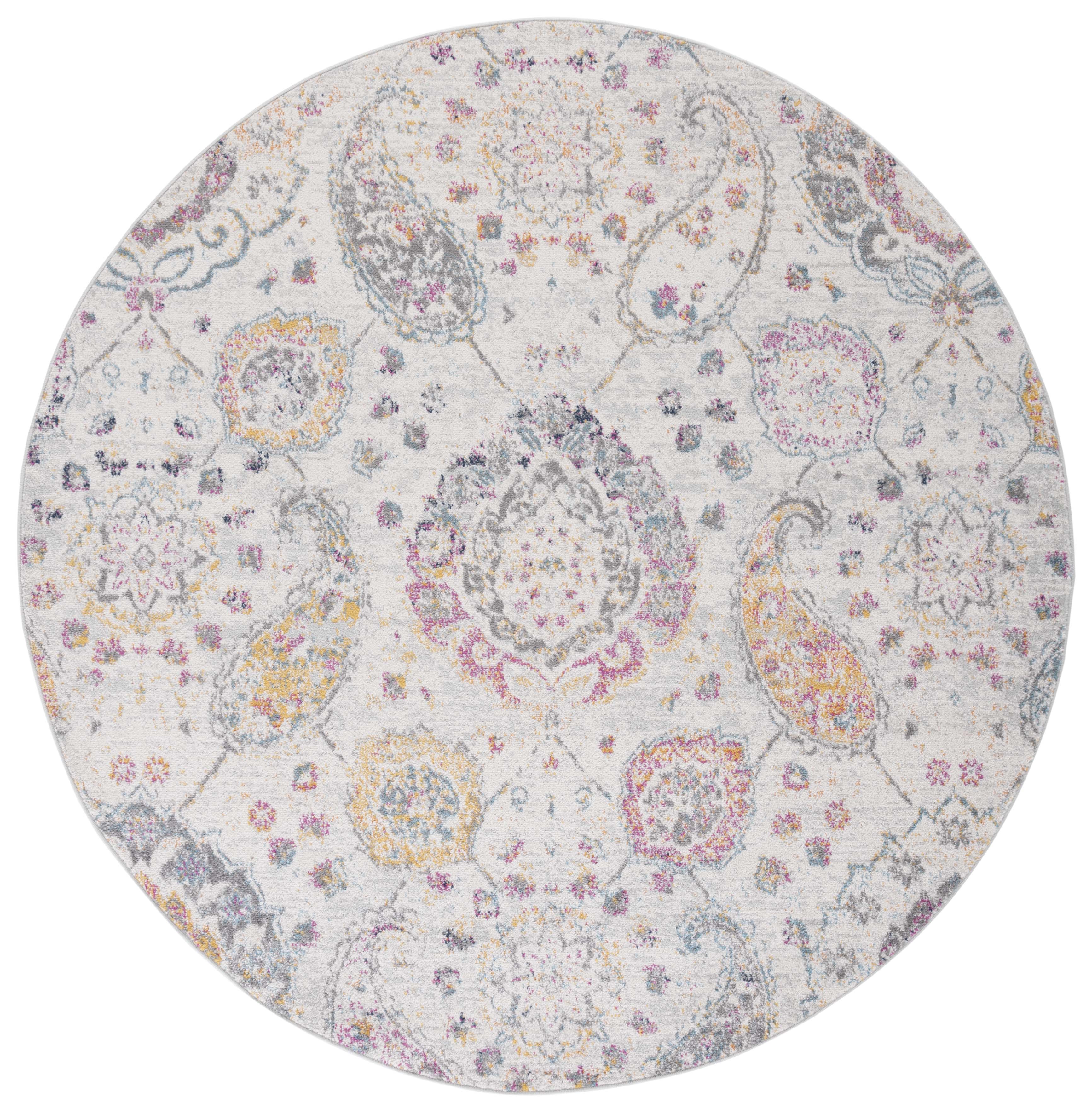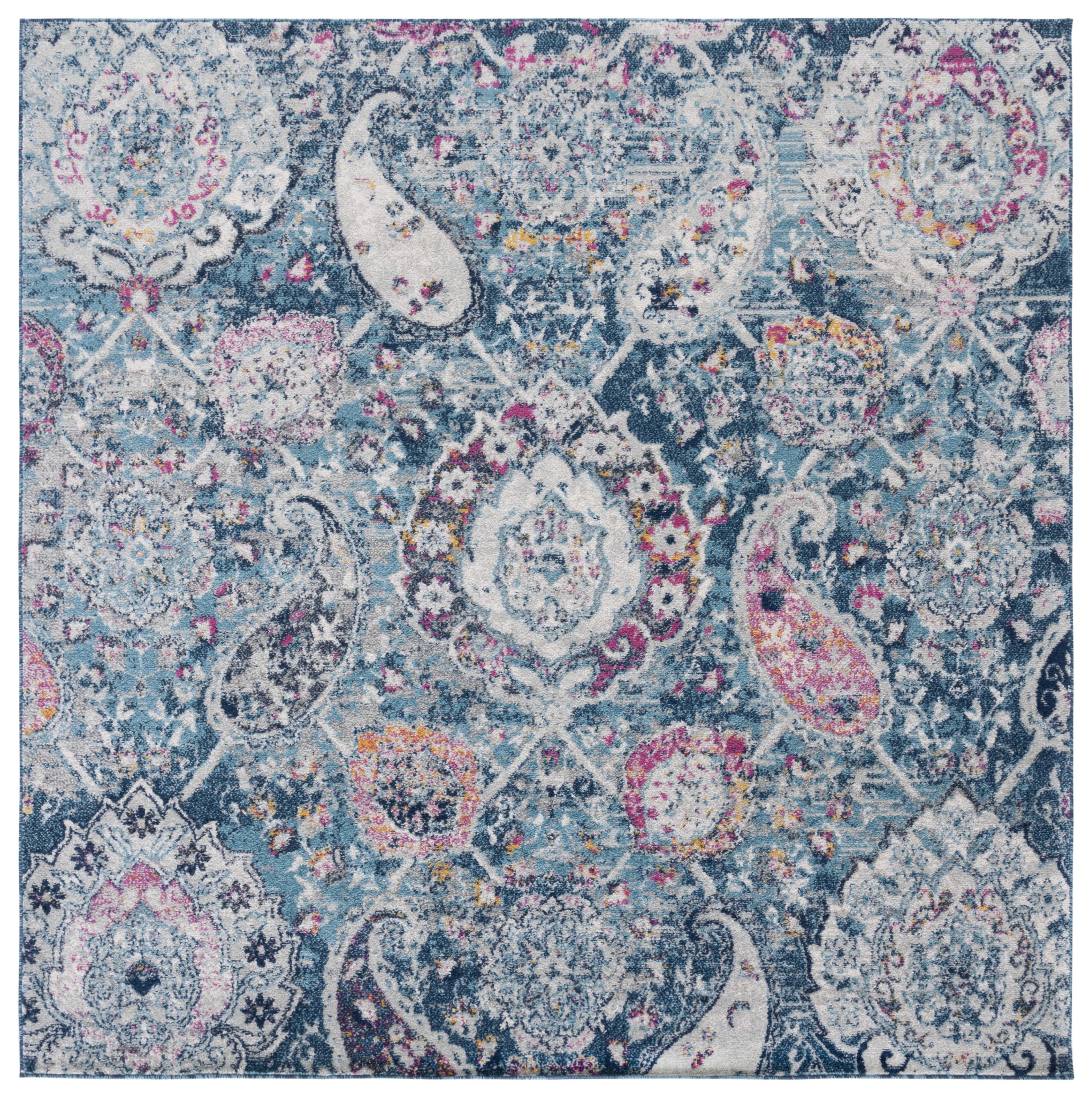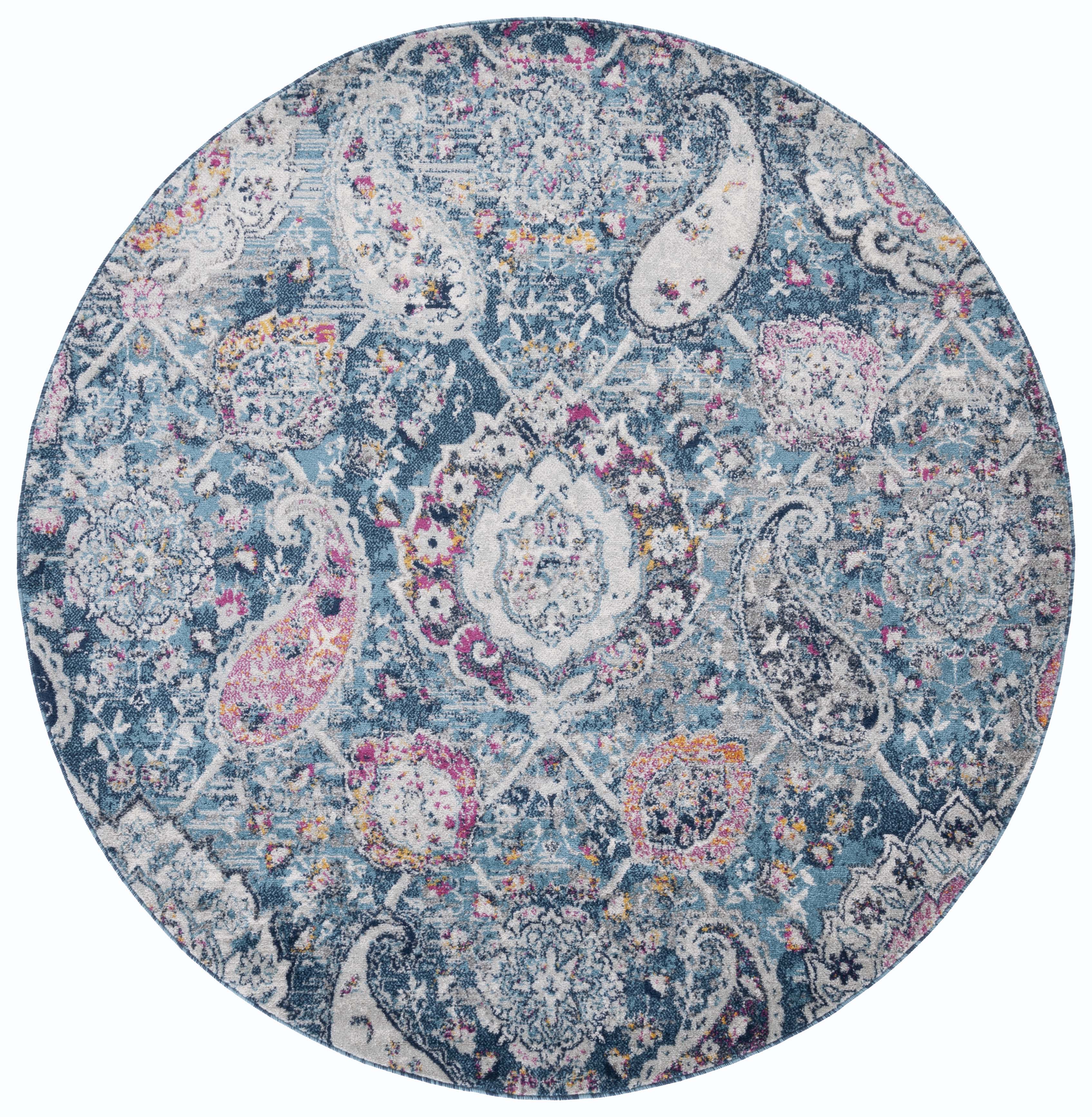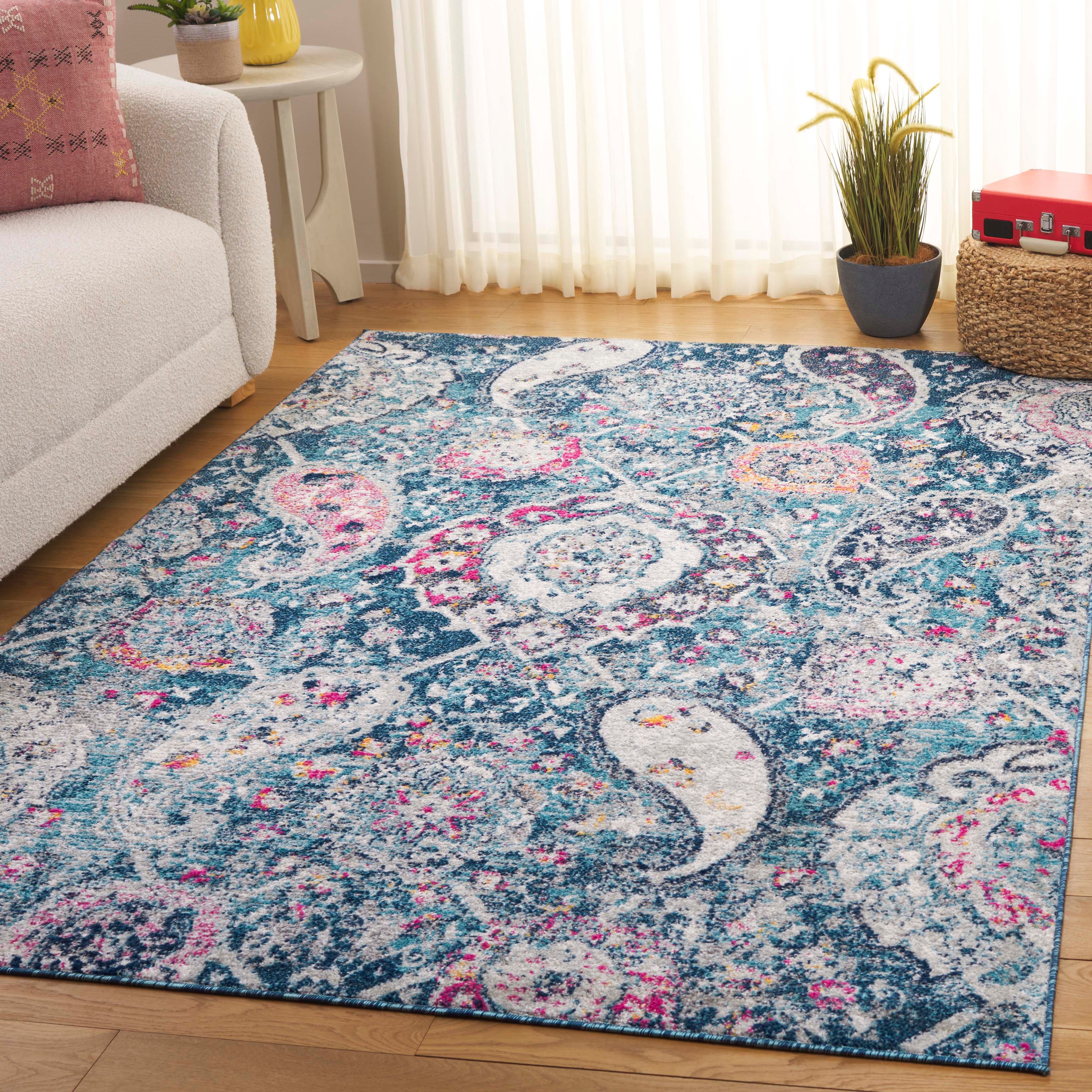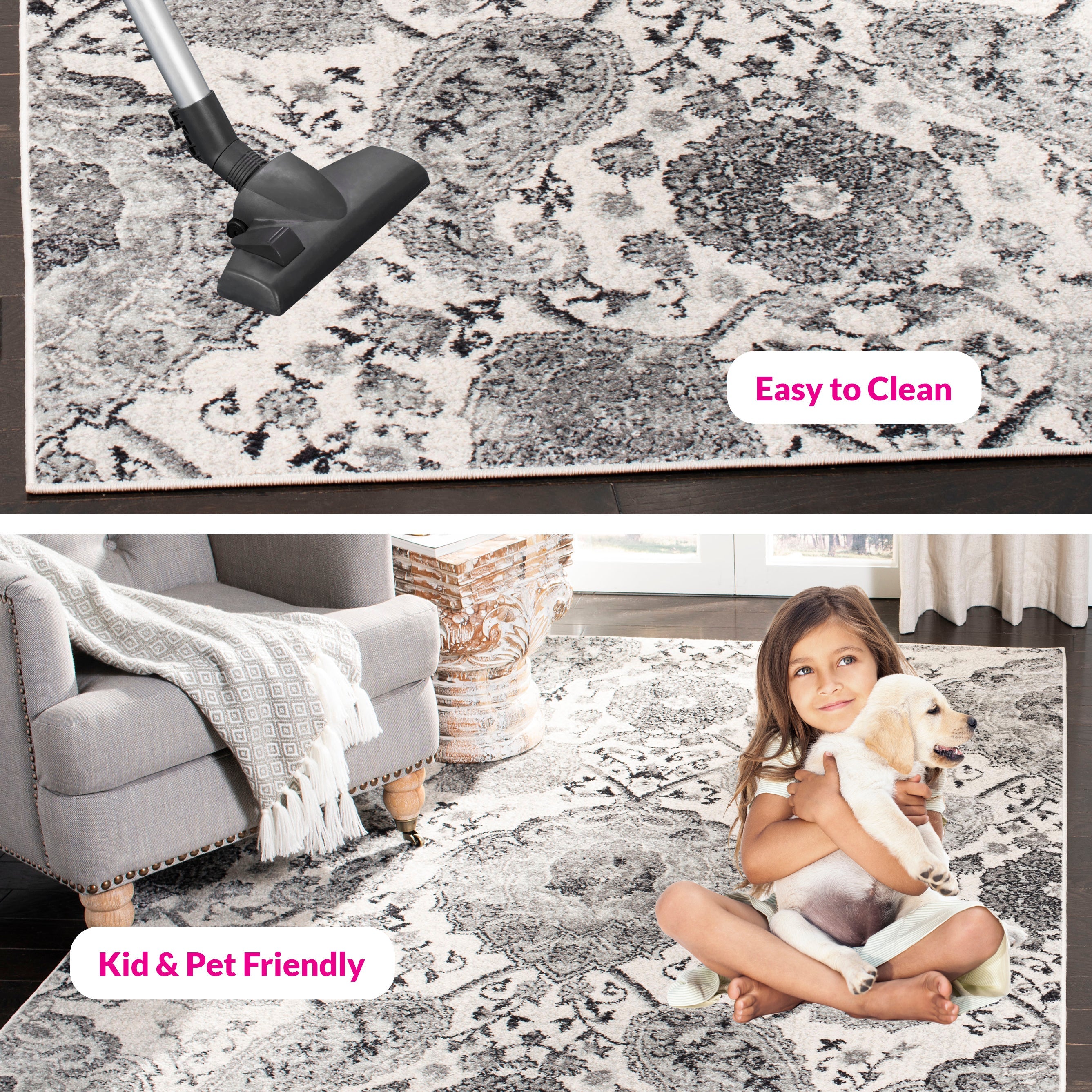 The rug features a captivating pattern, which showcases an intricate arrangement of floral and scrolled motifs, harmoniously blending classic charm with a modern color palette. Each design element has been meticulously woven using a resilient blend of materials - 65% polypropylene, 21% jute, 7% polyester, and 7% cotton - ensuring a product that's not only beautiful but also hard-wearing and easy to maintain.