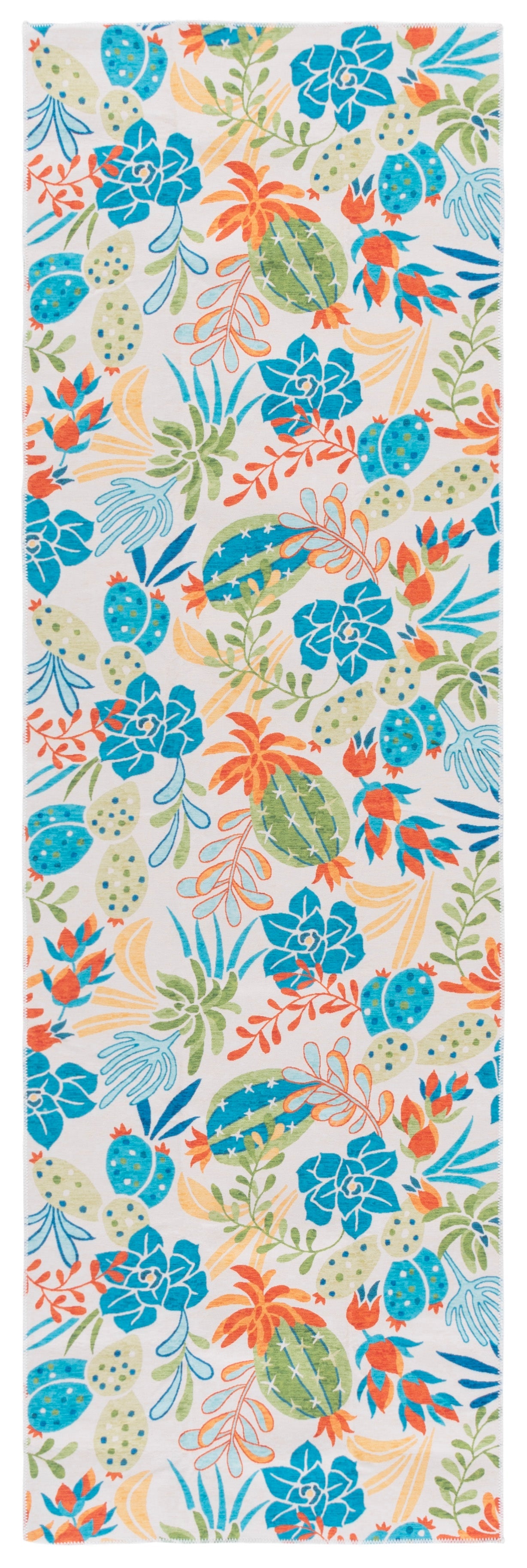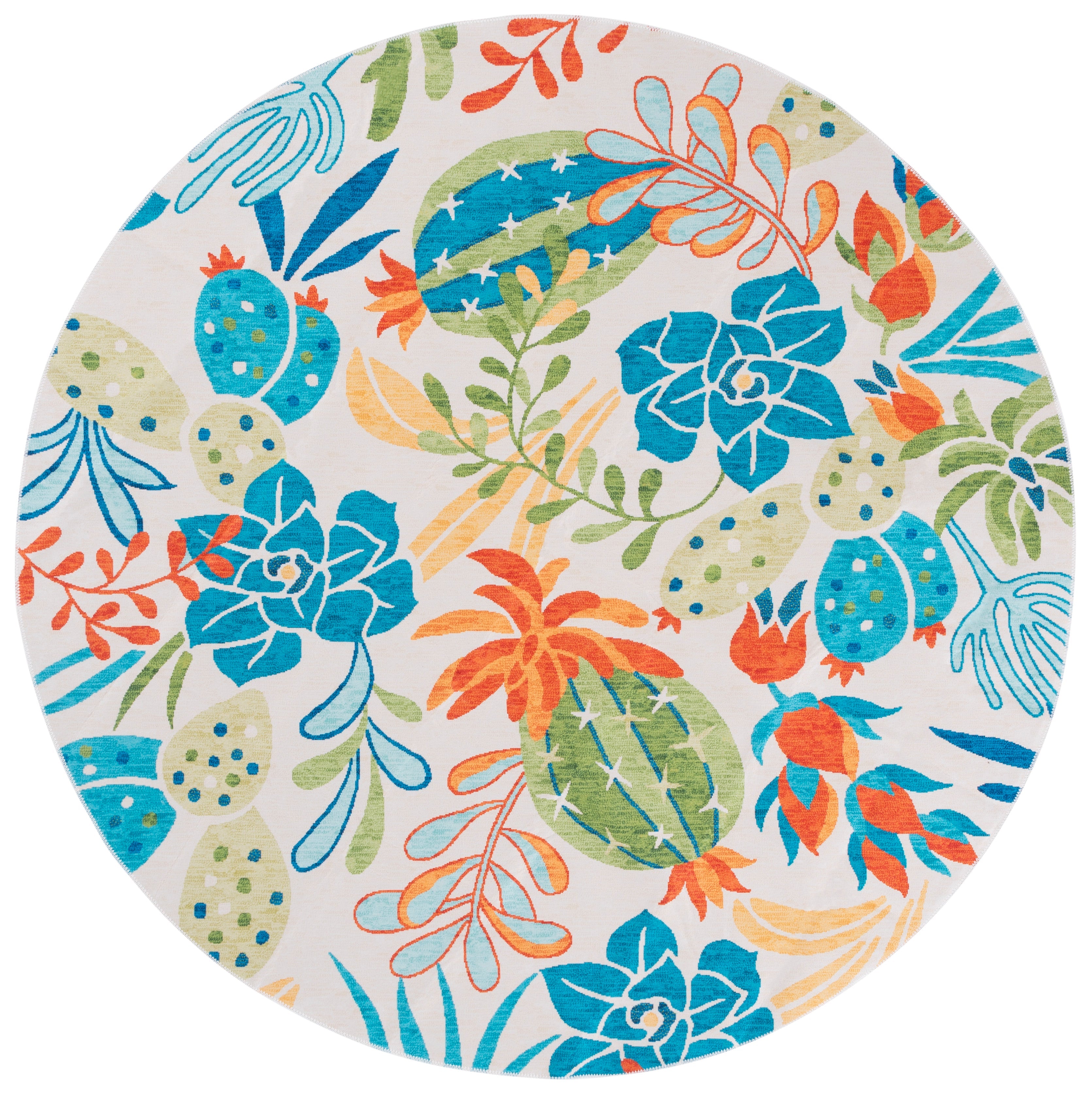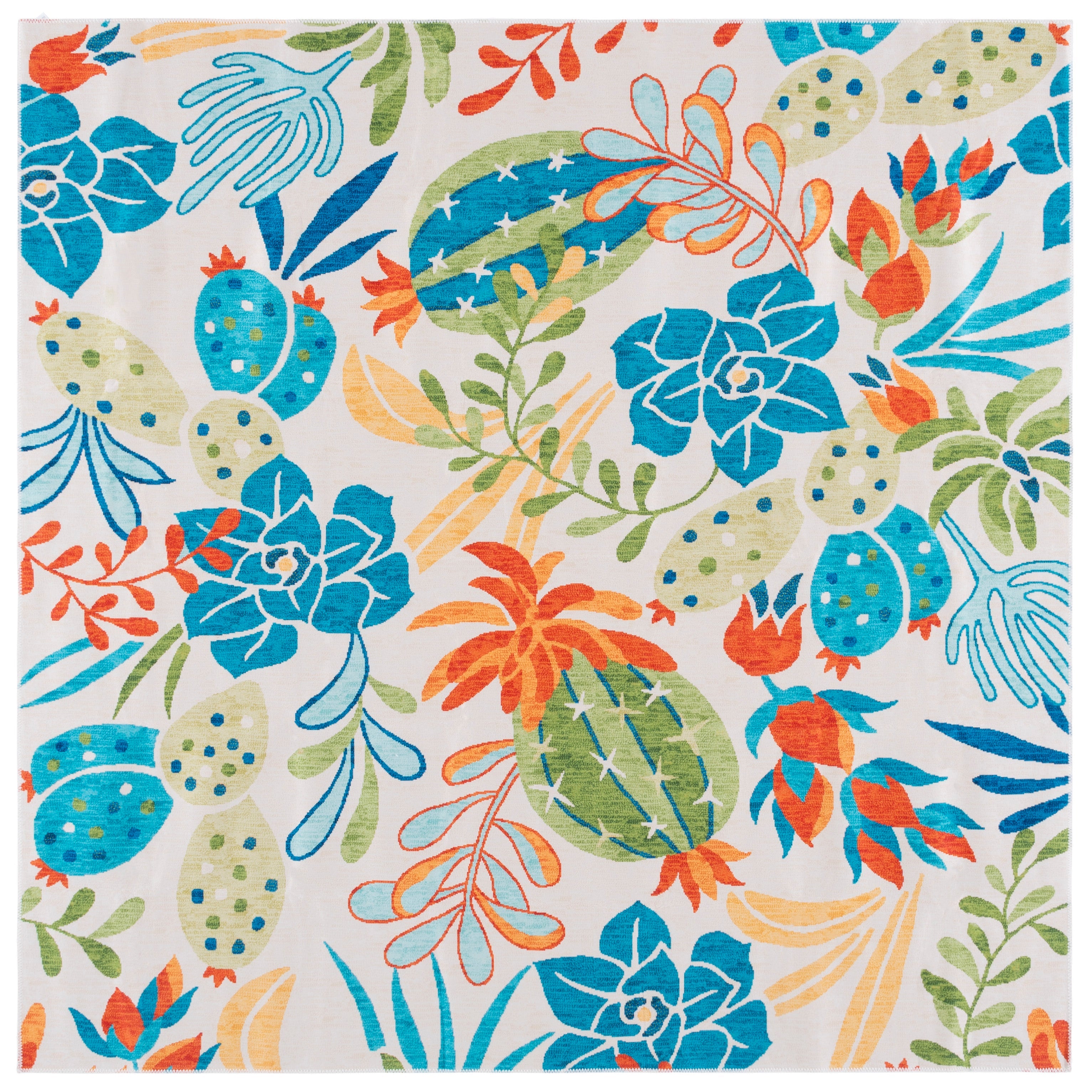 Its construction from durable polyester ensures a design that's both washable and slip-resistant, offering practicality alongside its decorative appeal. The delightful pattern portrays a whimsical botanical array, adding a dash of nature-inspired aesthetics to the rug's modern style.