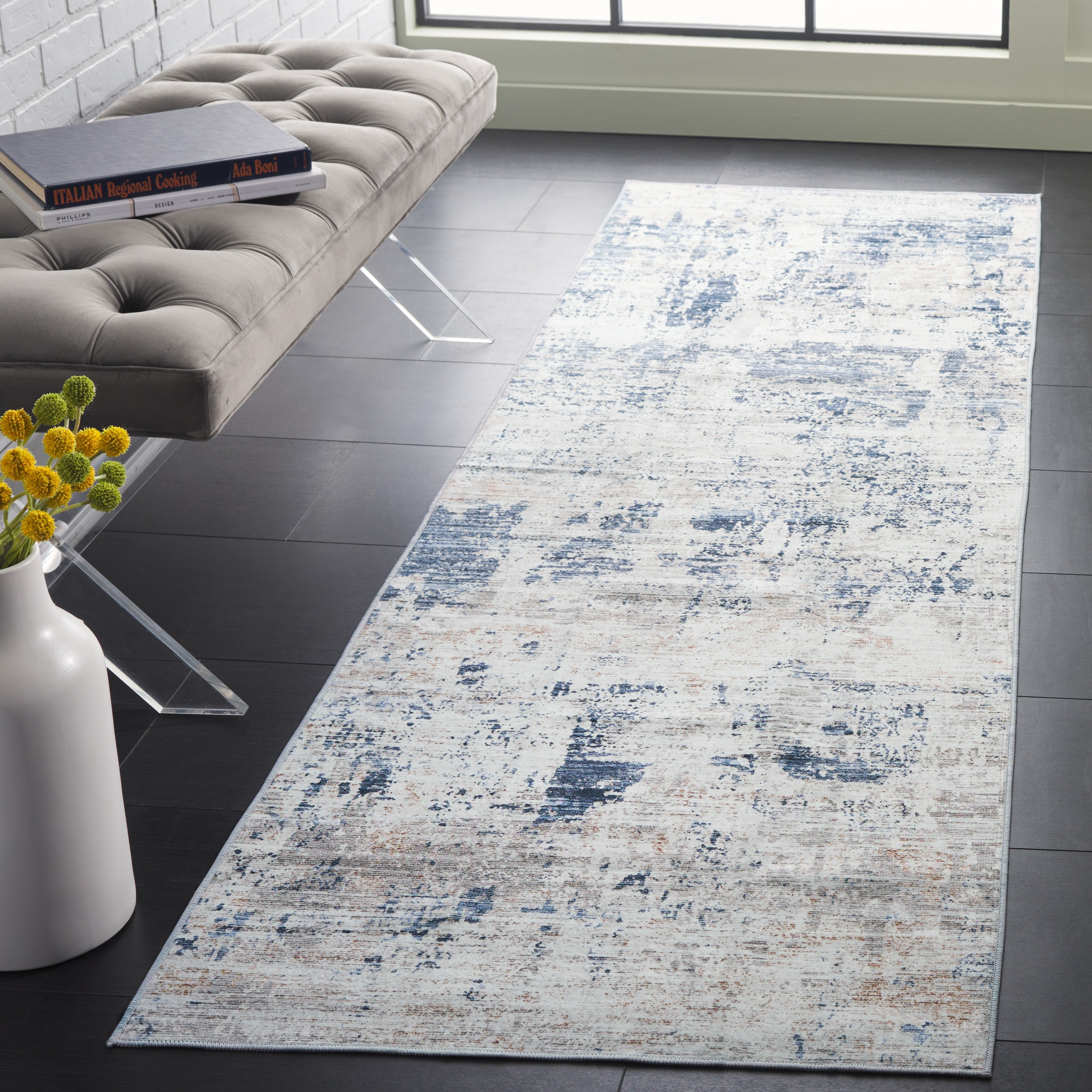Crafted with precision on a power loom, this durable rug is made from the finest quality polyester, offering a soft and silky texture underfoot. The beautiful beige and blue color palette creates a serene foundation for any room, allowing for versatile styling options.