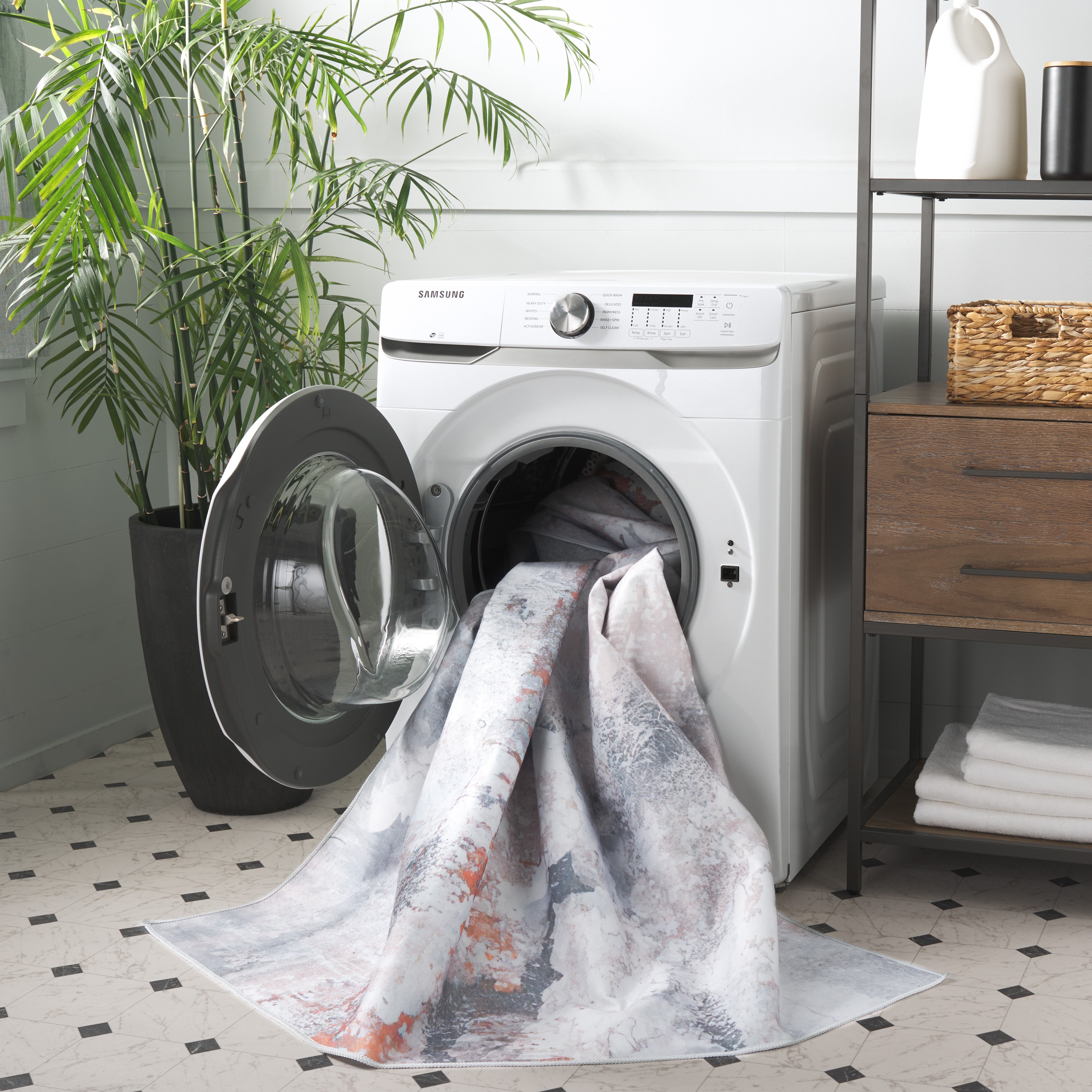 The aesthetic charm of this rug lies in its abstract pattern, which plays with shades of ivory and rust to create a visually captivating design that is both bold and soothing. This contemporary art piece for your floors is not only a statement of style but also offers functional benefits? it is washable and slip-resistant, making it as sensible as it is stylish.