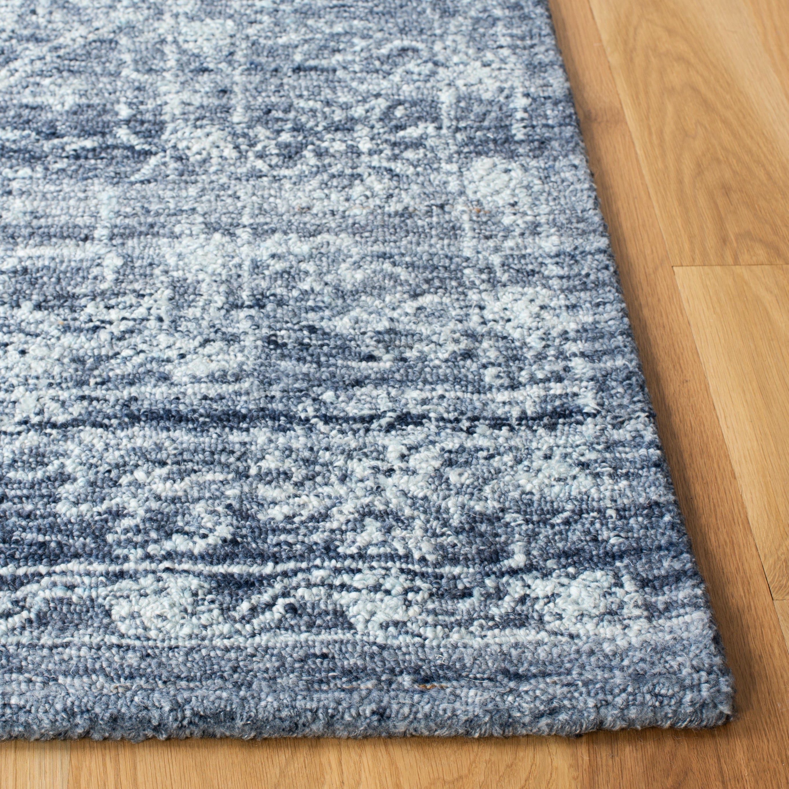 The environmentally conscious will appreciate the sustainable construction; made of 90% recycled polyester and 10% wool, this rug marries eco-friendliness with durability. The careful hand-tufted technique ensures each pass of the weaver's hand imbues the rug with a unique character, highlighting subtle variations in the deep navy hues.