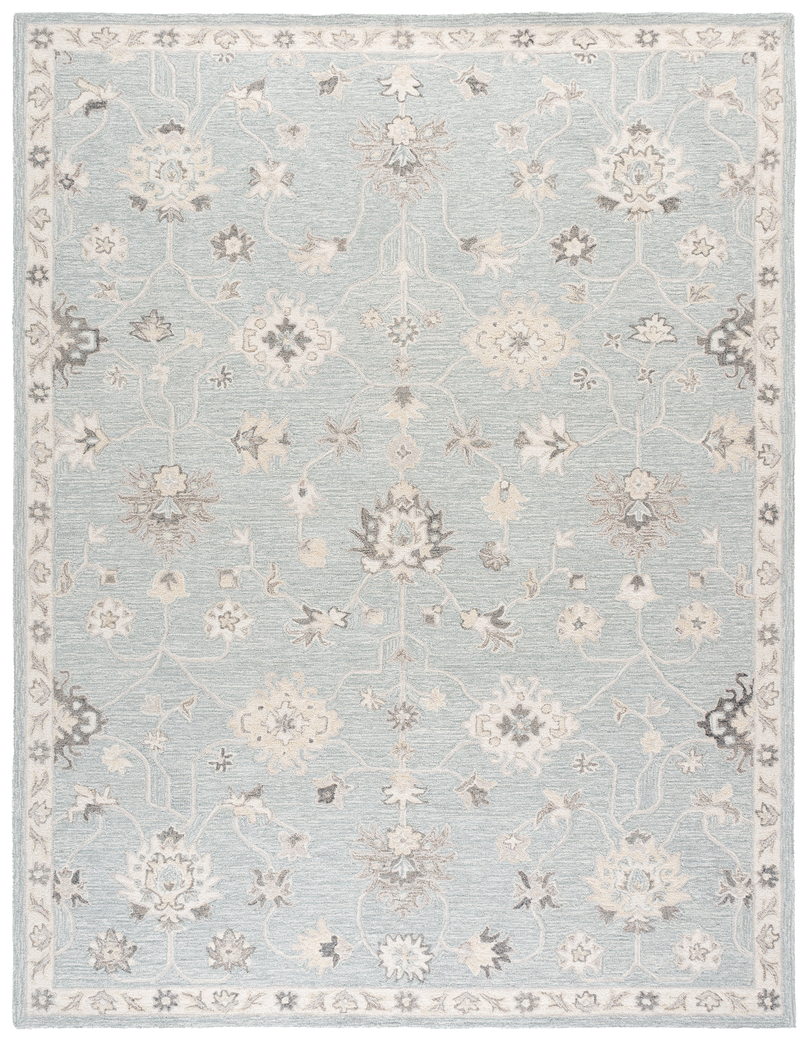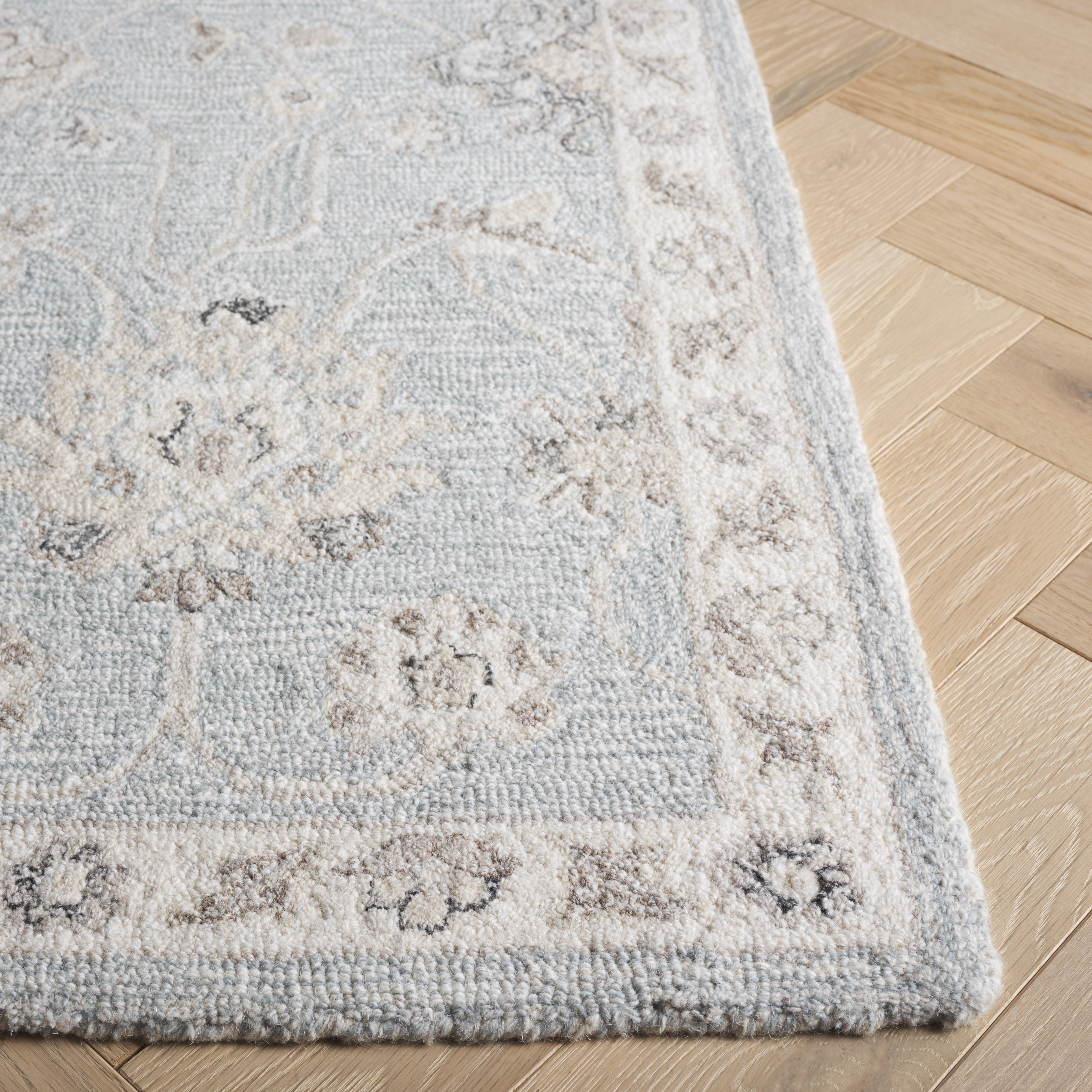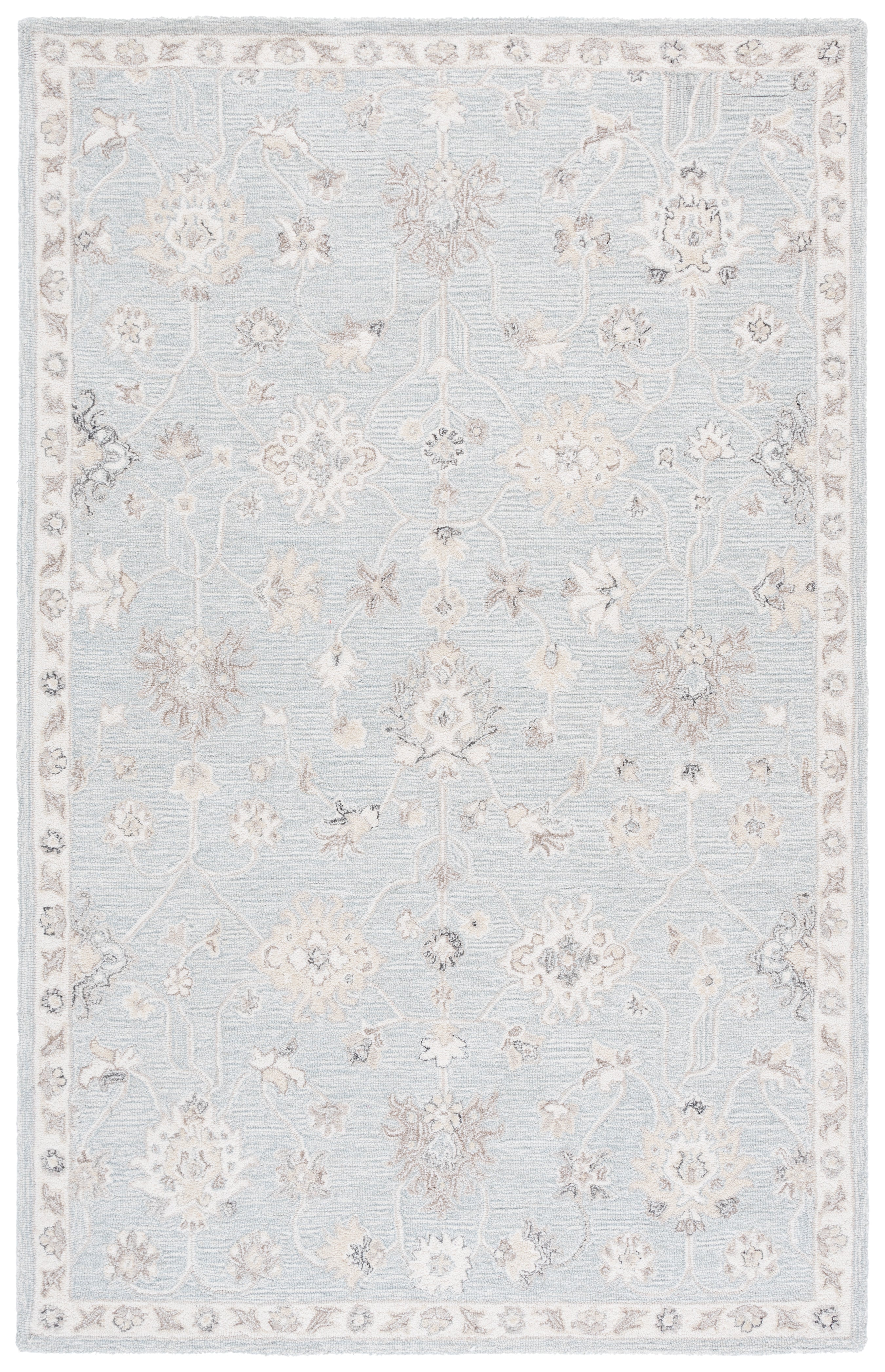 Introducing the perfect addition to your living space, our area rug in a soothing Light Blue and Ivory color palette. Crafted with a Hand Tufted weave technique, this rug combines 85 percent Wool and 15 percent Cotton to create a delightful texture that is sure to enhance your home's ambiance. The shape, with a height of 3/8 inches, fits seamlessly into any room while providing a soft surface underfoot. Made in India with care, this Transitional style rug offers a clean, pattern-free design that adds a touch of elegance without overwhelming your decor. Embrace the serenity and subtle sophistication that this rug brings to your home, creating a cozy and inviting atmosphere. Perfect for living rooms, bedrooms, or any space that needs a touch of warmth and style.