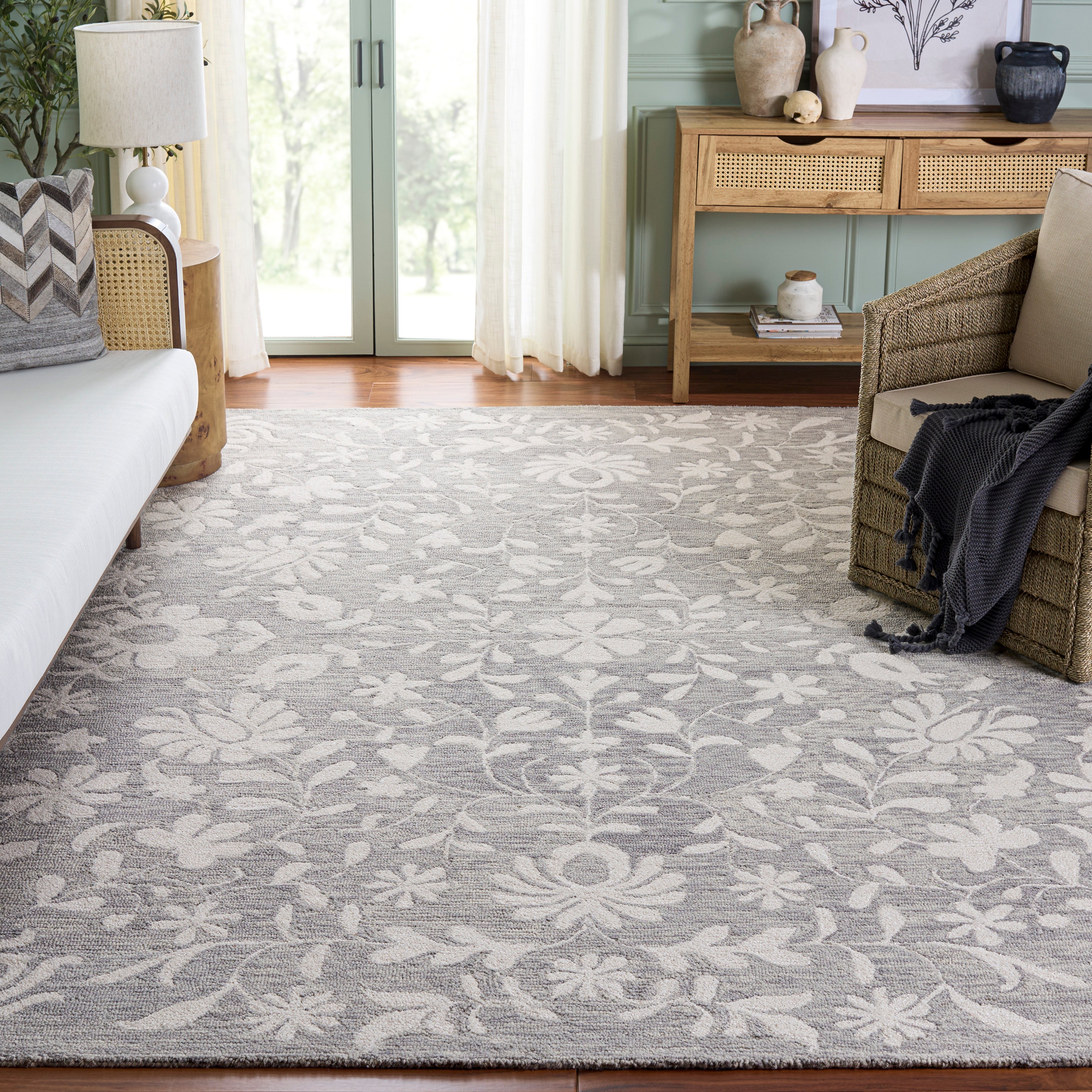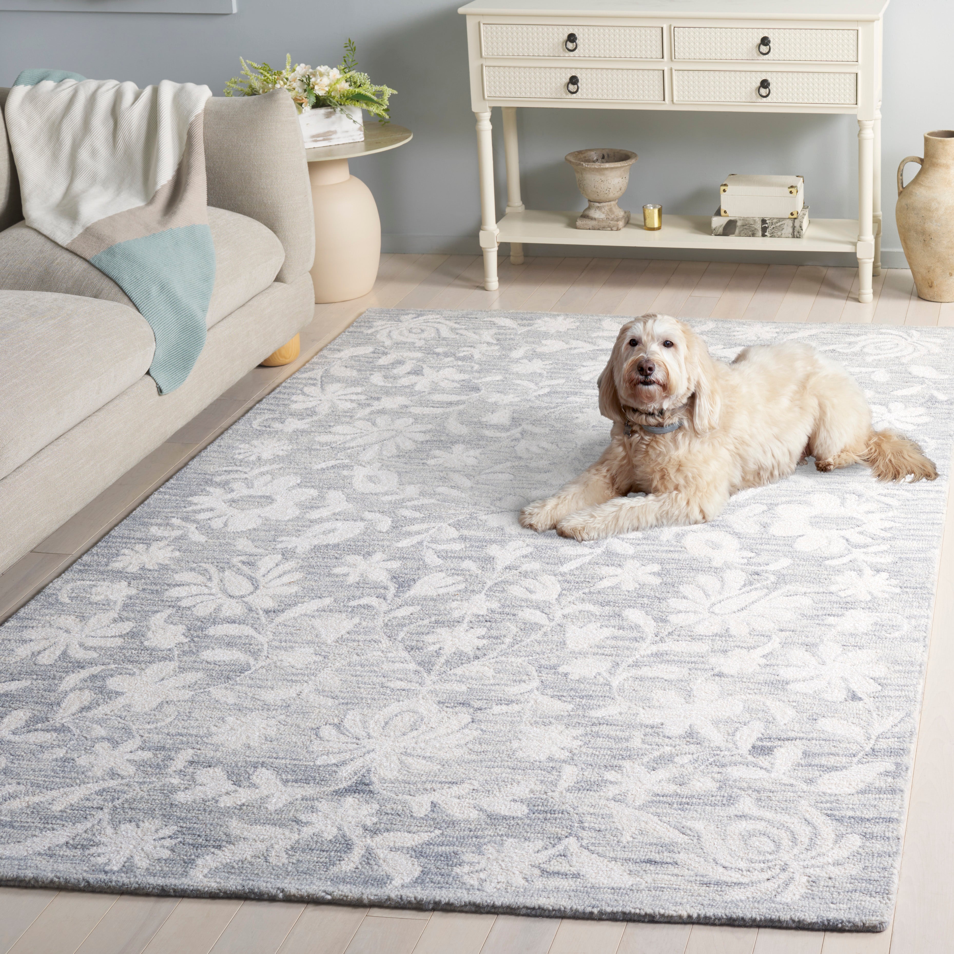 Elevate your living space with our elegant area rug, featuring a sophisticated Grey and Ivory palette. With a height of 3/8 inch, this rug showcases the art of hand-tufted craftsmanship. Composed of 55 percent Wool, 35 percent Chenille, and 10 percent Cotton, its exquisite weave ensures a blend of comfort and style that seamlessly fits any decor.
