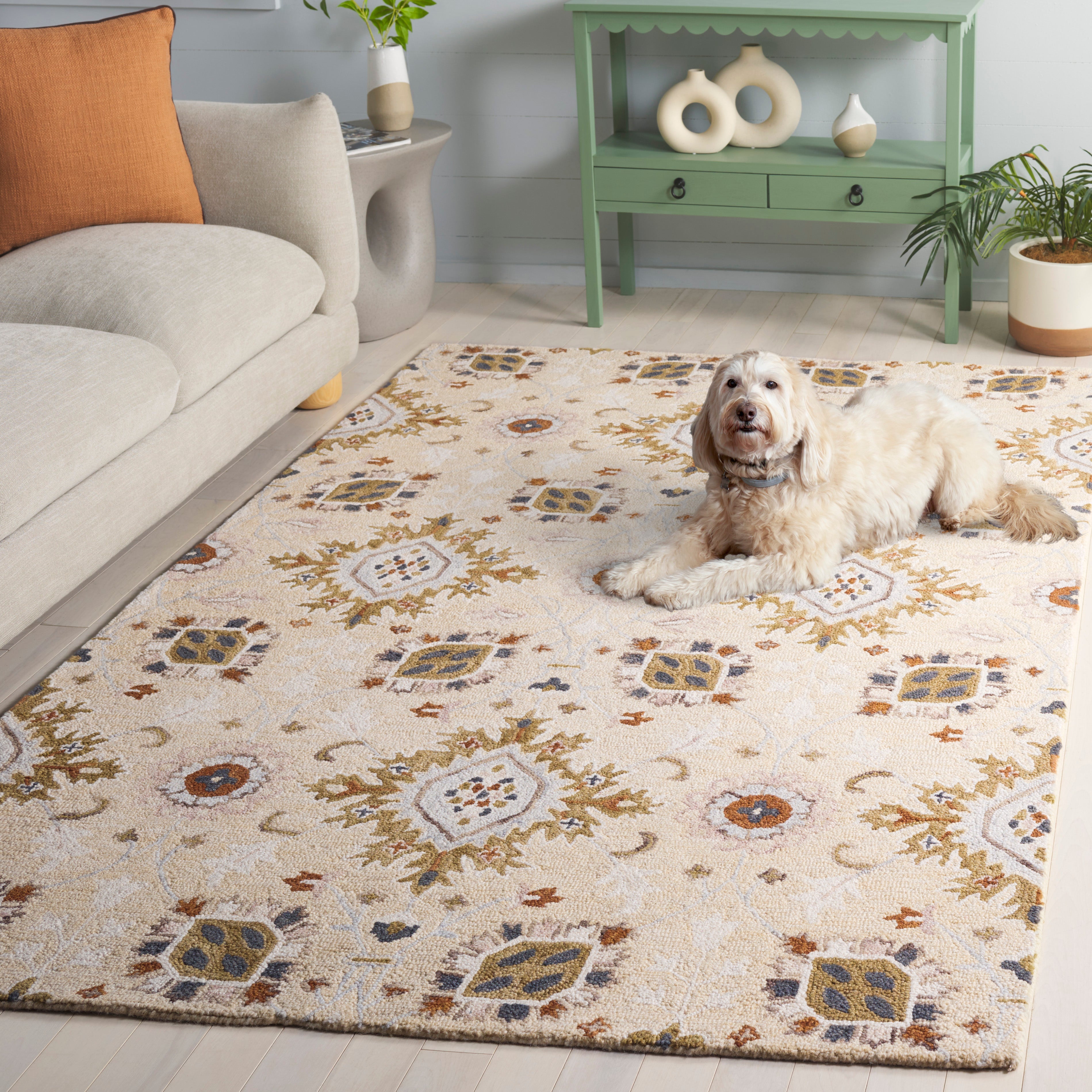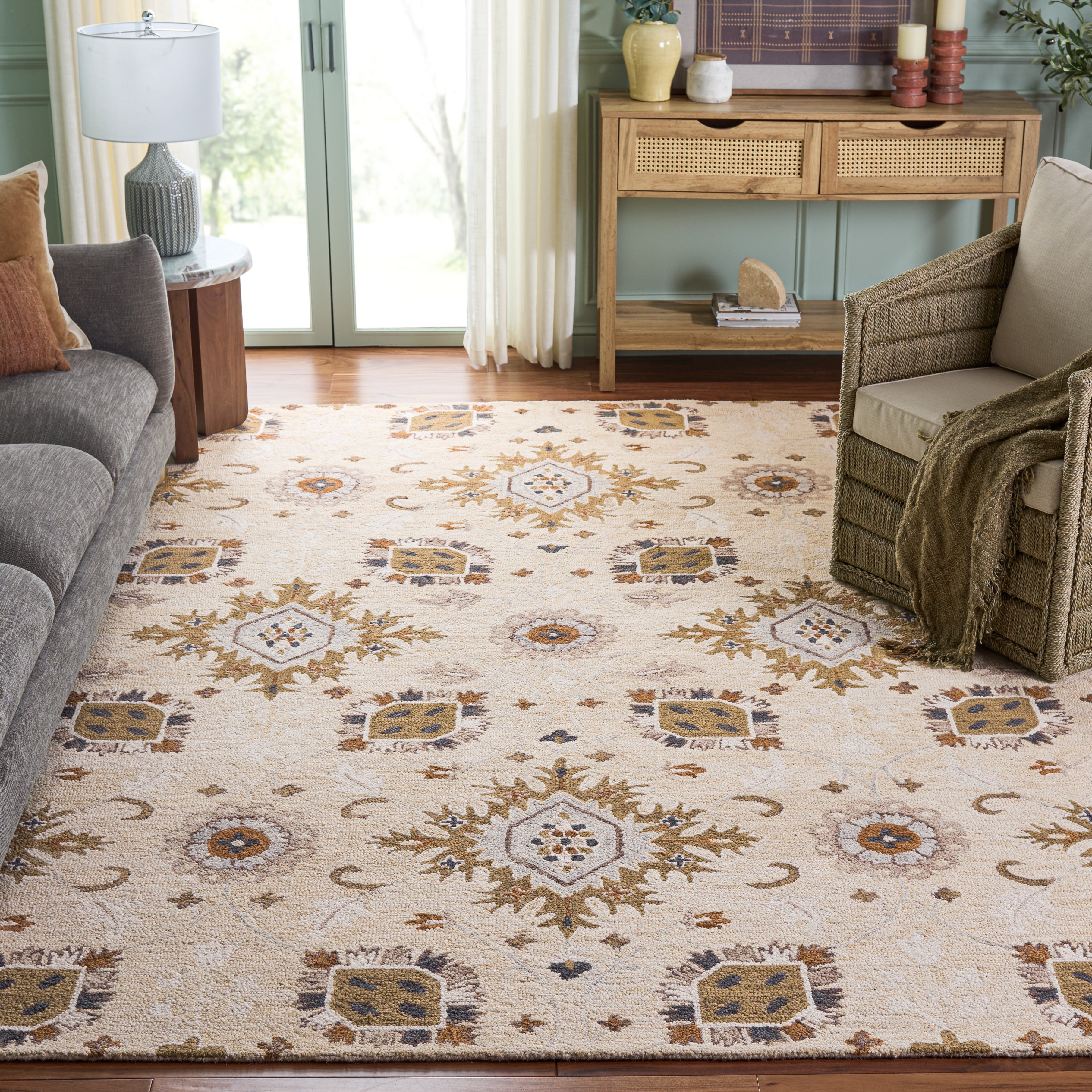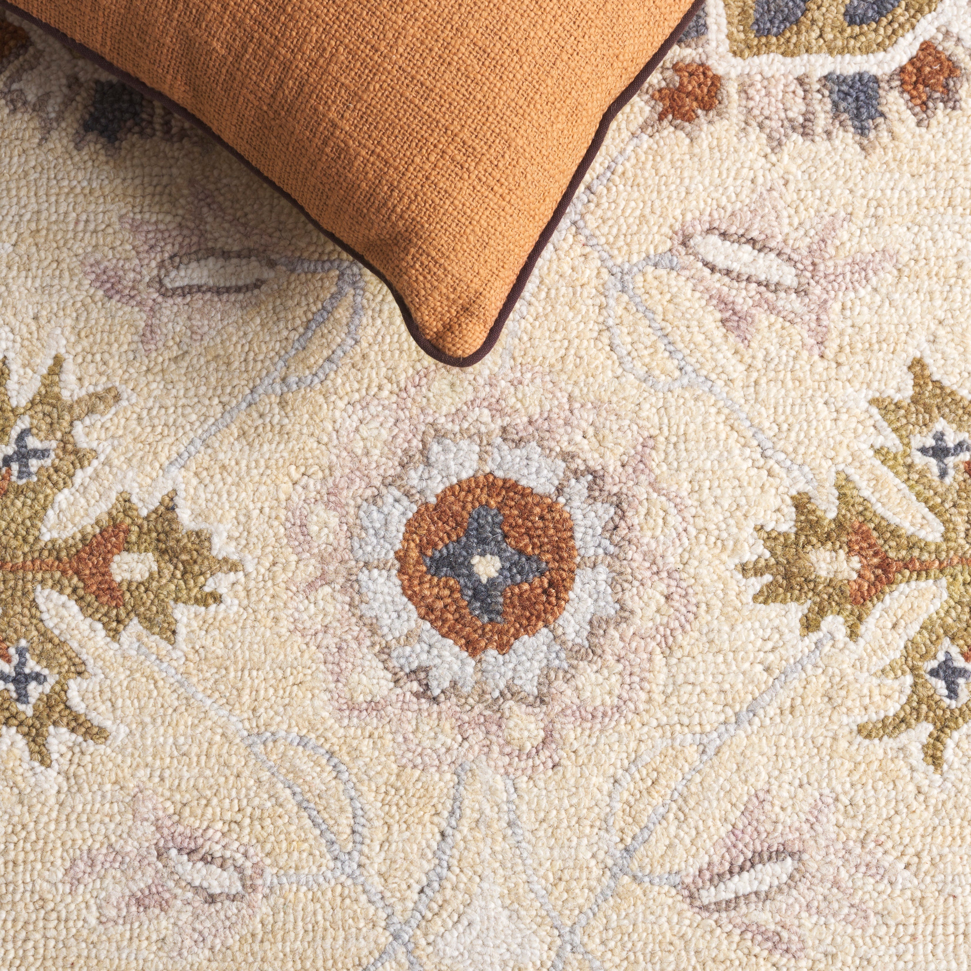 Transform your living space with this elegant area rug. Featuring a soothing blend of beige and green, its transitional style effortlessly complements diverse interiors. The shape and 3/8" height make this rug a versatile addition to any room.