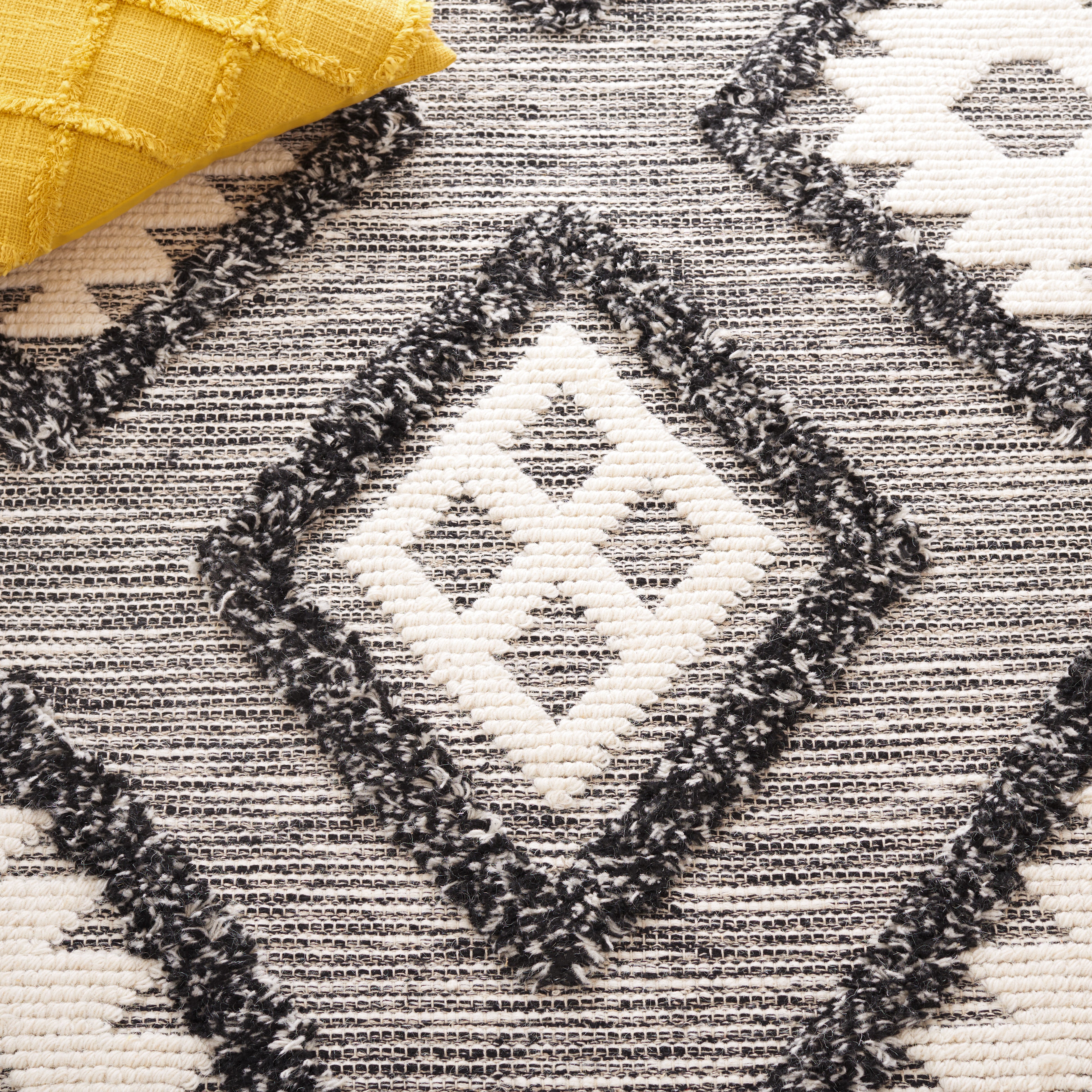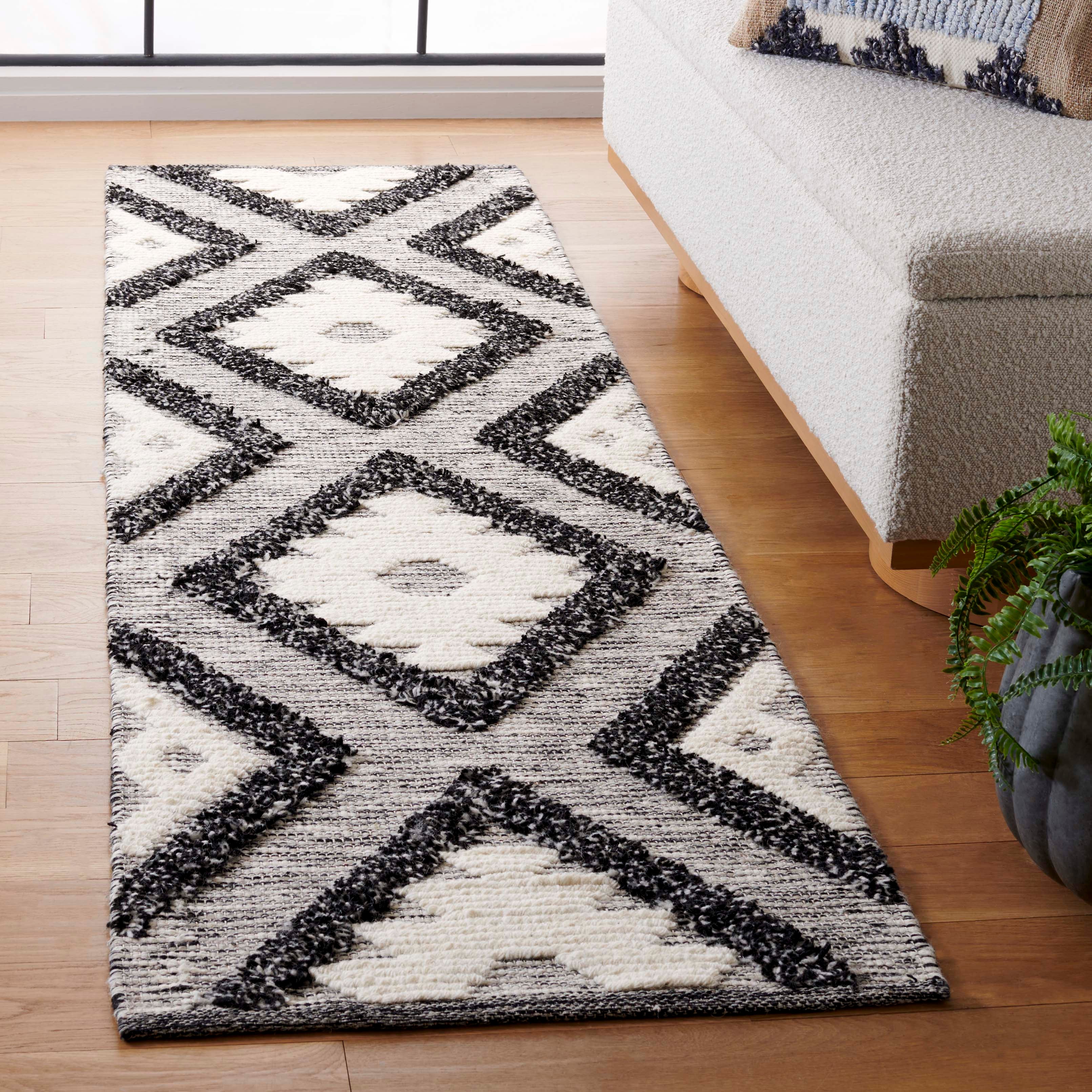 Elevate your space with the timeless sophistication of our hand-woven wool runner rug, beautifully crafted in India. Measuring 2'-3" X 8' and boasting a plush 5/8" pile height, this exquisite runner is a perfect blend of comfort and style. The striking black and ivory color palette exudes elegance in a Bohemian-inspired design, featuring intricate diamond motifs that will complement any contemporary or traditional decor.