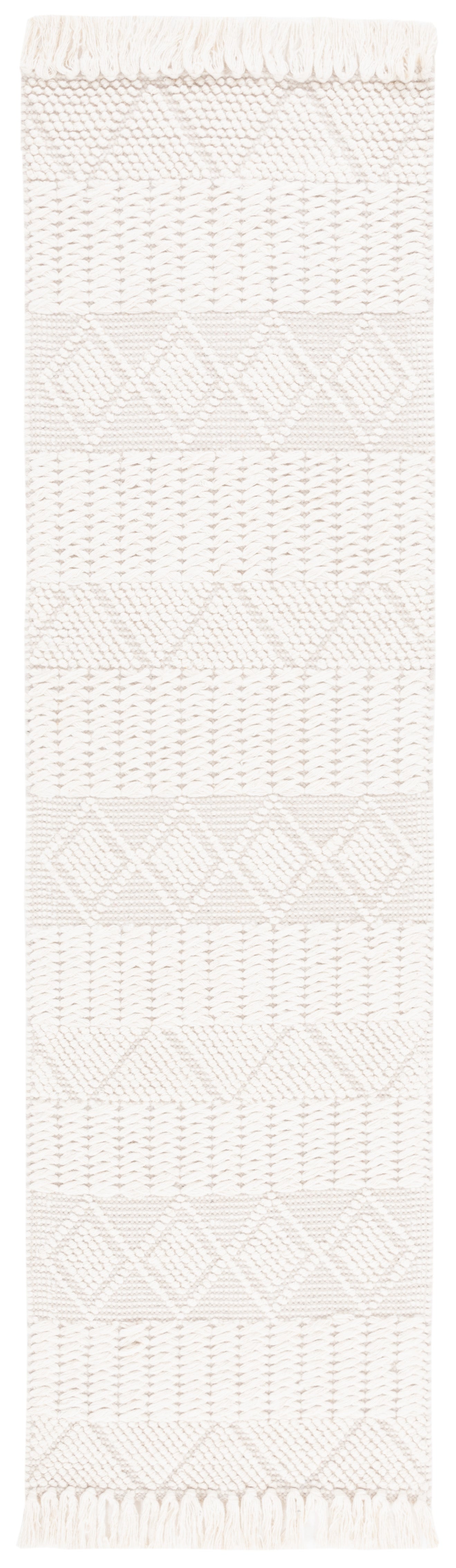 Transform your space with this stunning runner rug, measuring 2 feet 3 inches by 8 feet. The soothing ivory and grey tones blend seamlessly, adding a touch of elegance to your home. Hand woven from soft wool and crafted in India, this bohemian style rug promises to bring warmth and character to any room. With its minimalist pattern and a convenient 1/4 inch height, this runner is perfect for hallways or entryways, offering style without overwhelming your space. Immerse yourself in the distinctive charm of handcrafted decor and let this unique piece enrich your interior.
