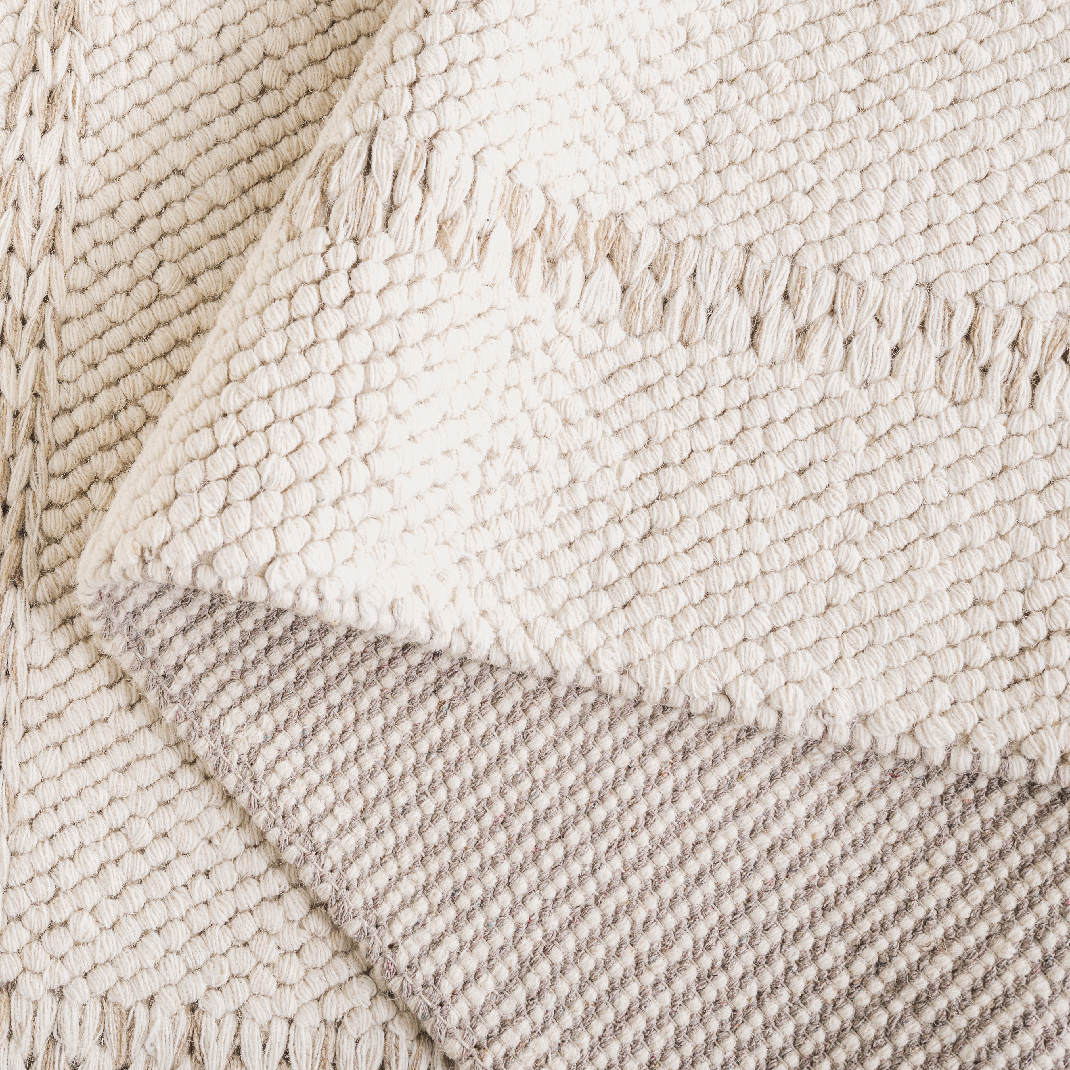 Skillfully crafted in India, this runner is constructed with a pure wool pile, ensuring durability and a soft, sumptuous texture that invites you to walk barefoot. The ivory color palette exudes sophistication and versatility, seamlessly complementing any interior design theme from contemporary to classic.