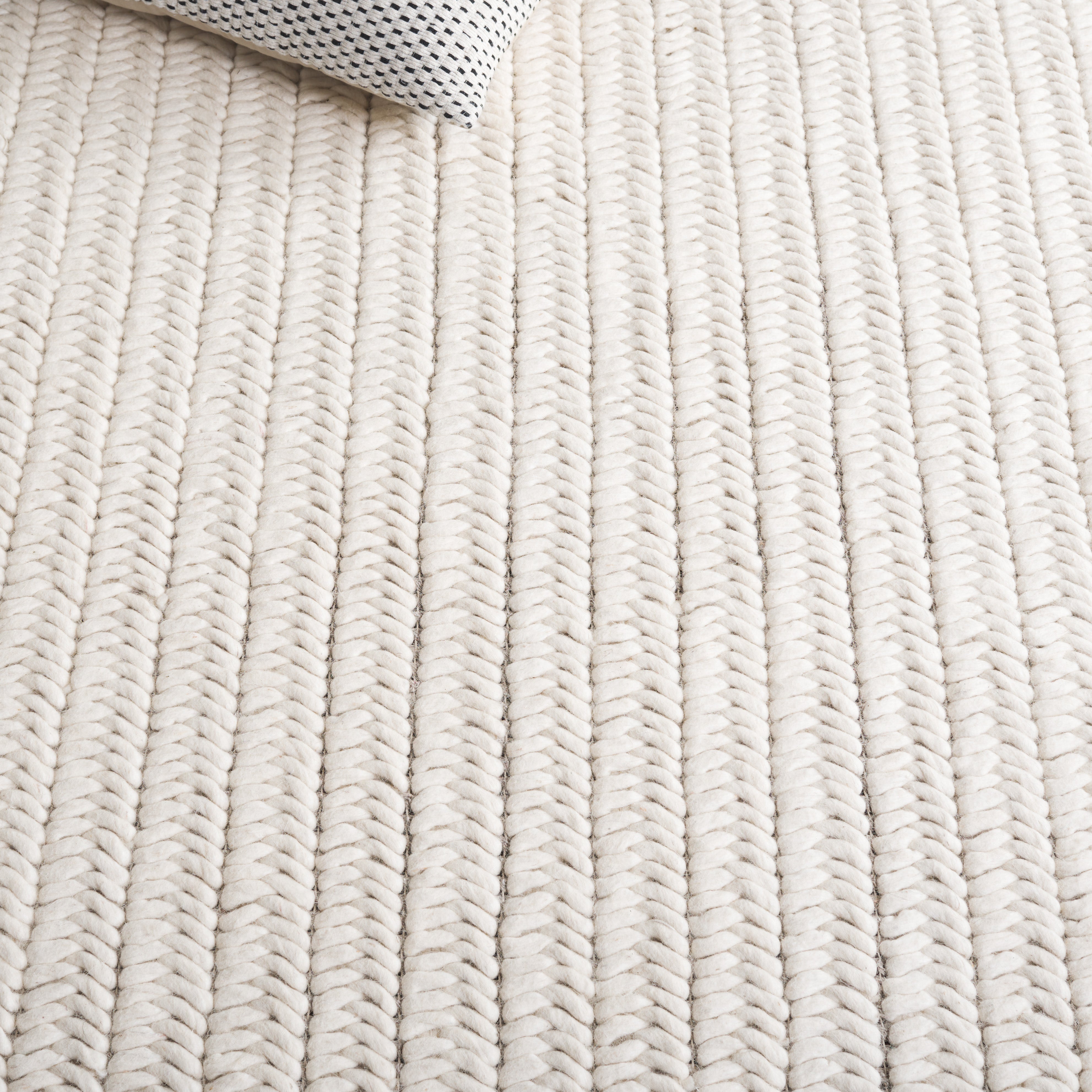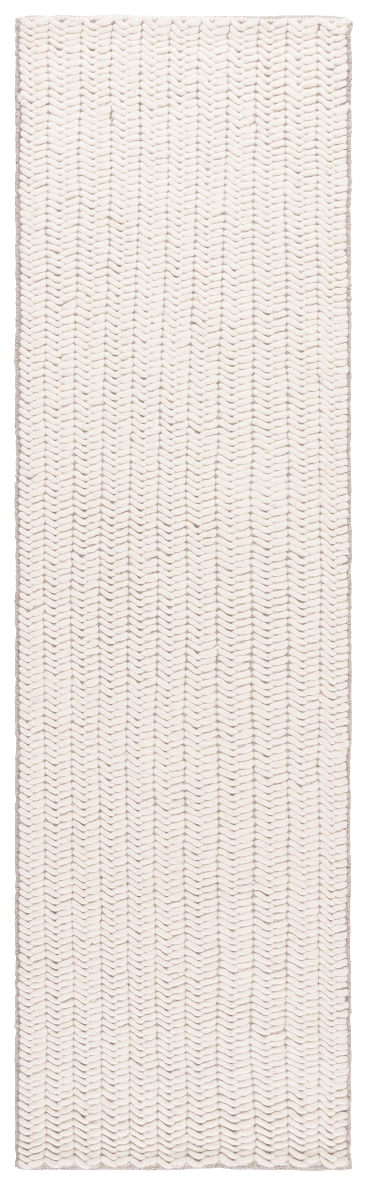 Elevate your living space with our hand-loomed wool runner rug, artisanally crafted in India. This modern 2' 3" x 8' runner rug with a height of 3/4" showcases a rich texture and sophisticated ivory color that enhances any hallway or long space with understated elegance. Made of high-quality wool pile, this rug not only exudes style but also offers plush comfort and durability. Its distinct pattern, visible in the image provided, features a serene and repetitive design that exudes a sense of calm and order. Perfect for a variety of decors, this rug is sure to add a touch of modern sophistication to your home.