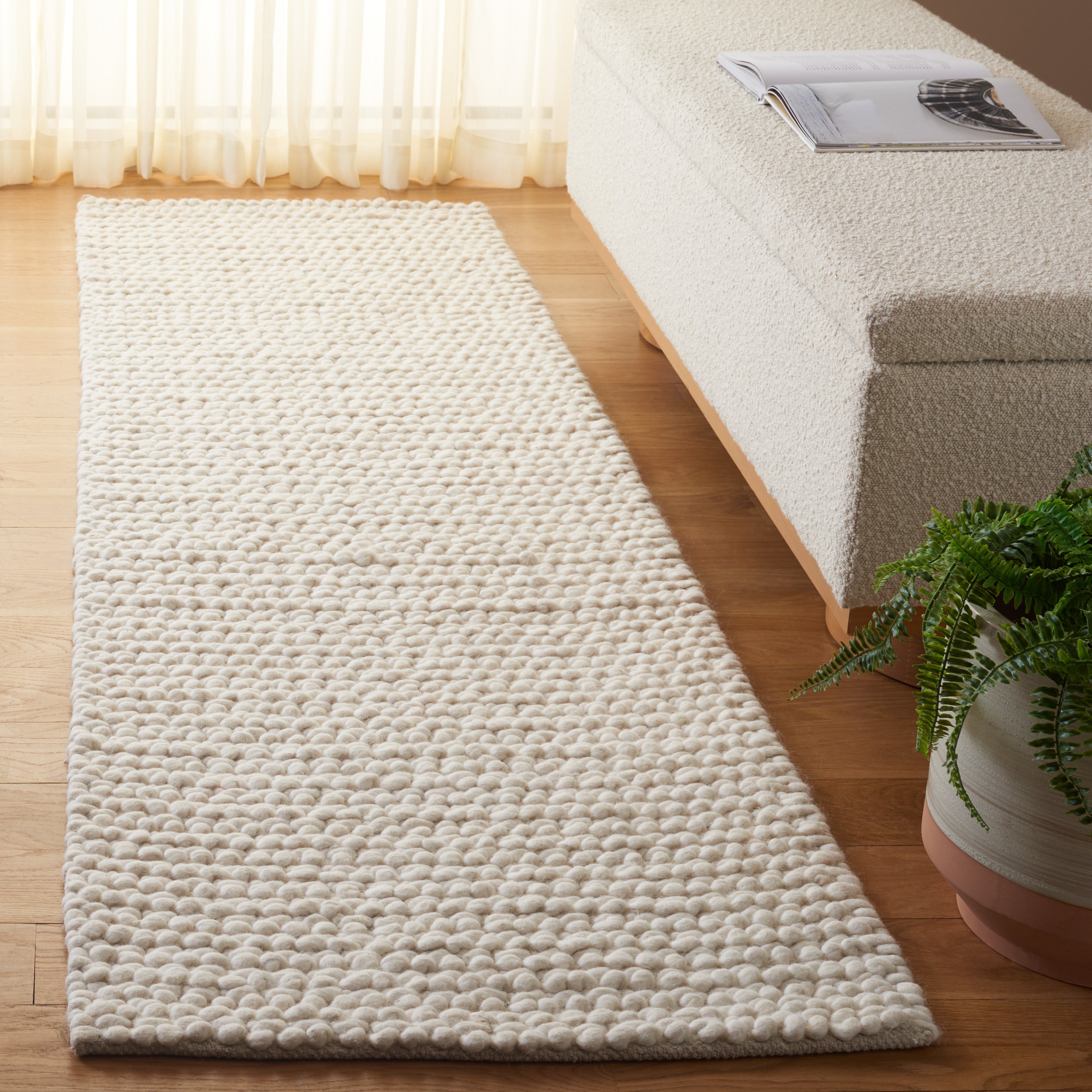 Transform your space with this exquisite ivory runner rug, measuring 2 feet 3 inches by 8 feet. Crafted with care, this hand loomed piece from India introduces a subtle elegance to any room. Made from wool pile, its solid and tonal style offers a timeless appeal suitable for modern or classic interiors. The runner's 3/4 inch height provides a gentle cushion underfoot, making it a perfect choice for hallways or narrow spaces. Embrace the simplicity and sophistication of this carefully woven masterpiece and enjoy the beauty and warmth it brings to your home.