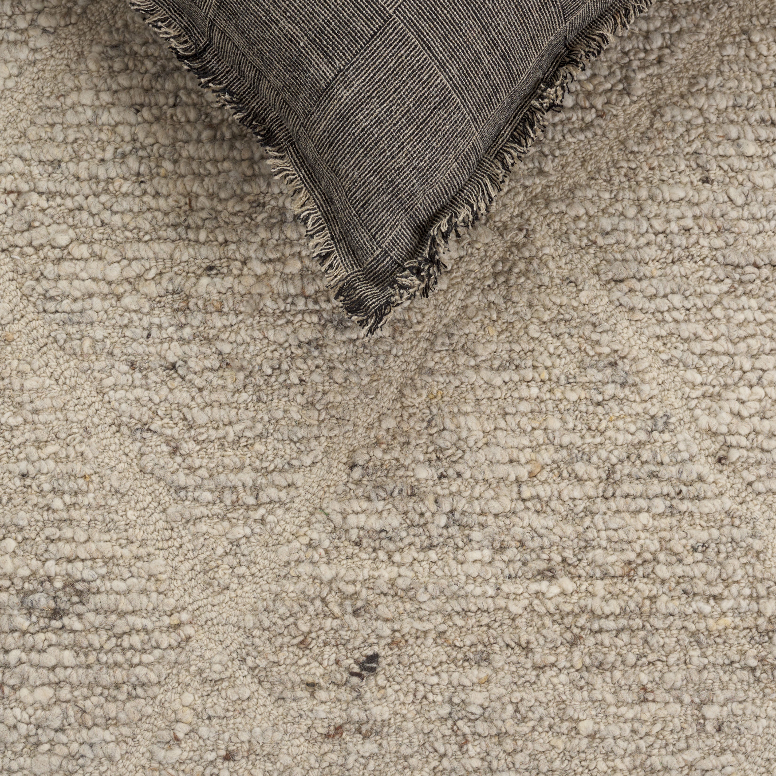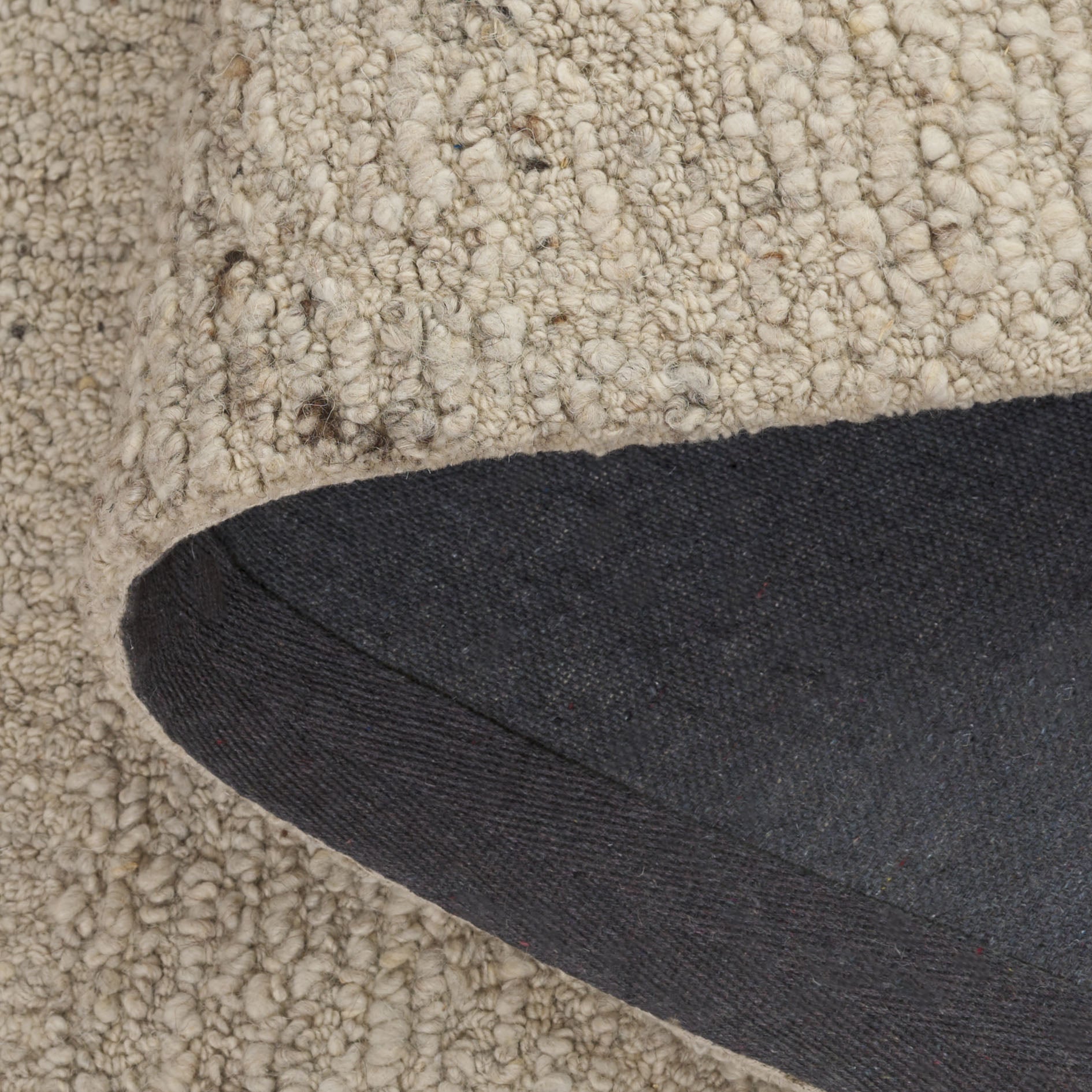 Introducing our elegant area rug, designed to add warmth and style to your home. Measuring 2 feet 3 inches by 8 feet, this beige runner is the perfect choice for hallways and narrow spaces. Crafted with a hand tufted technique, this wool pile rug combines artisanal skill with a contemporary style. Made in India, its understated elegance complements any decor. With a sleek height of half an inch, it offers a soft feel without compromising on modern appeal. Transform your space with this versatile and stylish rug, perfect for adding a touch of sophistication to any room.