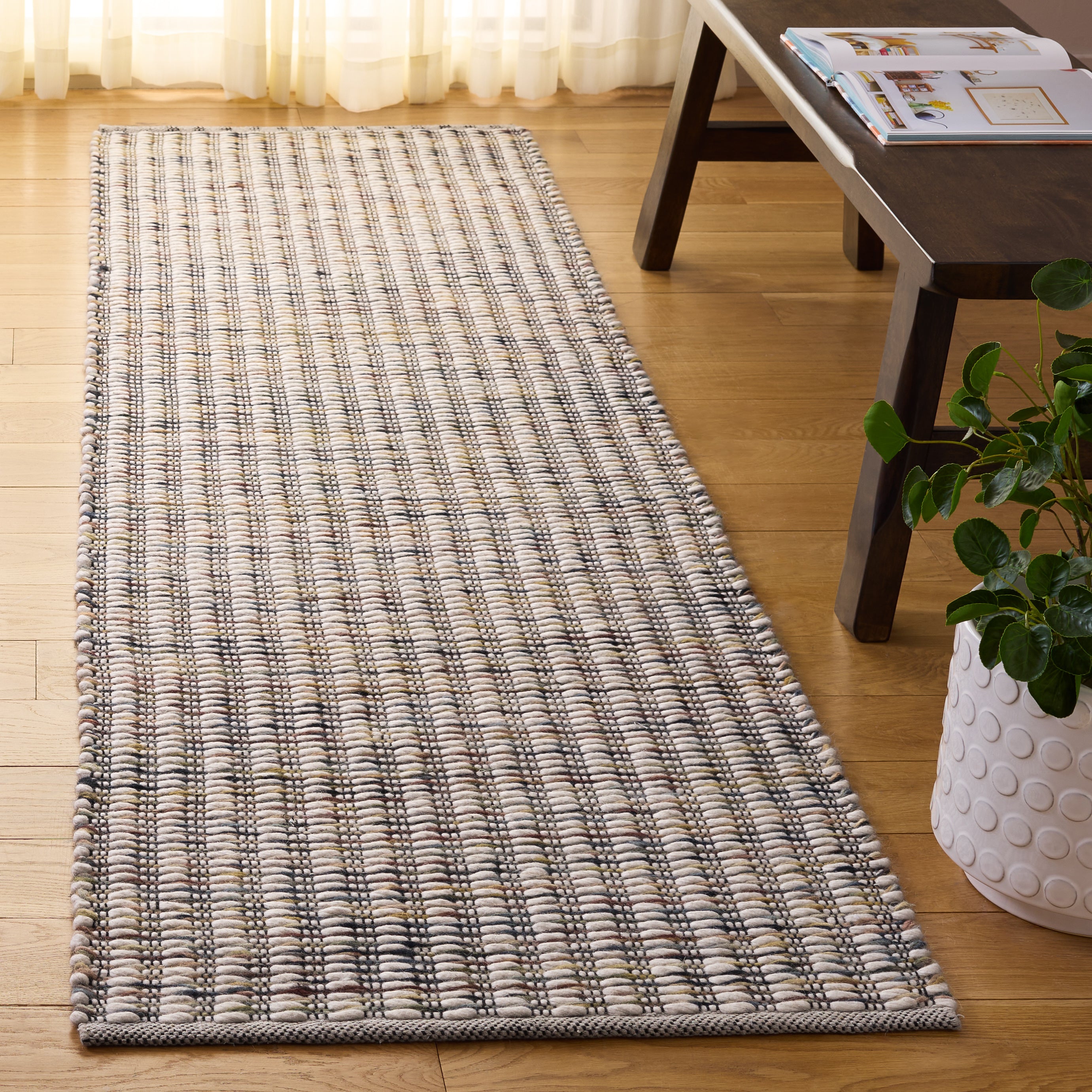 Introducing our exquisite handwoven wool runner rug, crafted by skilled artisans in India. With dimensions of 2 feet 3 inches by 8 feet, this runner rug is an ideal choice for hallways and long, narrow spaces in your home. The runner has a comfortable pile height of 3/8 inch, ensuring a plush texture underfoot.