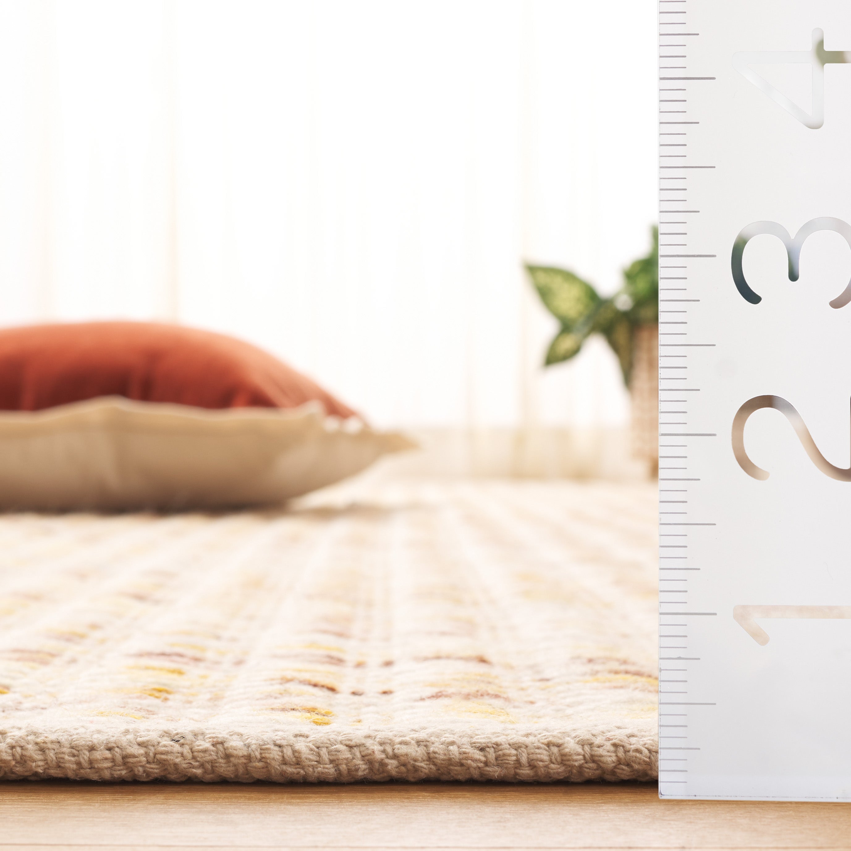 The rug features a harmonious blend of gold and ivory hues, creating a warm and inviting ambiance in any room. The meticulous construction technique lends this rug exceptional durability and a texture that feels luxurious to the touch.