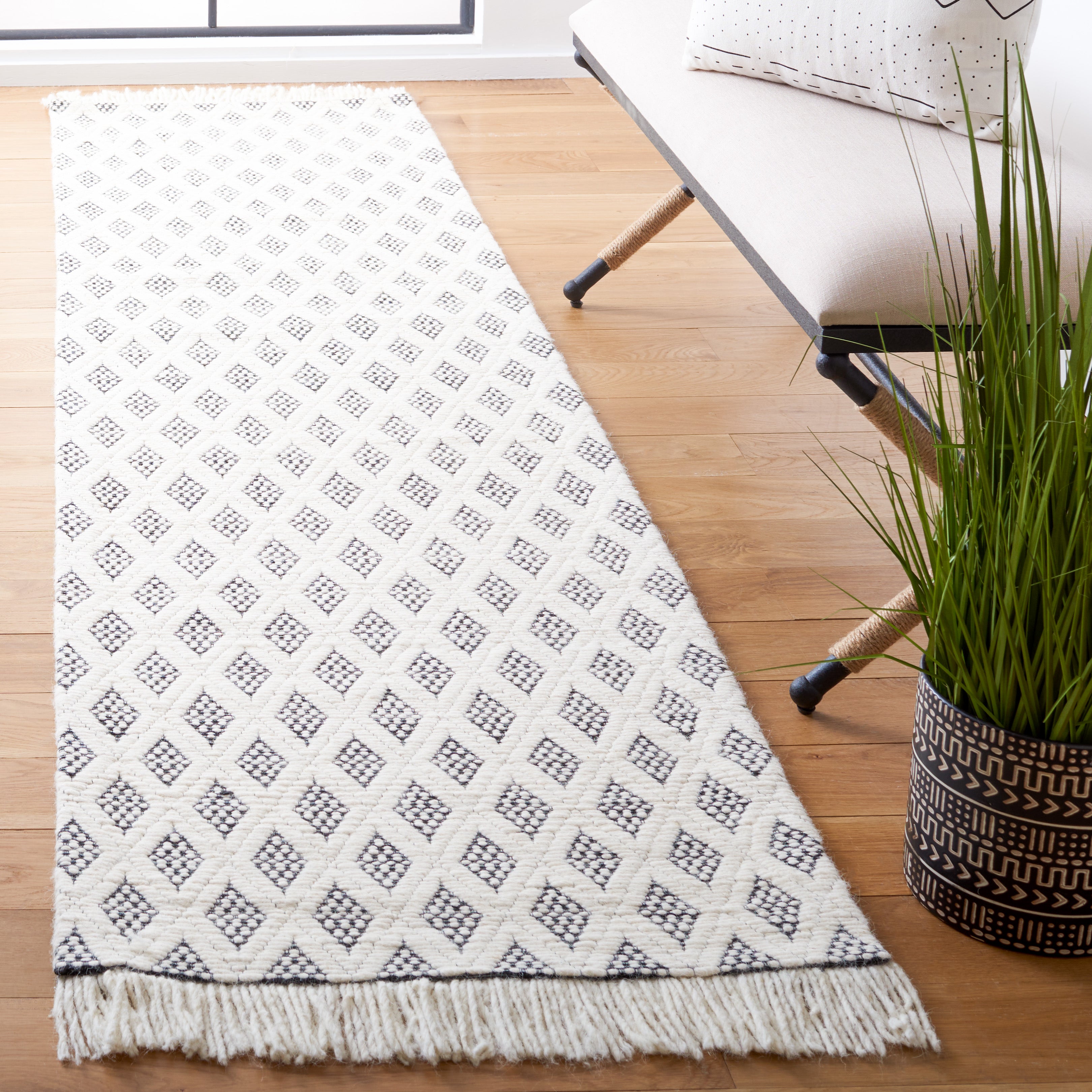 Boasting a sophisticated diamond pattern, this runner effortlessly creates a focal point in your room without overpowering your existing decor. The latex backing provides additional stability, keeping the rug firmly in place and ensuring it remains a timeless addition to your home for years to come.
