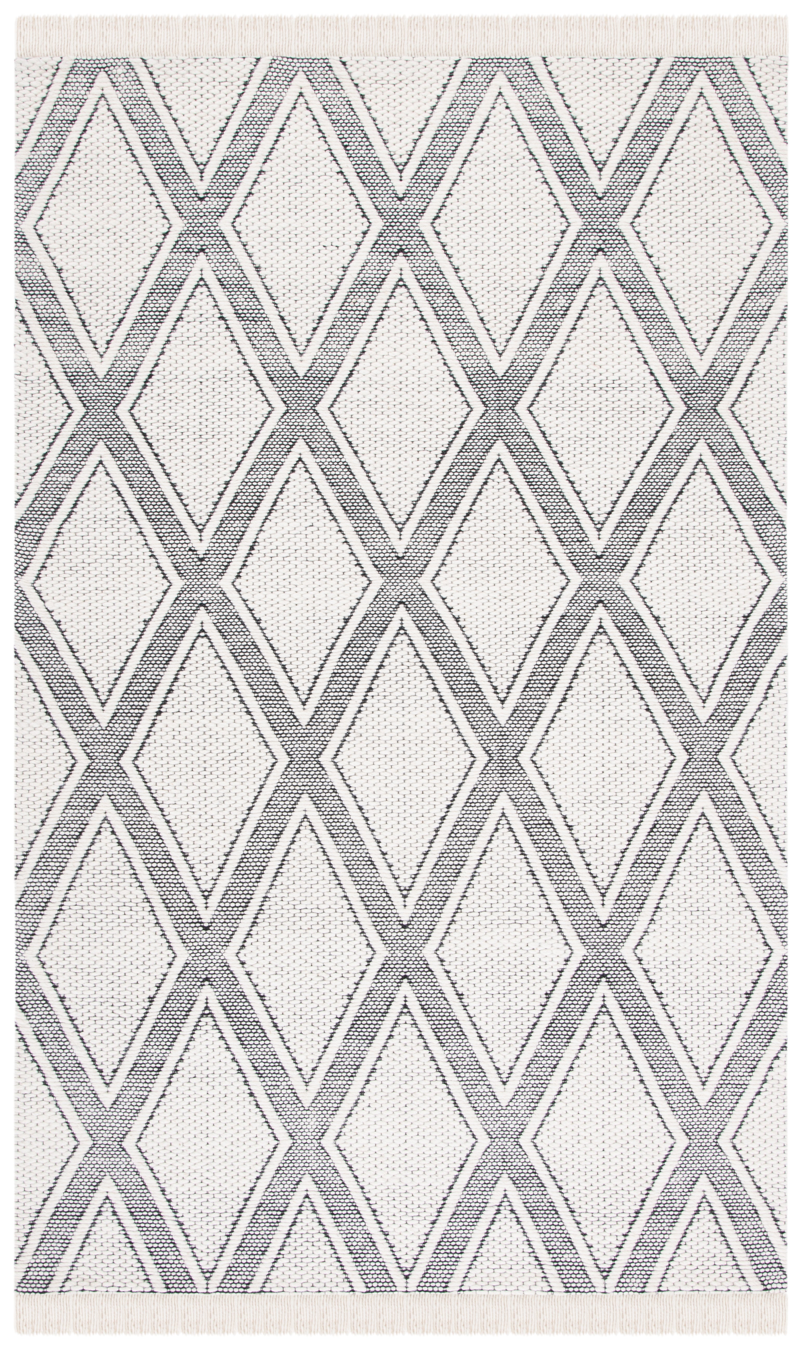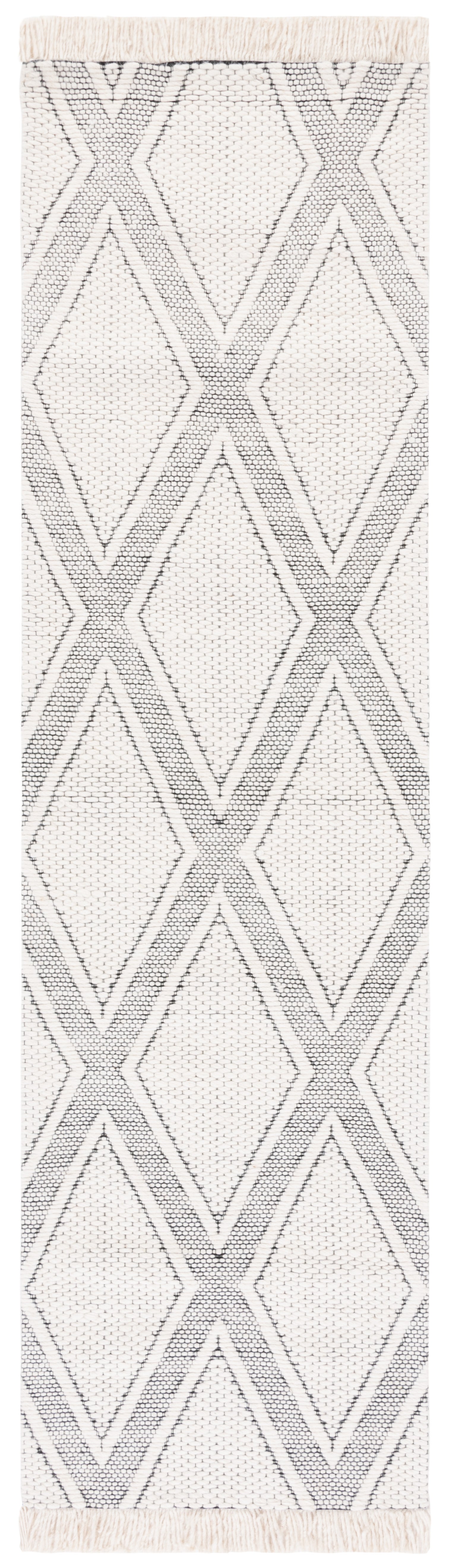 The stunning geometric diamond pattern radiates sophistication in a classic Ivory and Black color palette, making this runner an effortlessly chic addition to any hallway or narrow space. Each diamond is encased in a textured lattice framework, providing a pleasing tactile experience underfoot.