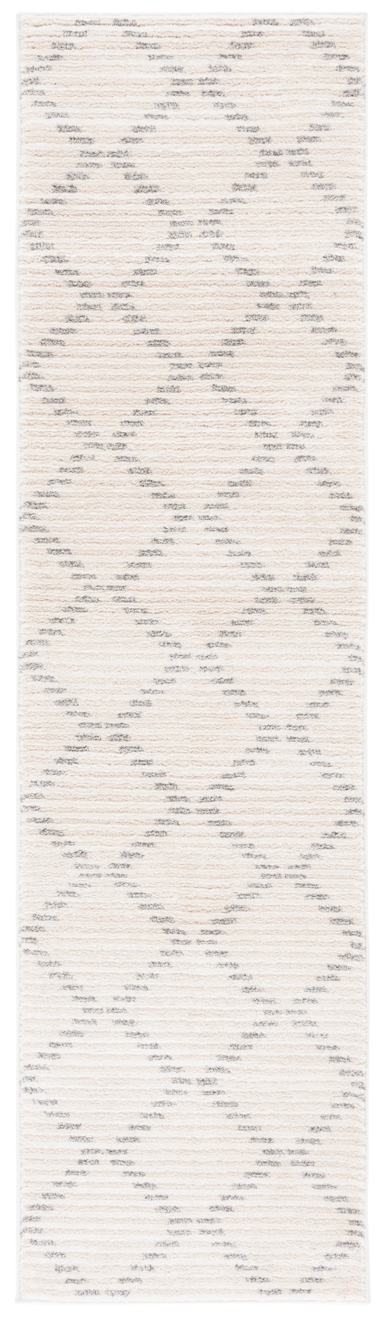 The subtle rug pattern, infused with organic, horizontal streaks, gives a sense of texture and movement while maintaining a clean and minimalistic aesthetic. Easy to care for and designed to withstand everyday use, this runner rug is not only a stylish choice but a practical one as well.