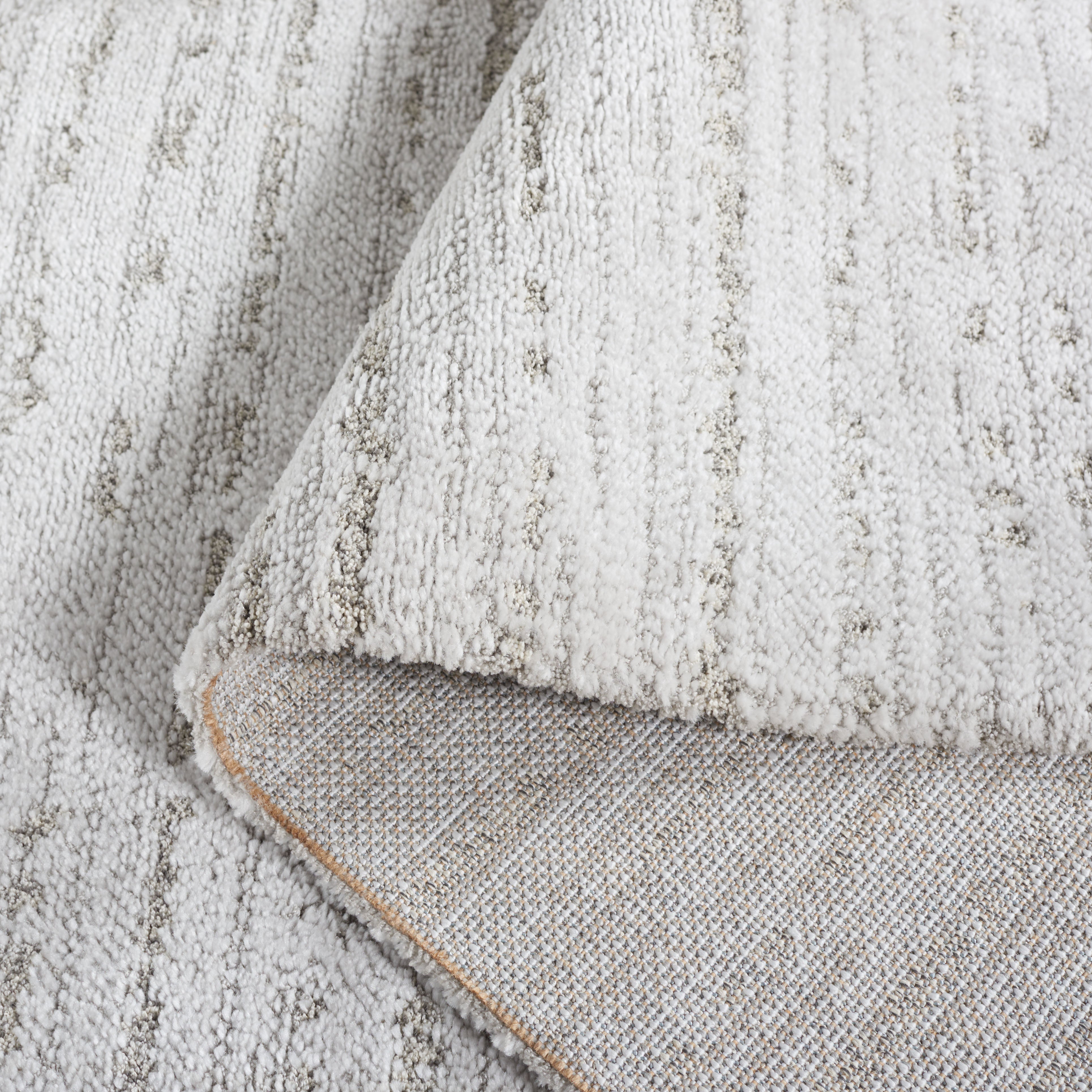 The rug's pattern is straightforward and unfussy, featuring a subtle striation that lends depth and character without overwhelming the space. This gentle gradation of greys harmonizes effortlessly with a range of color palettes, cementing the rug's status as a timeless piece for your home or workplace.