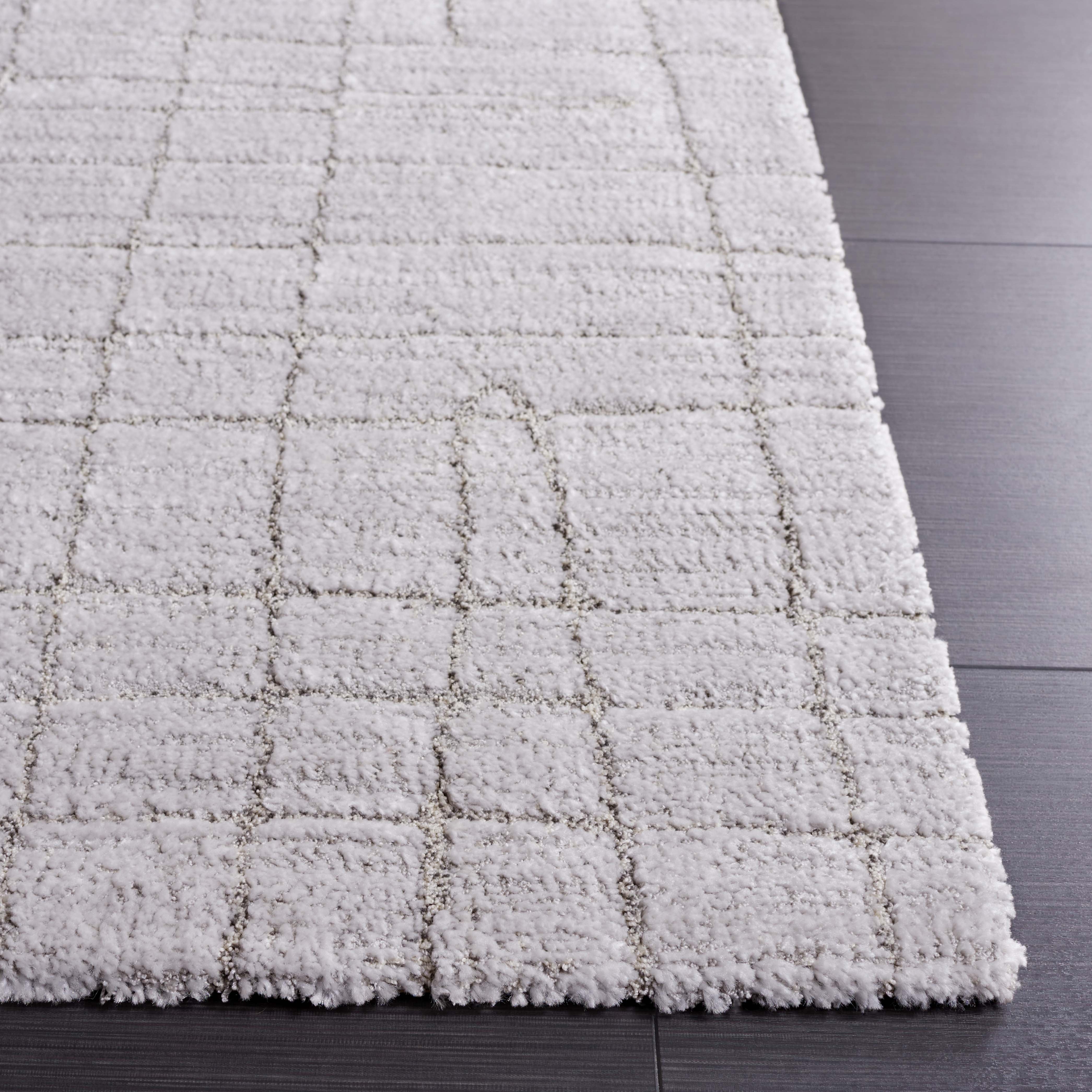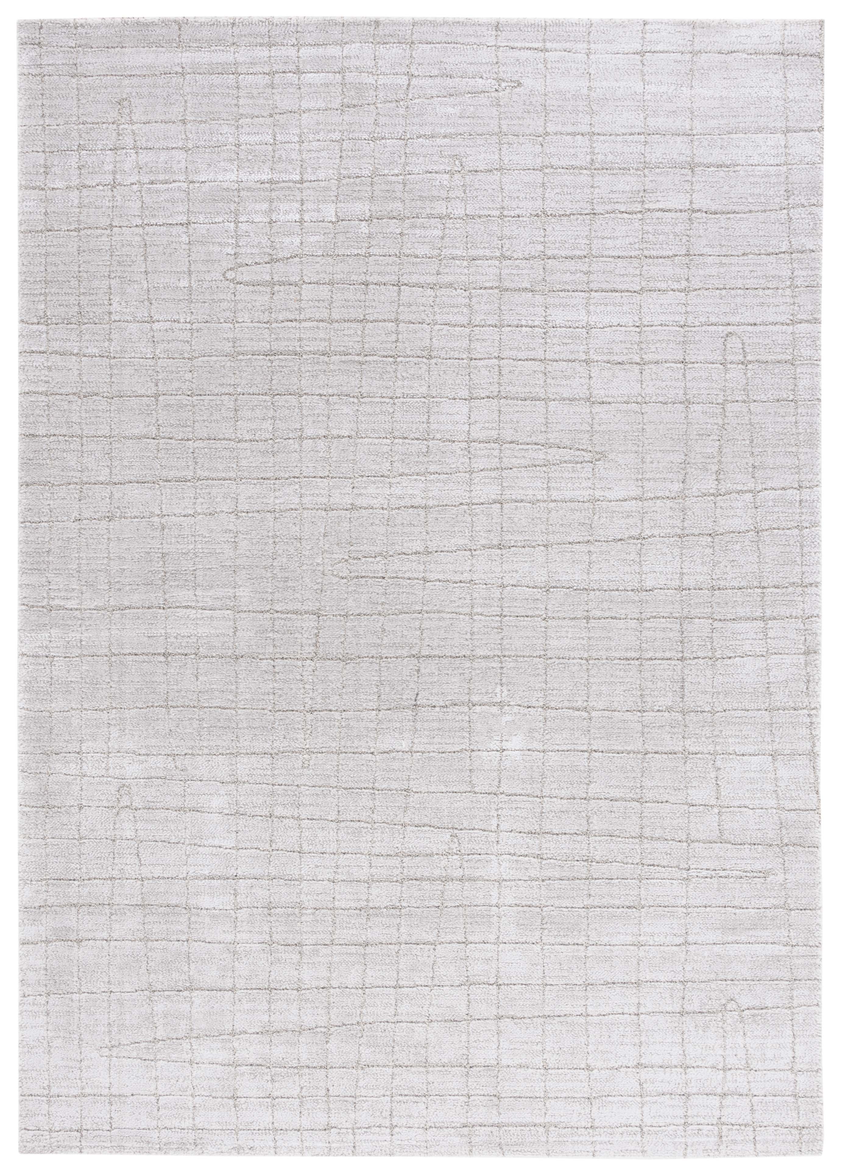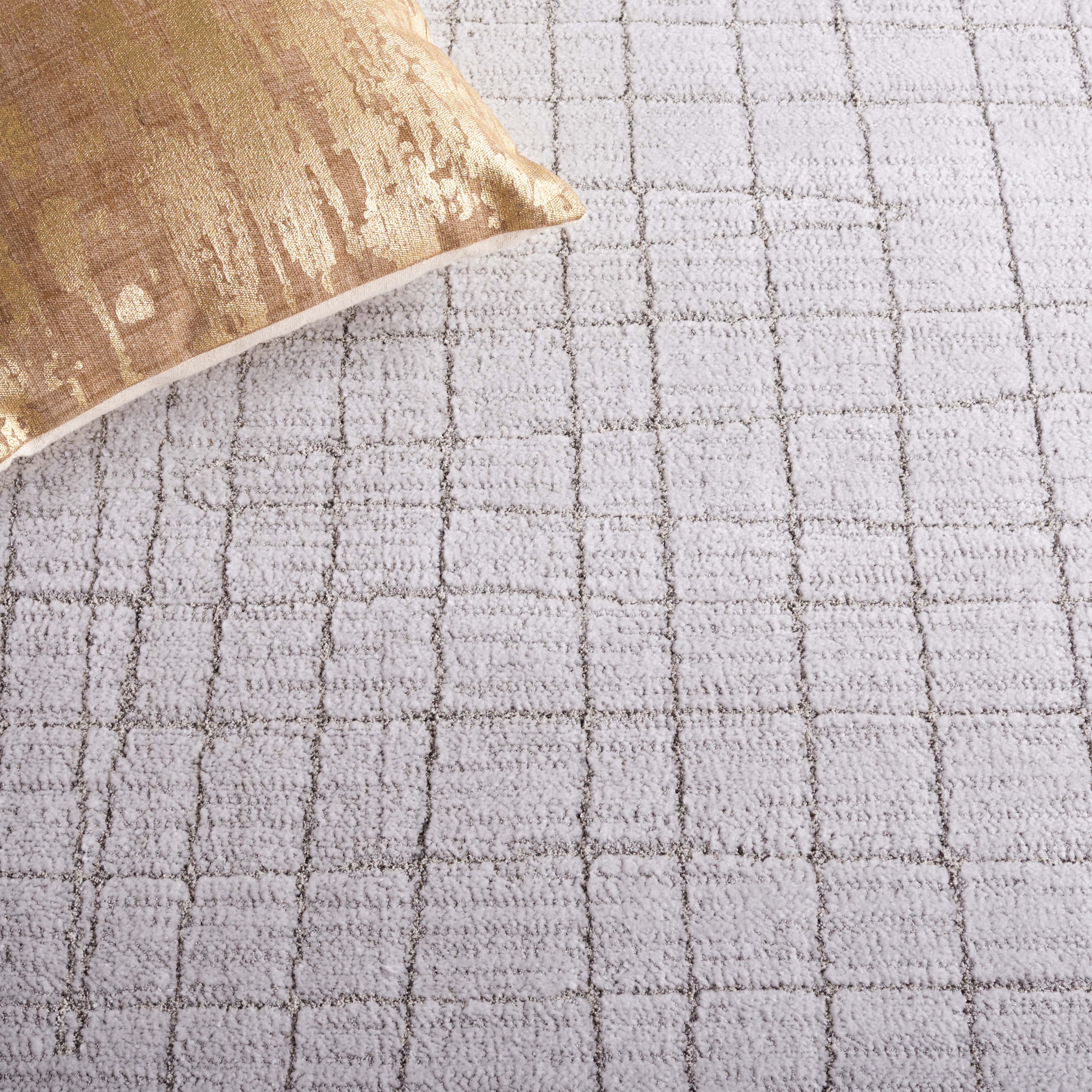 This rug features a subtle and sophisticated pattern, reminiscent of block prints, that provides texture and visual interest without overwhelming the space. The nuanced shades of light grey and grey, along with its crafted texture, enhance the contemporary appeal, making it suitable for various decor styles, from modern to traditional.