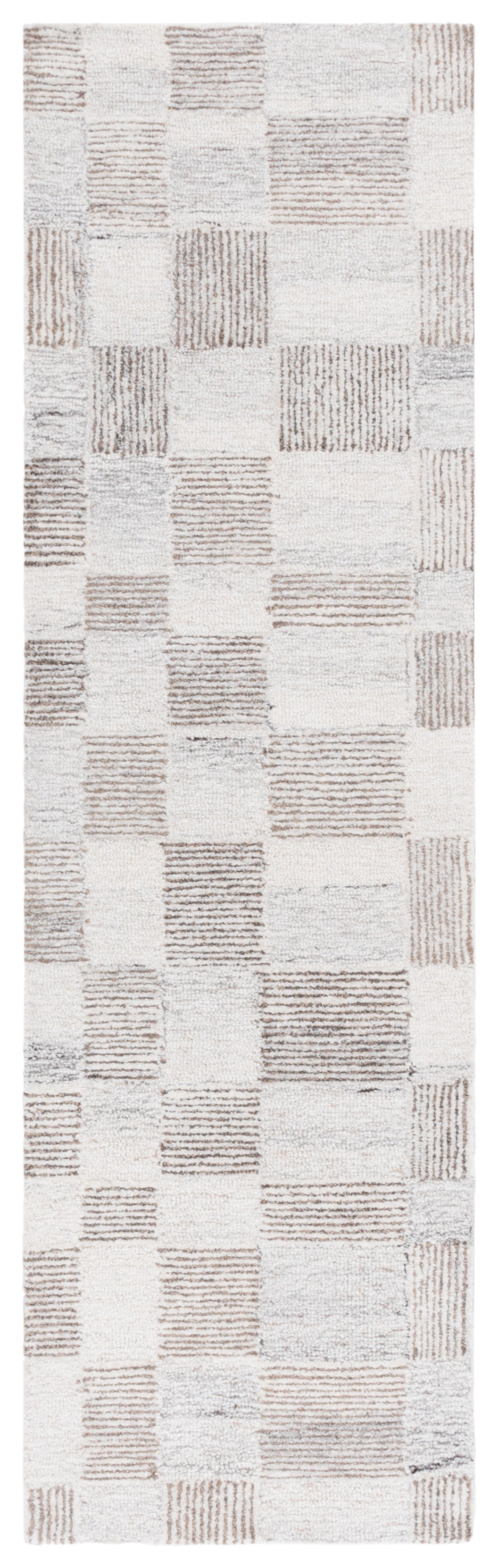 Elevate your home decor with this exquisite contemporary style rug, meticulously hand-tufted in India from the finest wool pile. This rug showcases a sophisticated beige and brown color palette, which perfectly complements its modern design aesthetic.
