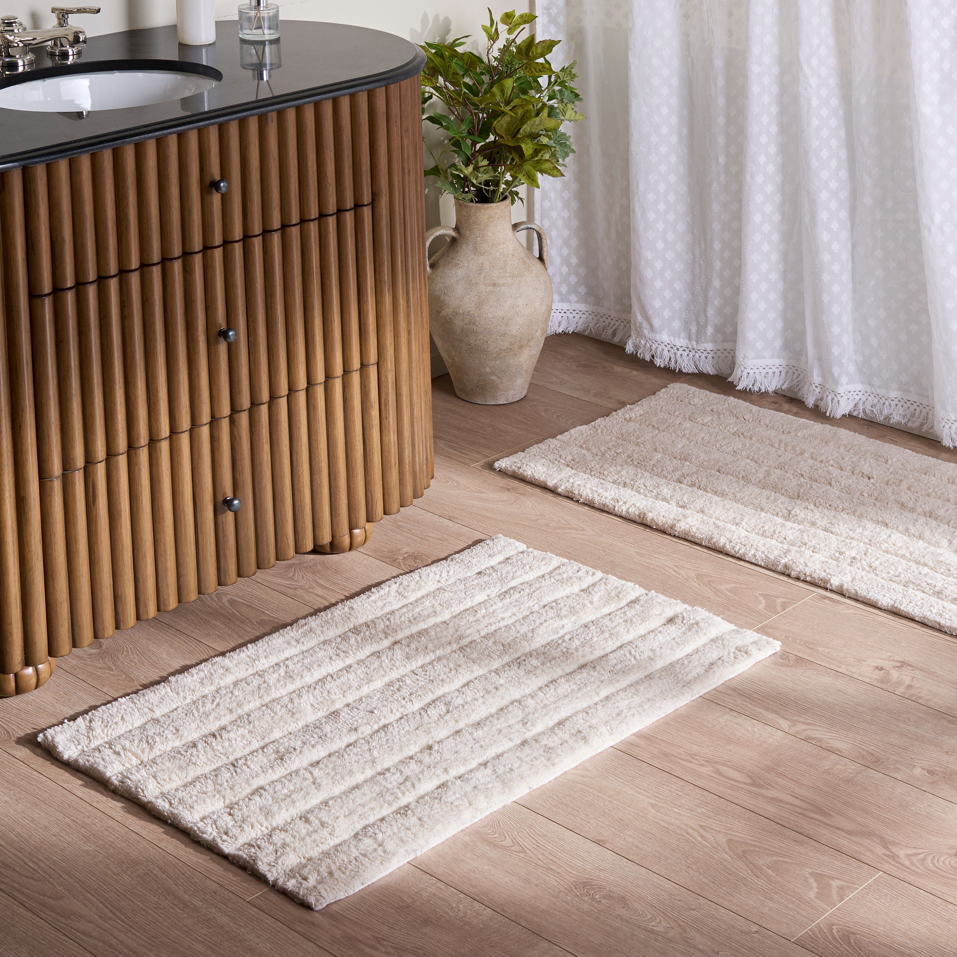 Transform your bathroom into a sanctuary of comfort with the Harlow Channel Tufted Bathmat Set. Each bathmat in this set of two measures 21 x 34 inches, making it an ideal fit for various spaces. Crafted with a front of 100 percent cotton, these bathmats deliver a soft and cozy feel with every step. The latex backing ensures a non-slip grip, providing safety and peace of mind. Designed with a hand-tufted weave, these bathmats bring an elegant touch to your decor. The medium absorbency level ensures practicality, while their quick-dry feature makes maintenance simpler. Plus, these bathmats are machine washable, so keeping them fresh and clean is hassle-free. With a rug height of 0.60 inch, they offer just the right amount of cushioning underfoot. Choose the Harlow Channel Tufted Bathmat Set to complement your bathroom style with comfort and ease.